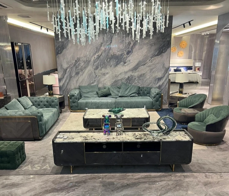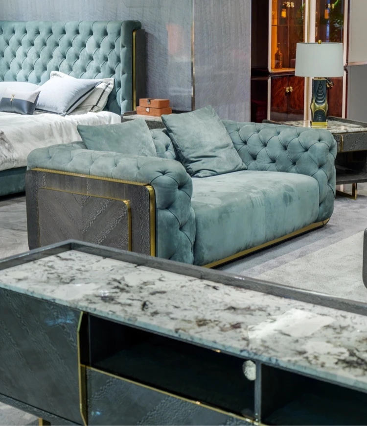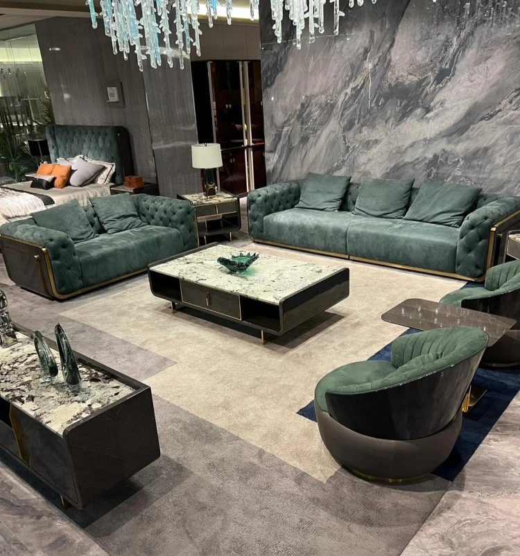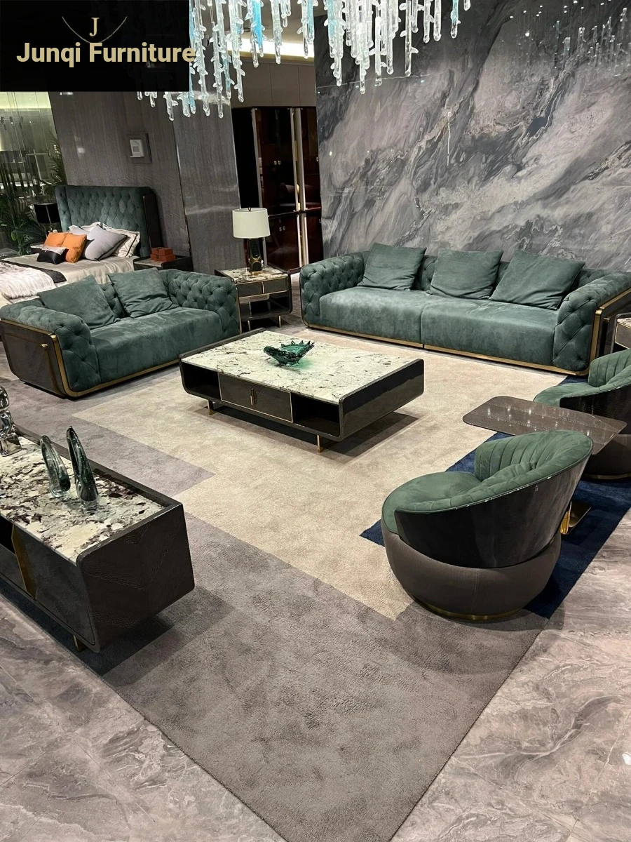 Italian Luxury Modern Sofa Set for Spacious Bentley Villas - High-End Matte Genuine Leather Living Room Furniture Combination