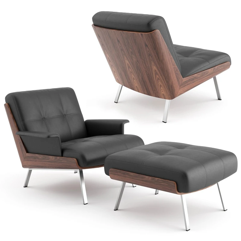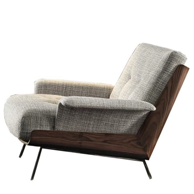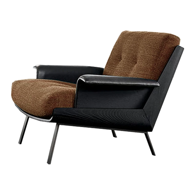 Italian Style Modern Luxury Minimalist Single Armchair - Genuine Leather Business Reception Chair for Living Room and Office Meetings