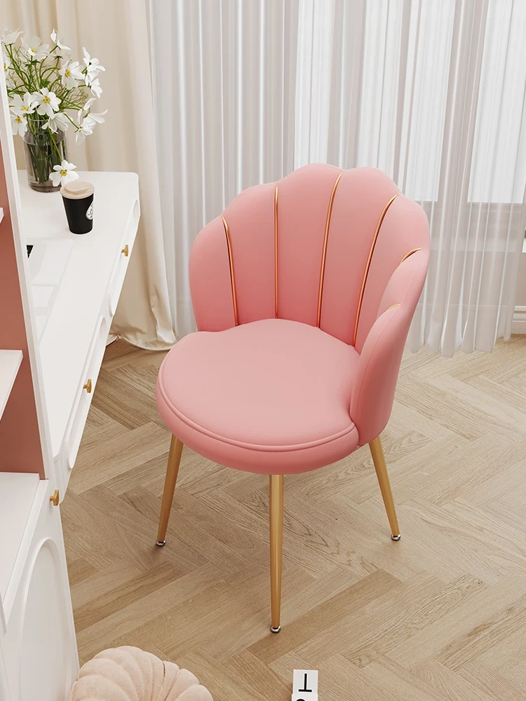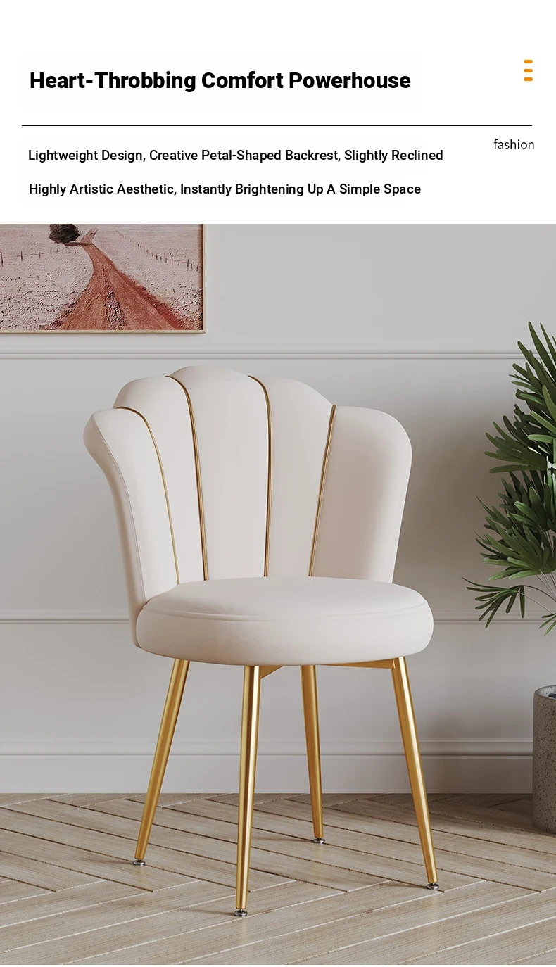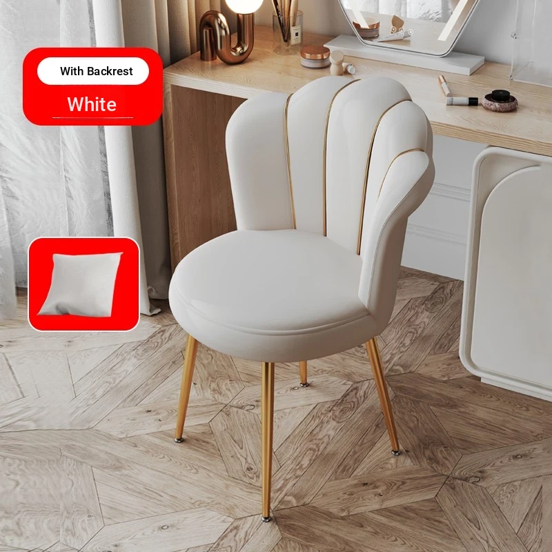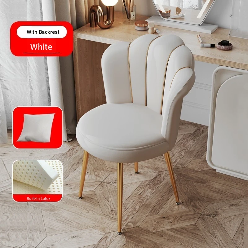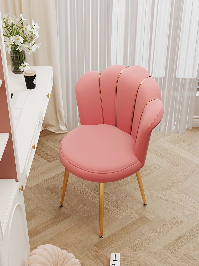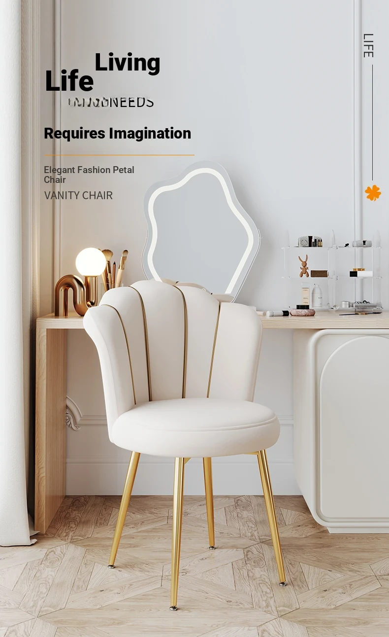 Luxurious Makeup Chair for Master Bedroom – Elegant Vanity Stool with Backrest, Trendy Petal Design for Nail Art – Perfect for Girls' Bedrooms