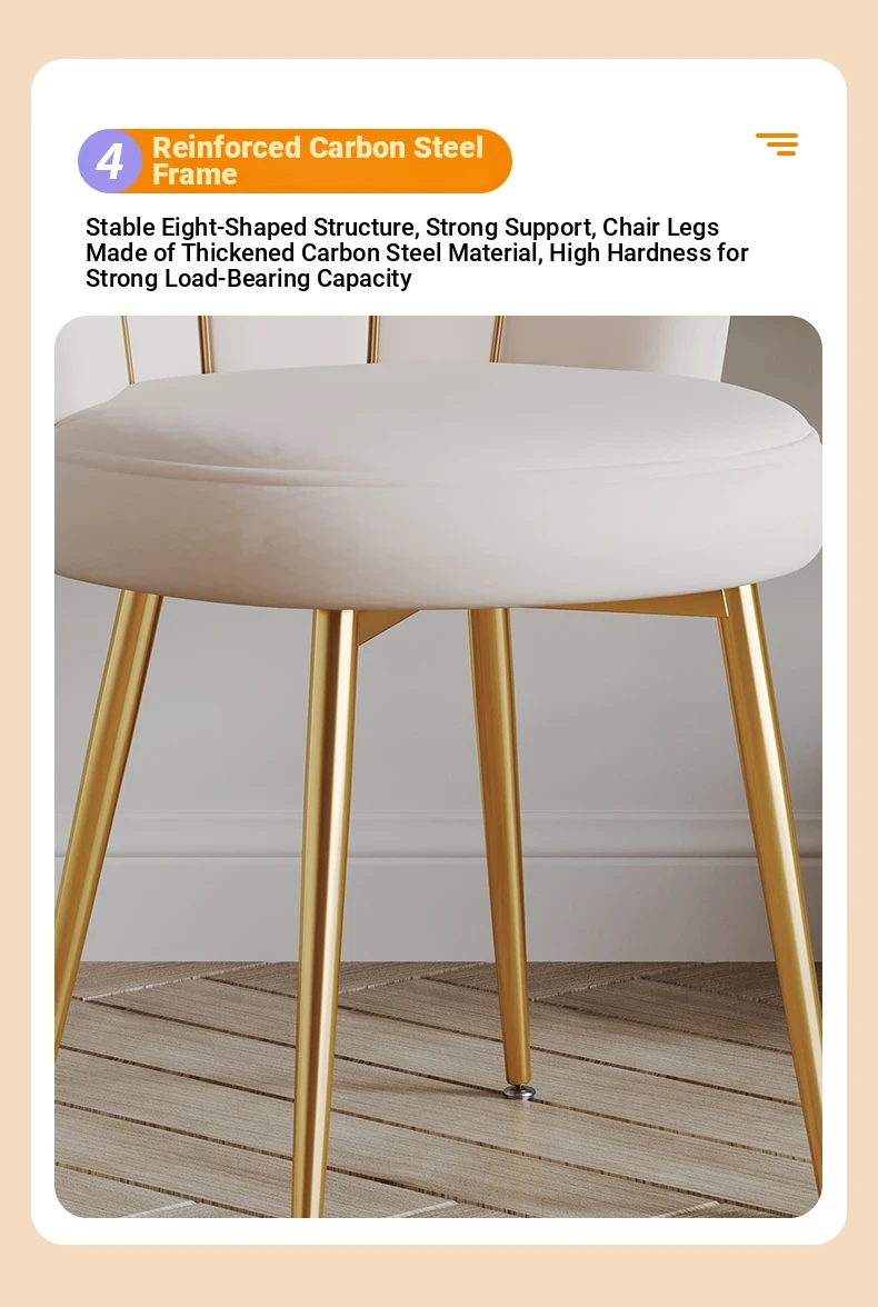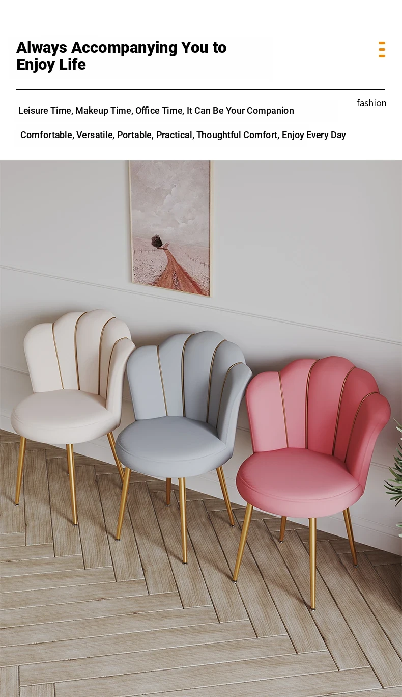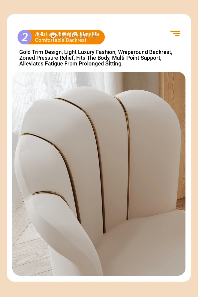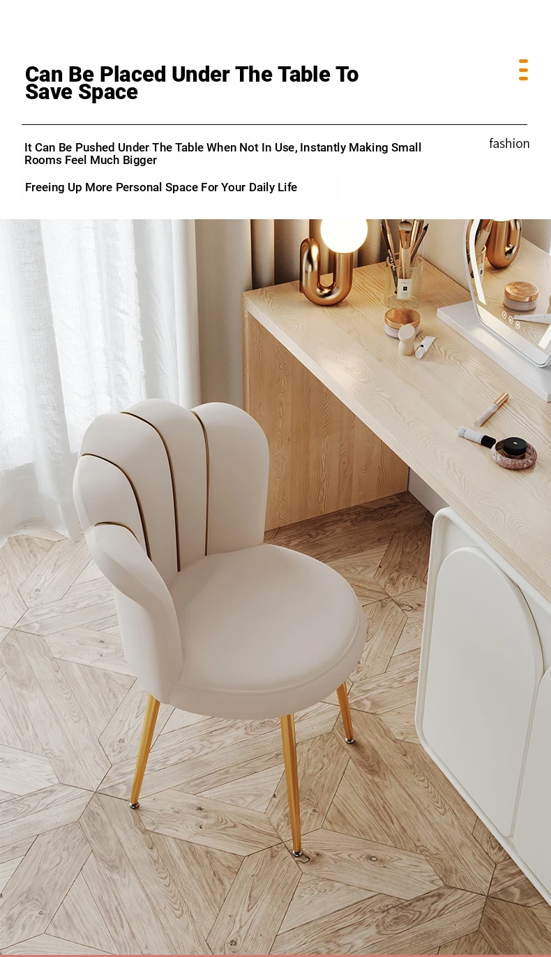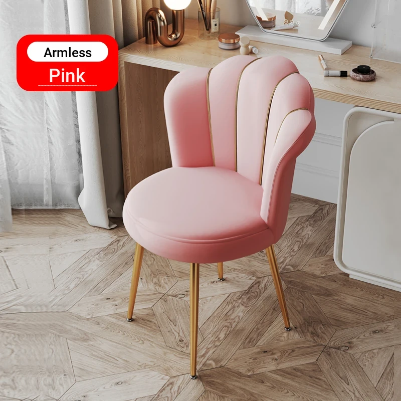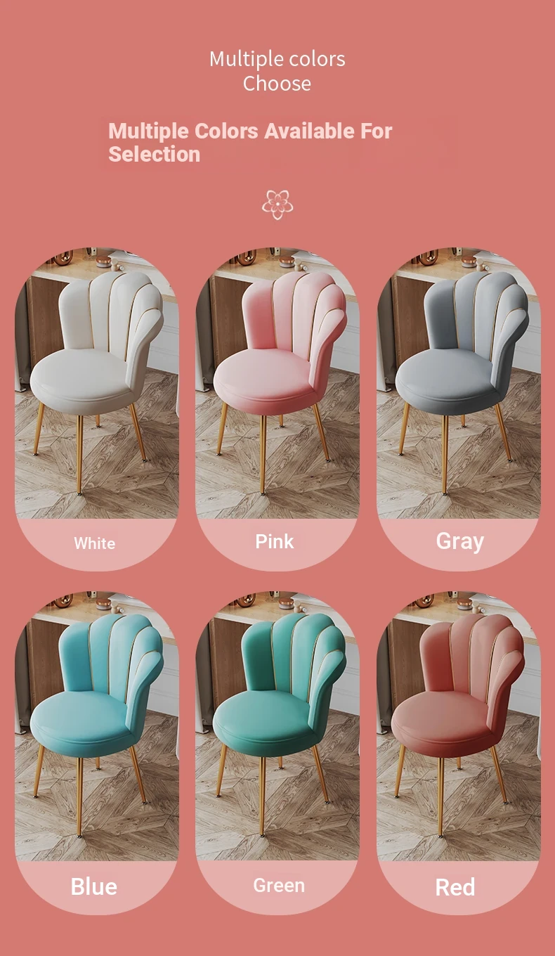 Luxurious Makeup Chair for Master Bedroom – Elegant Vanity Stool with Backrest, Trendy Petal Design for Nail Art – Perfect for Girls' Bedrooms