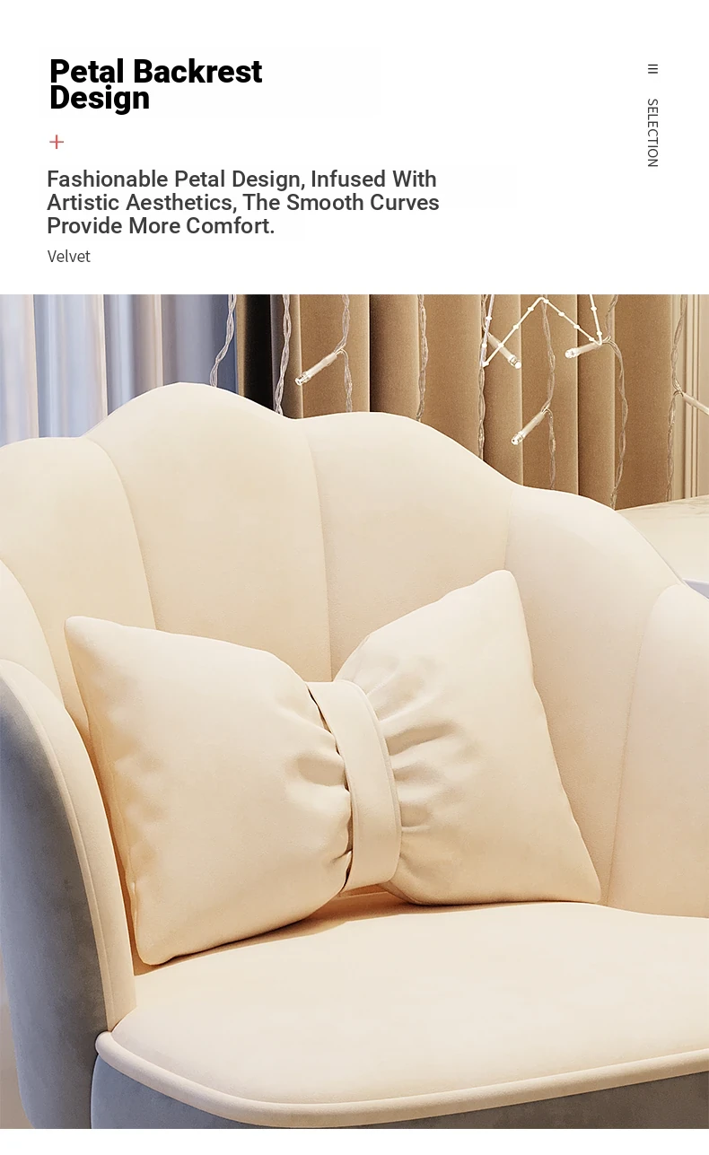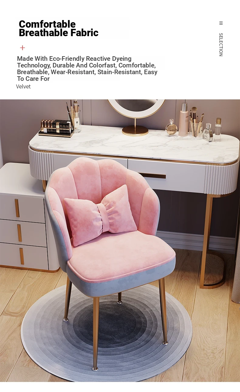 Luxury Petal Chair for Girls' Bedroom - Stylish Makeup Stool with Backrest, Perfect for Vanity Tables and Nail Art. Elegant and Minimalist Design, Ideal for Trendy Spaces.
