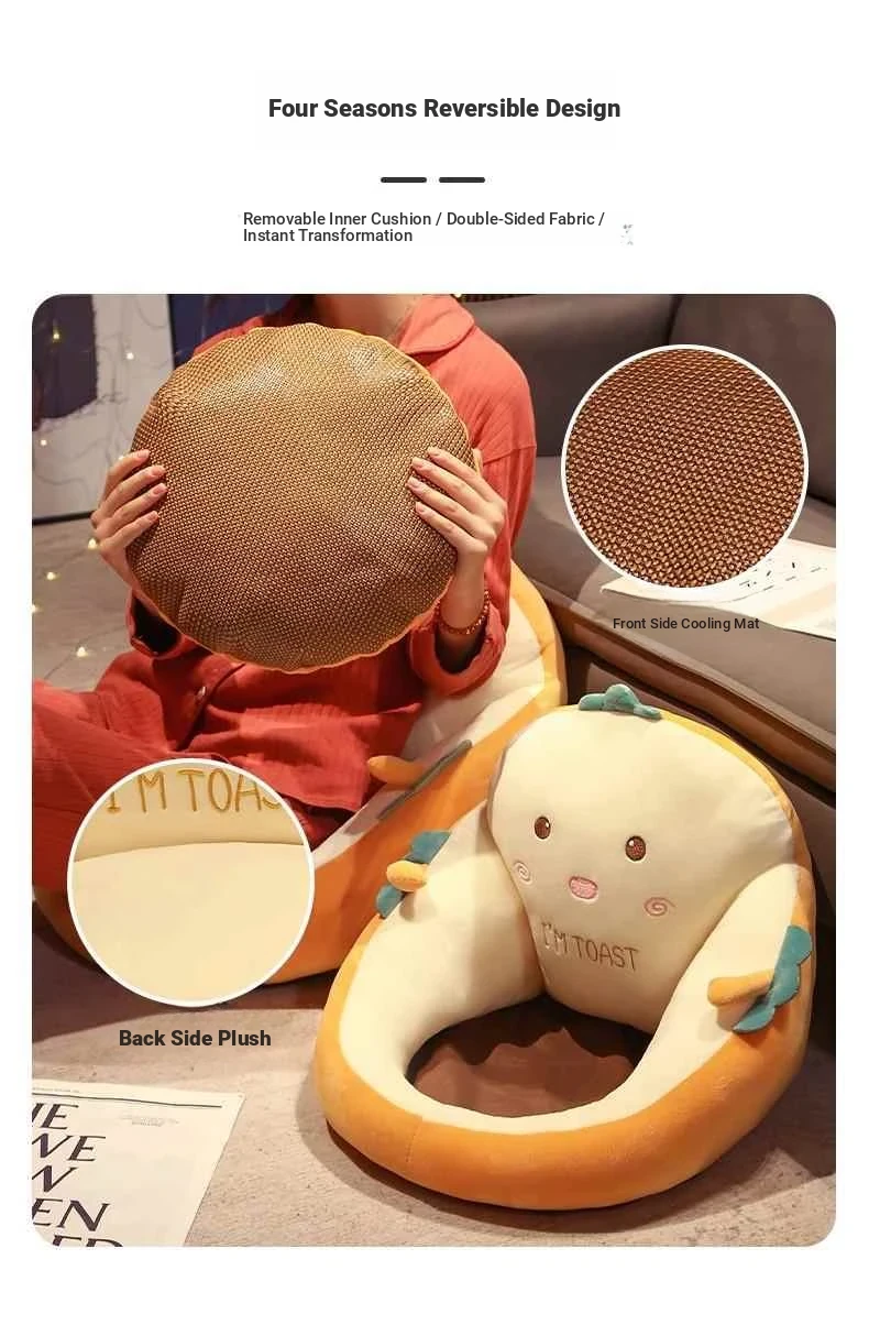 Large angry toast [one rattan mat/one Stuffed] 55x 19.69in + bottom Non Slip detachable design