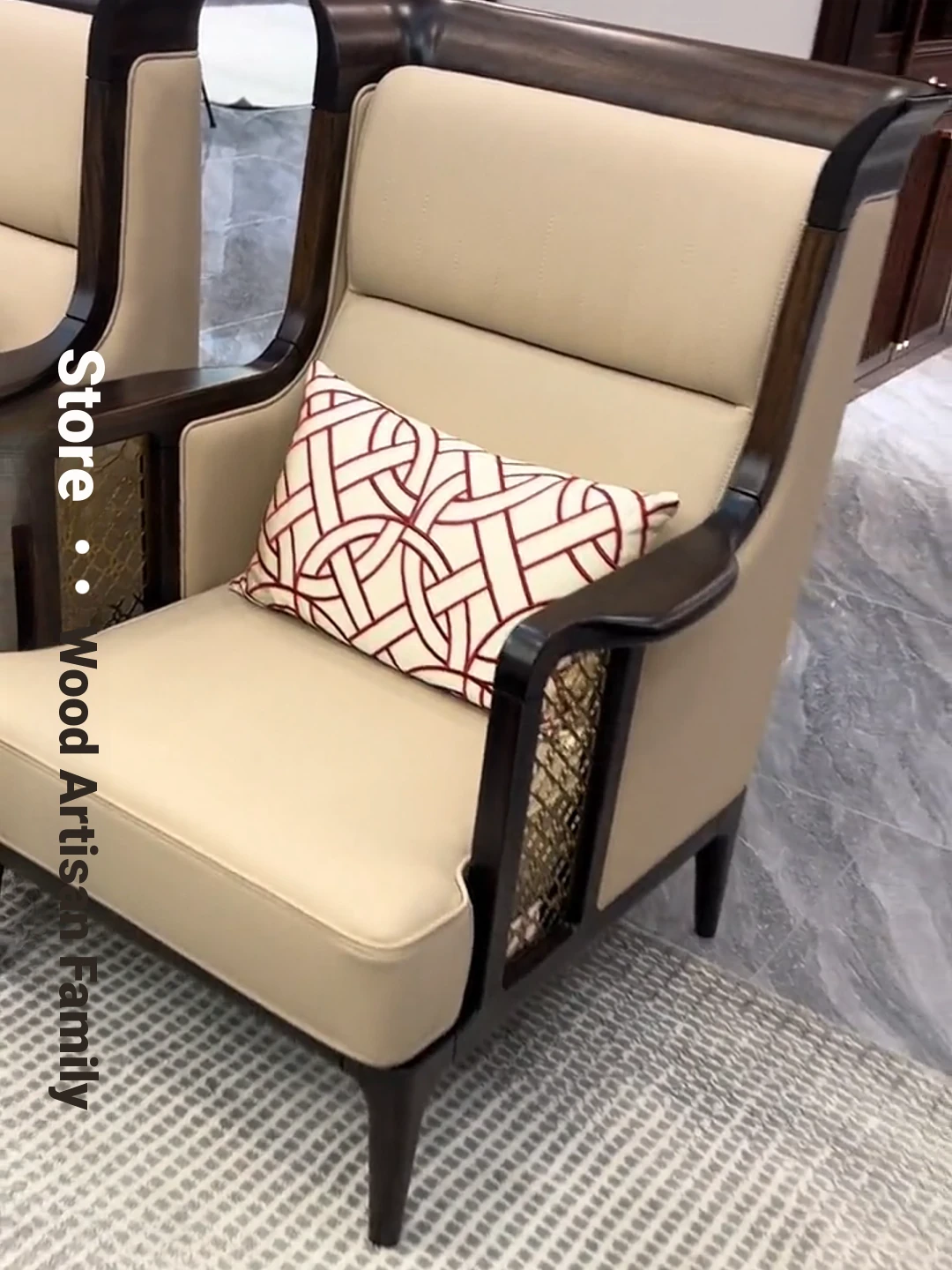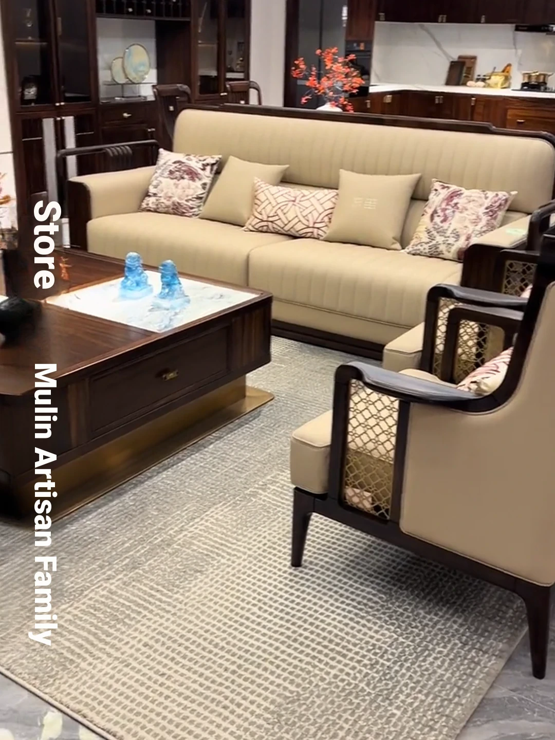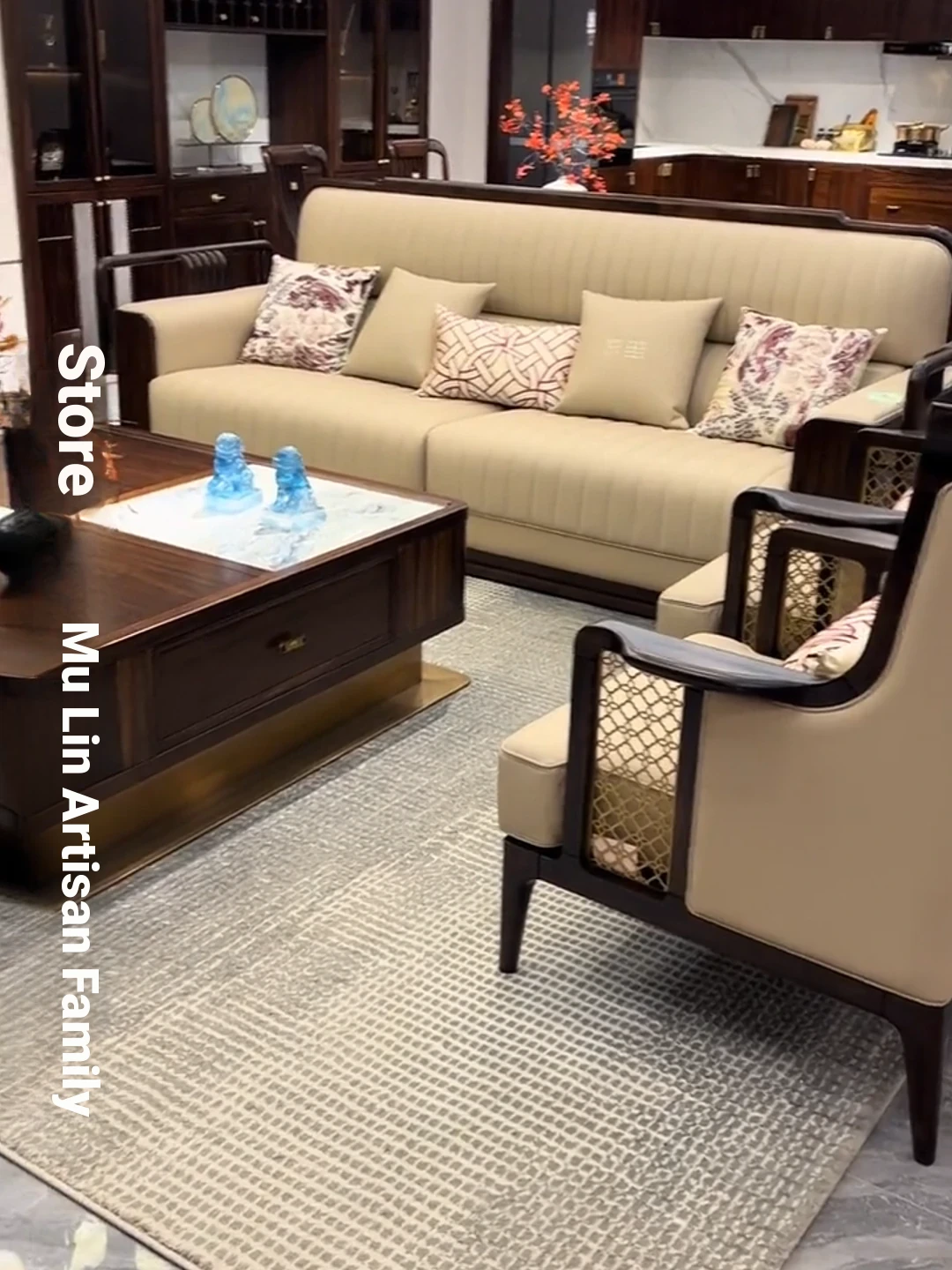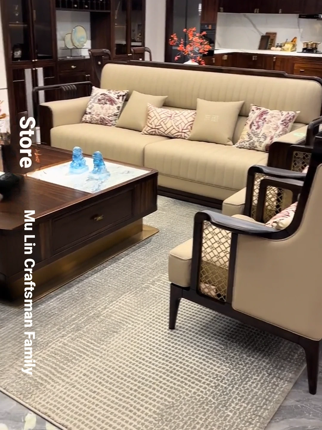 Modern Chinese Solid Wood Sofa Set - Luxurious Black Walnut Leather Sofa for Large and Medium-sized Villas and Living Rooms