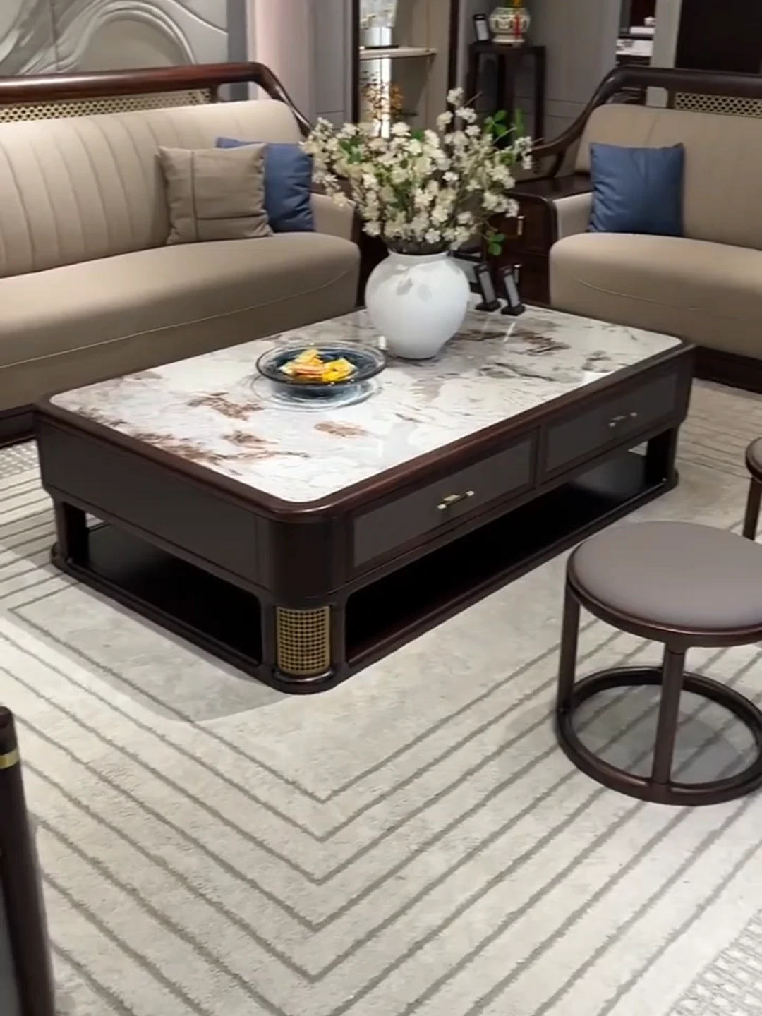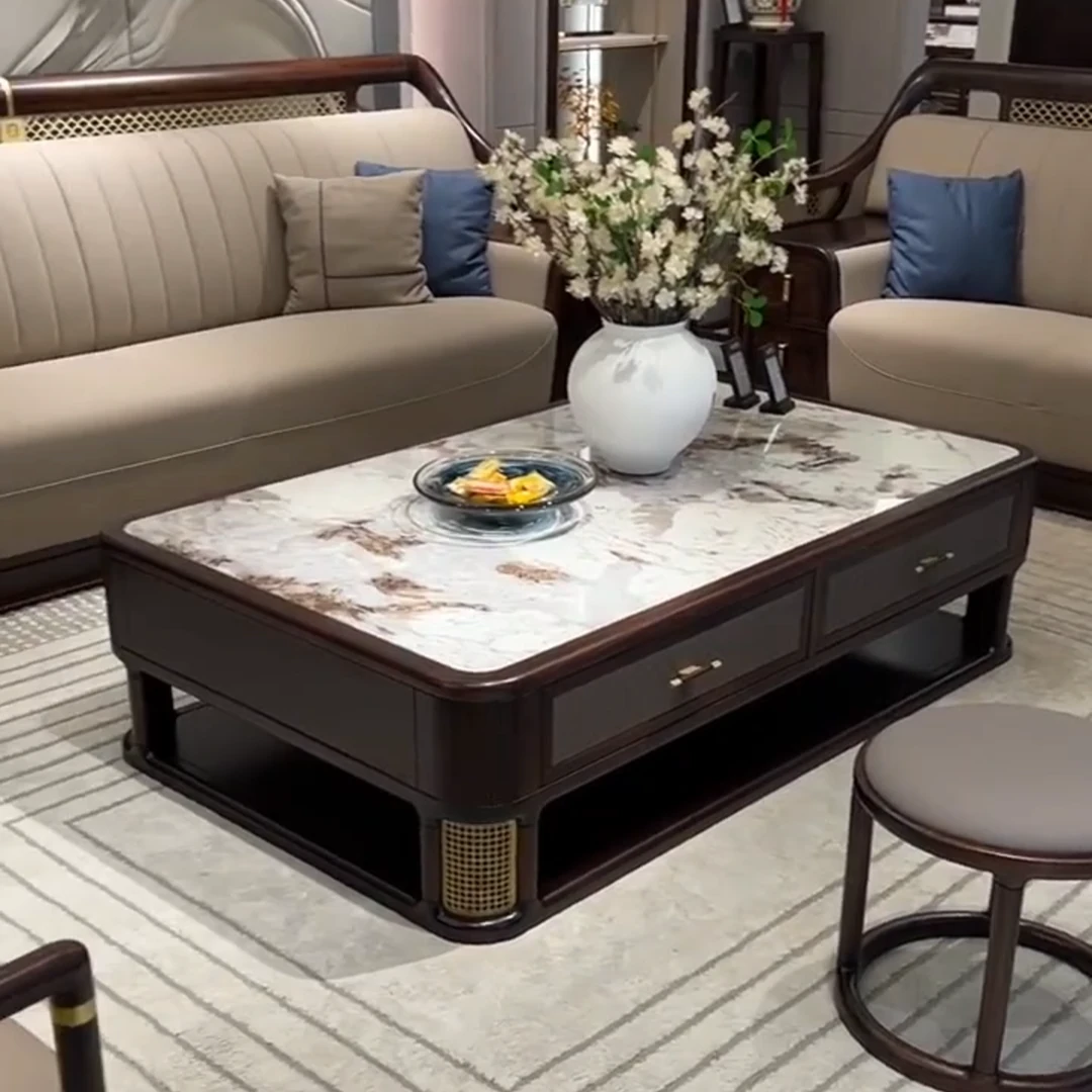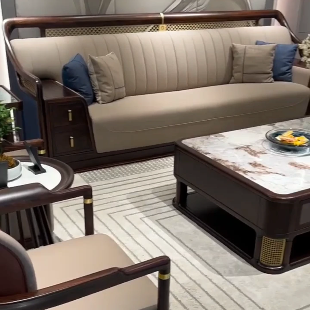 Modern Chinese Style Black Gold Wood Sofa Set – Elegant Living Room Furniture for Villas and Large Homes, Perfect for Designer Hotels with Luxurious Coffee Table