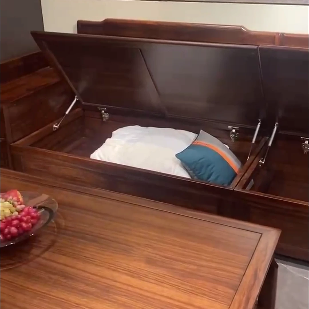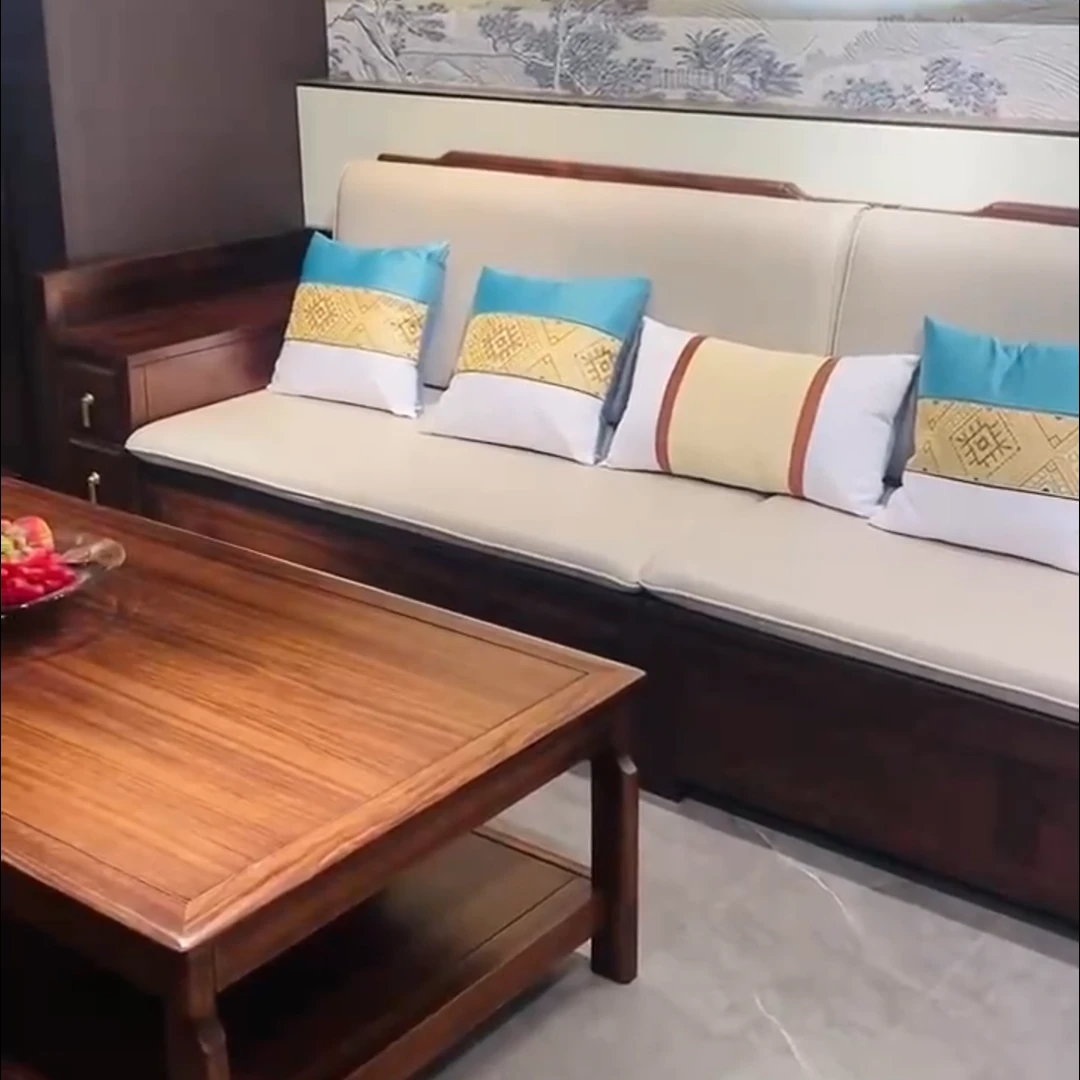 Modern Chinese Style Black Gold Wood Three-Seater Sofa - Solid Wood, Versatile for Winter and Summer, Perfect for Any Living Room Size, Elegant Storage Solution for Contemporary Luxury Living