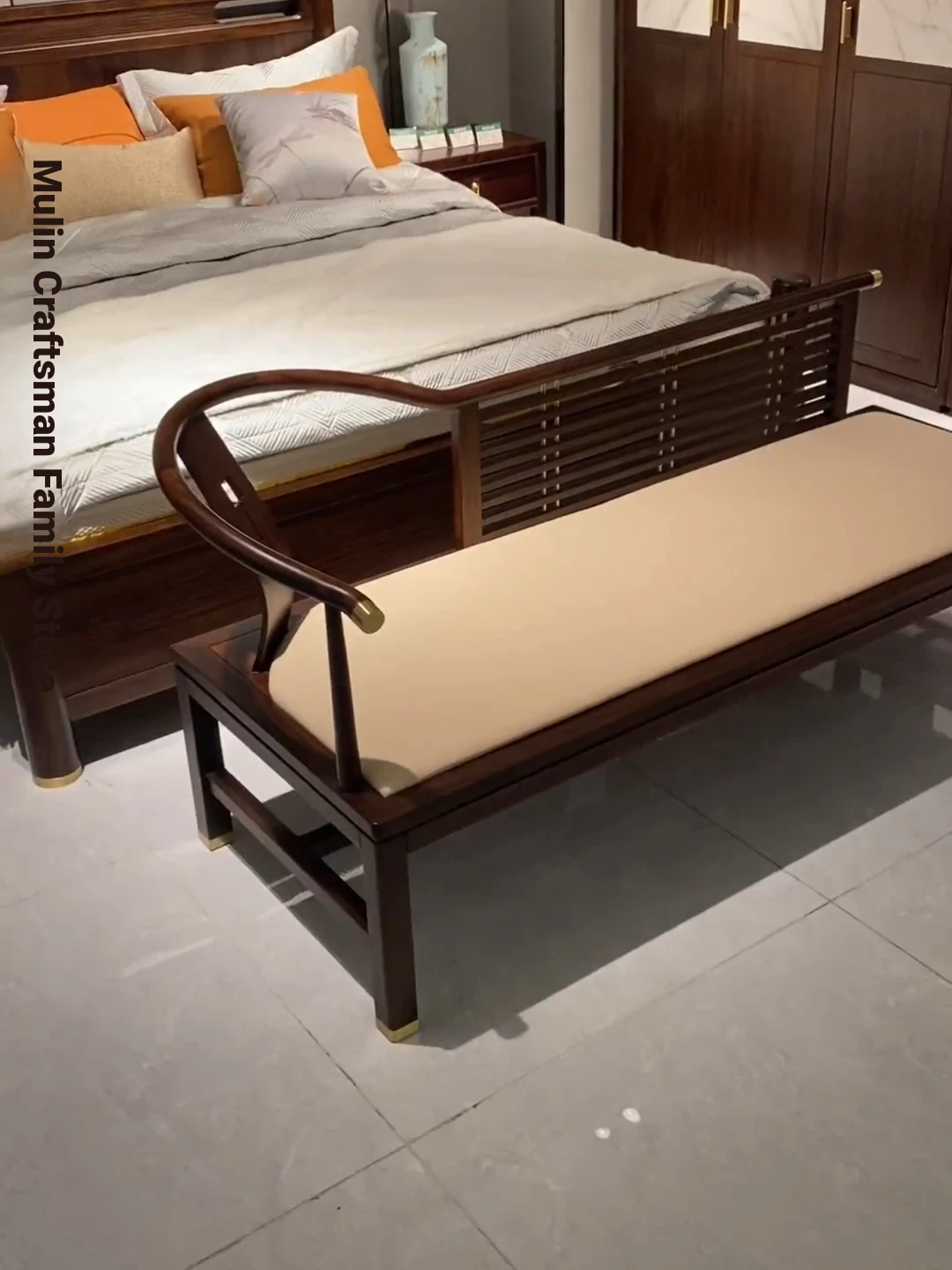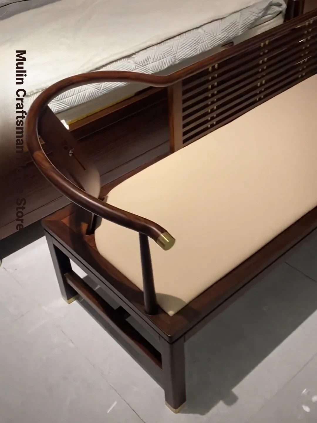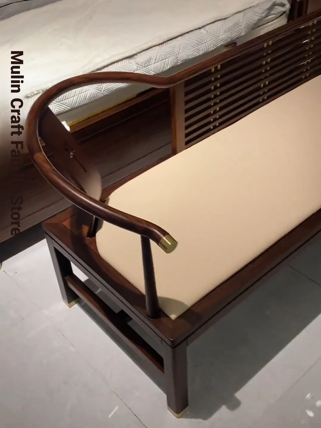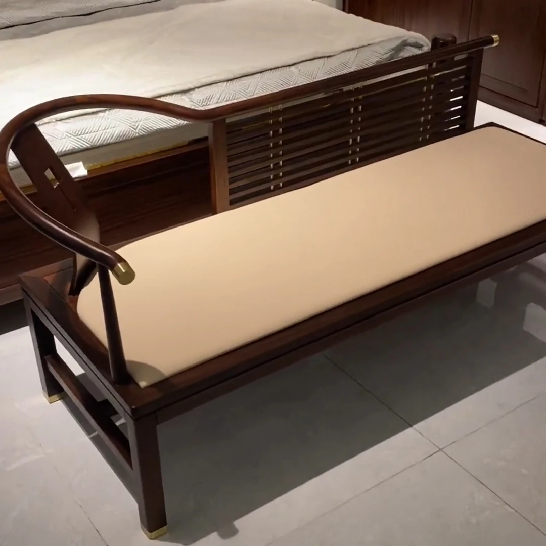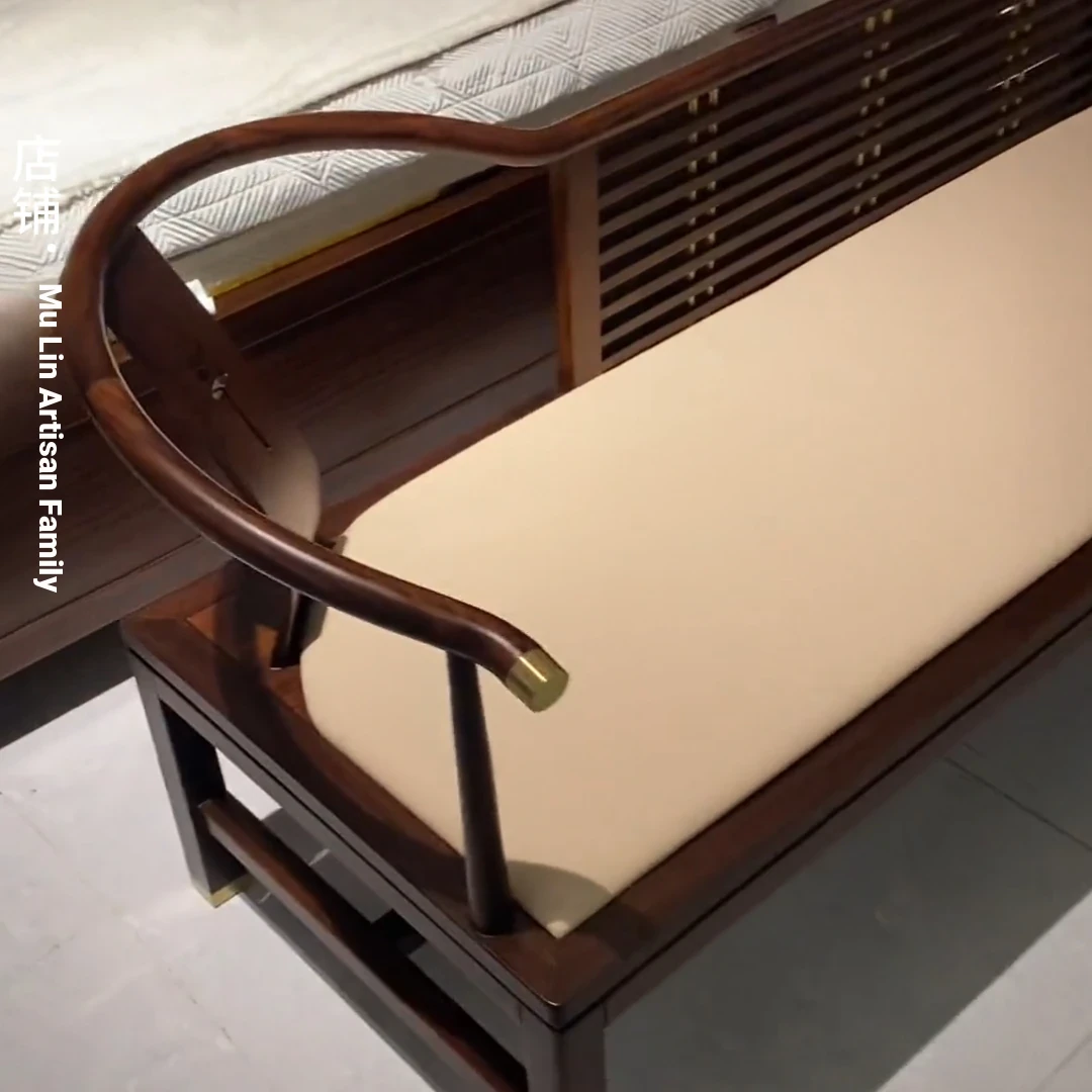 Modern Chinese Style Blackwood Chaise Lounge - Premium Solid Wood Bedside Sofa, Minimalist High-End Recliner for Luxurious Living Spaces