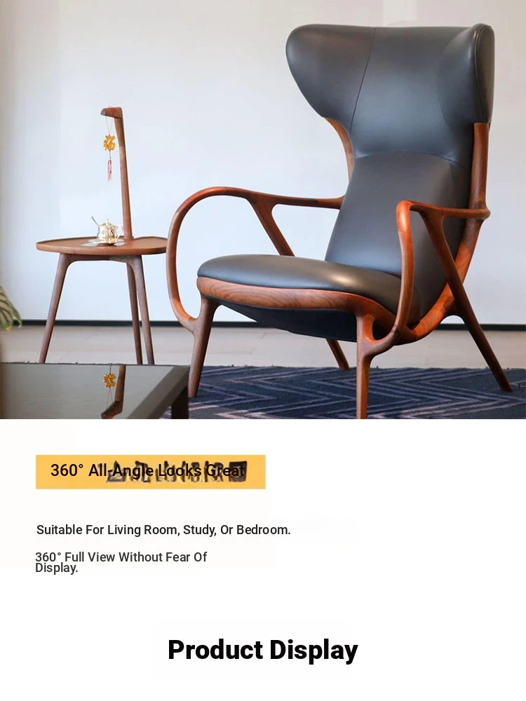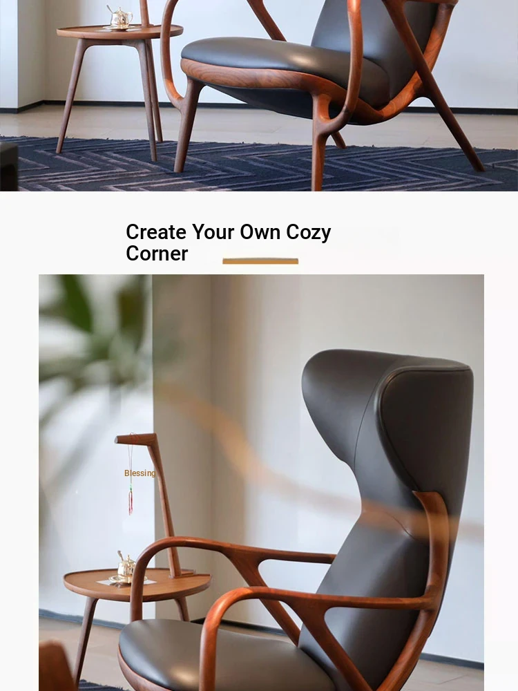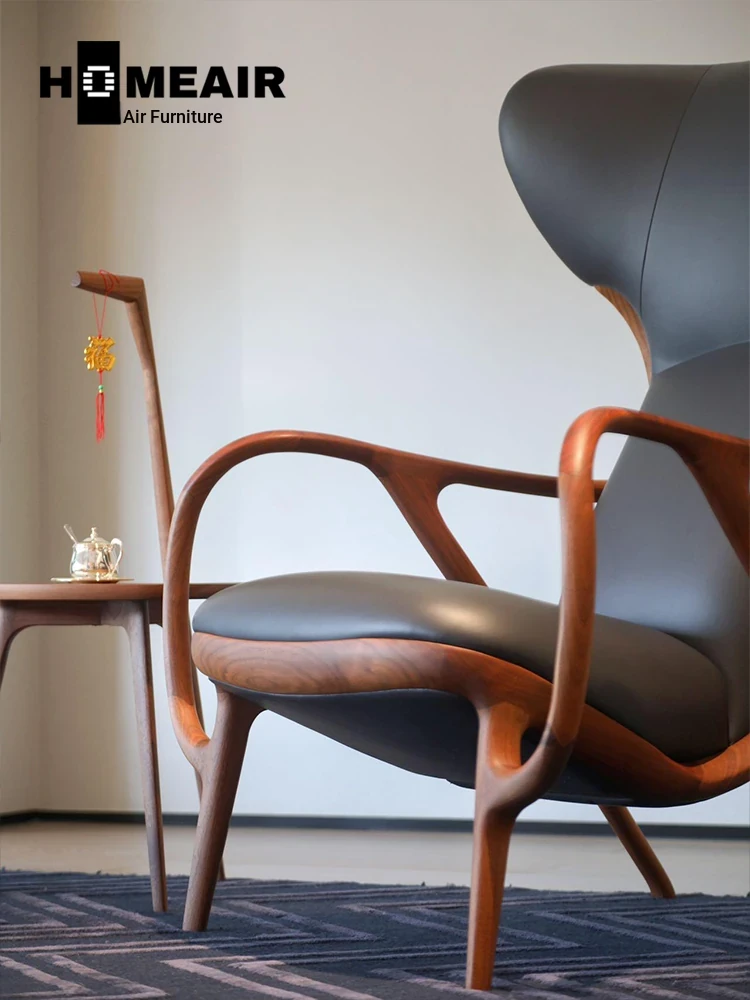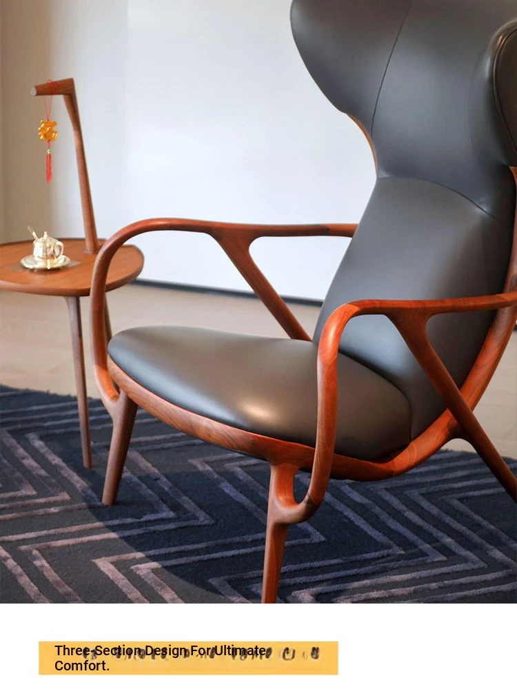 Modern Chinese Style Solid Black Walnut Sofa Chair - Minimalist Solid Wood Leisure Chair for Office Meetings and Relaxation