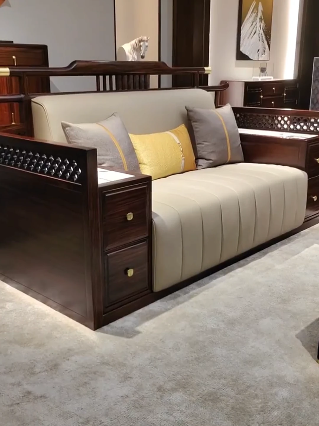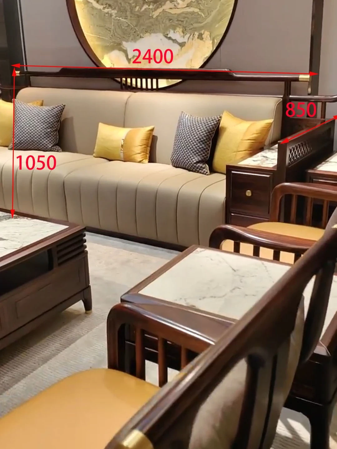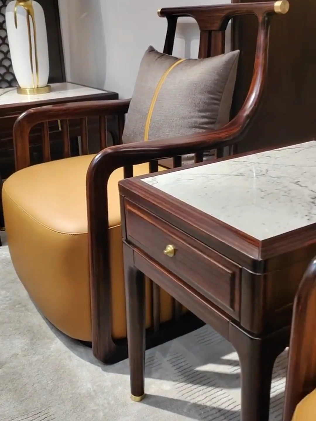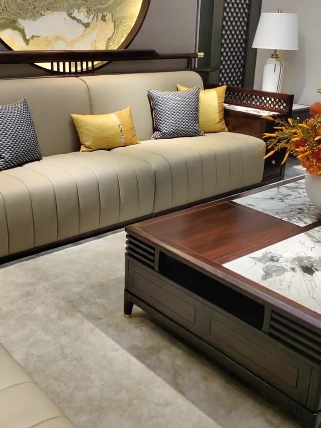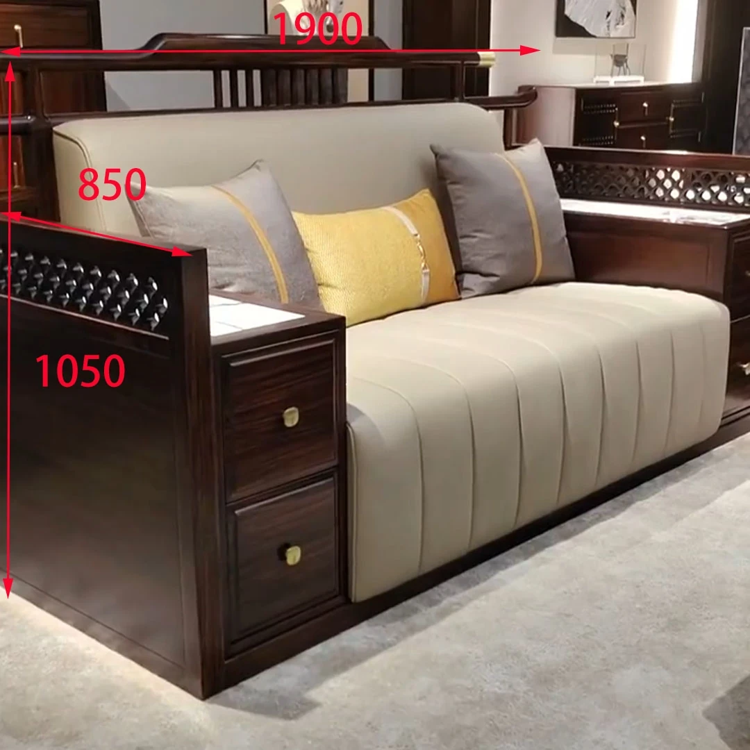 Modern Chinese-Style Blackwood Sofa and Coffee Table Set - Luxurious Solid Wood and Genuine Leather Furniture for Villa Living Rooms