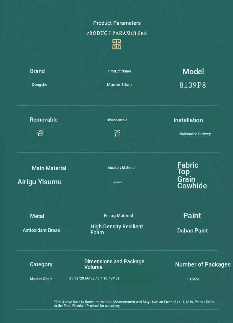 Elegant Luxury New Chinese/Ebony Leather Master Chair