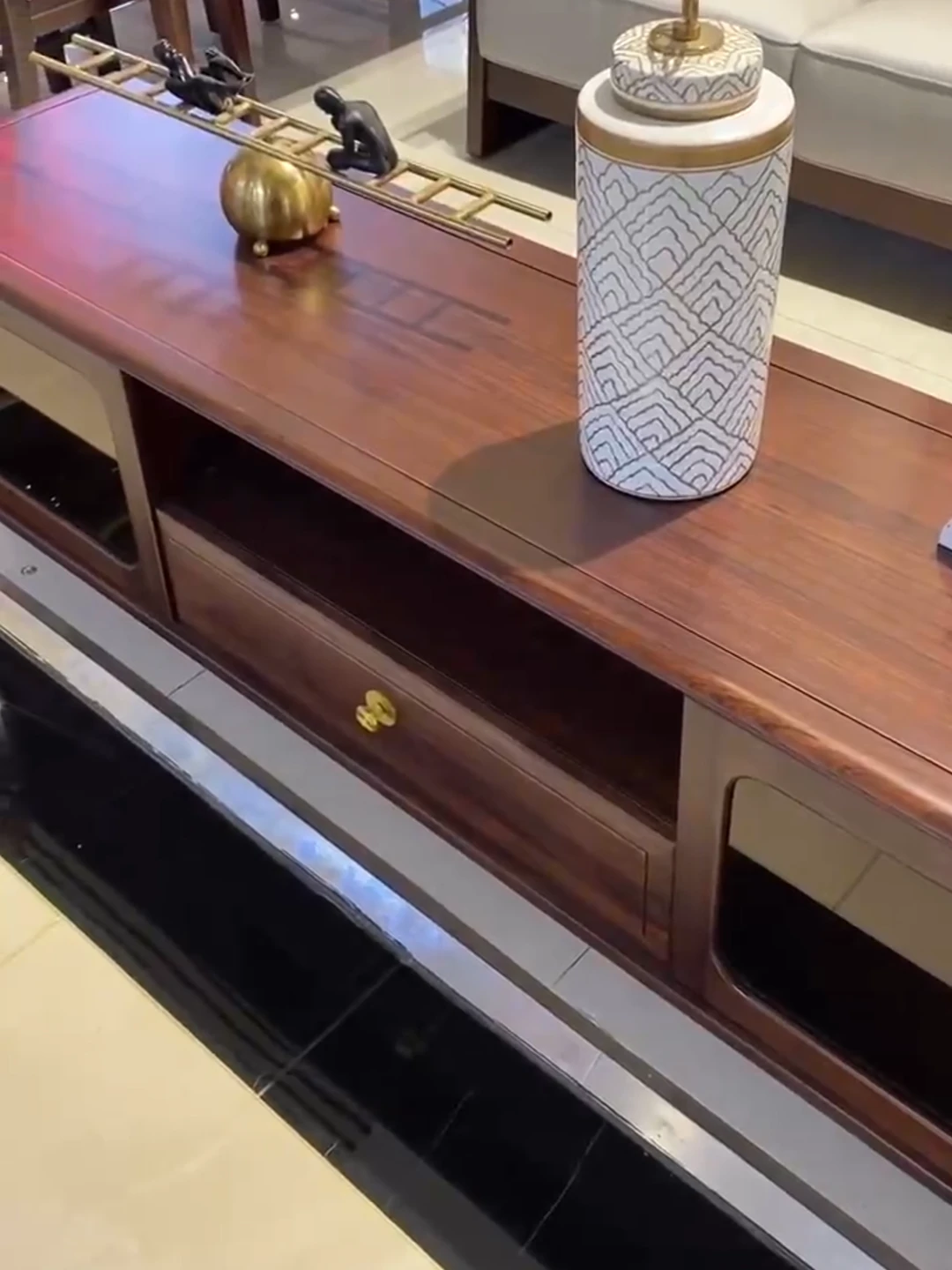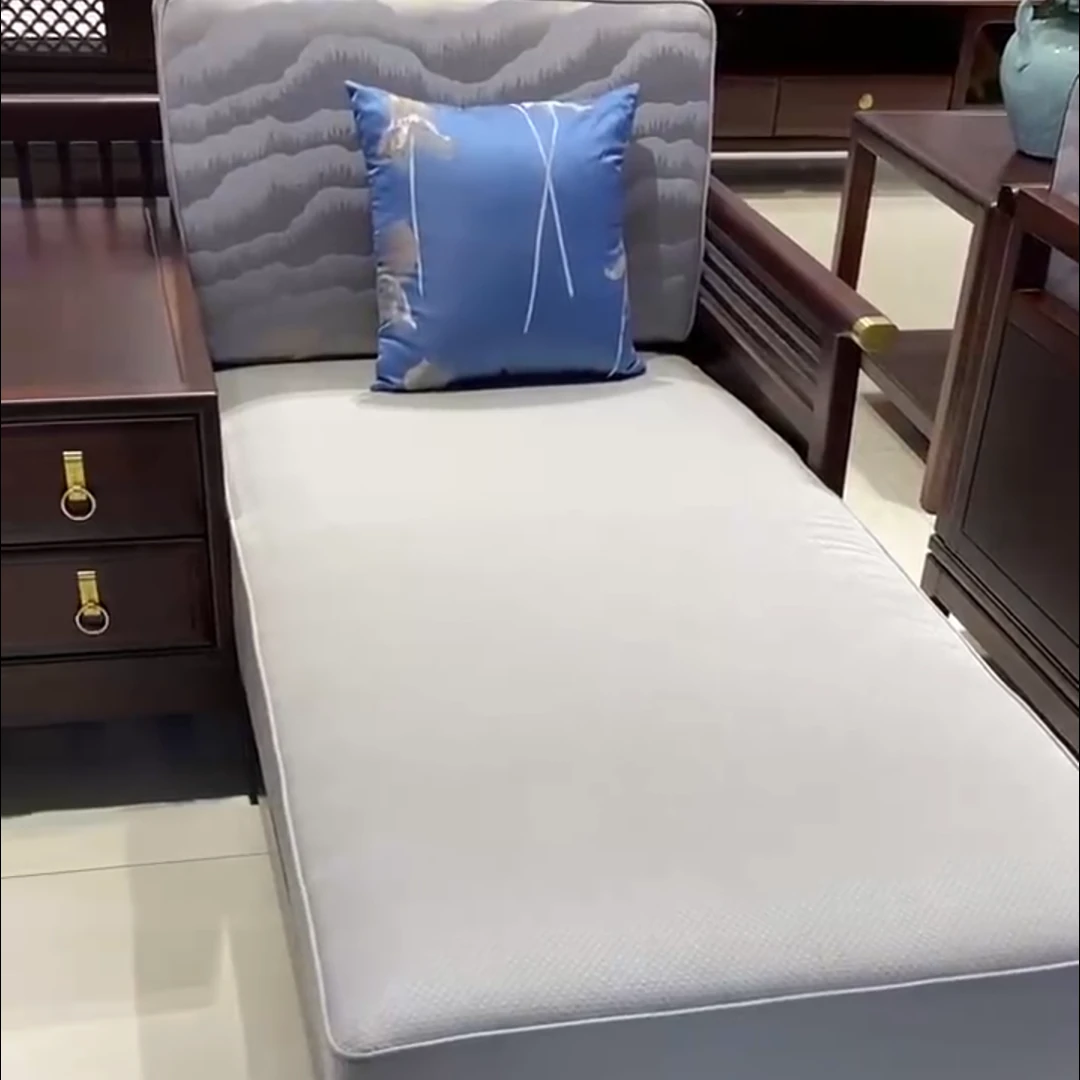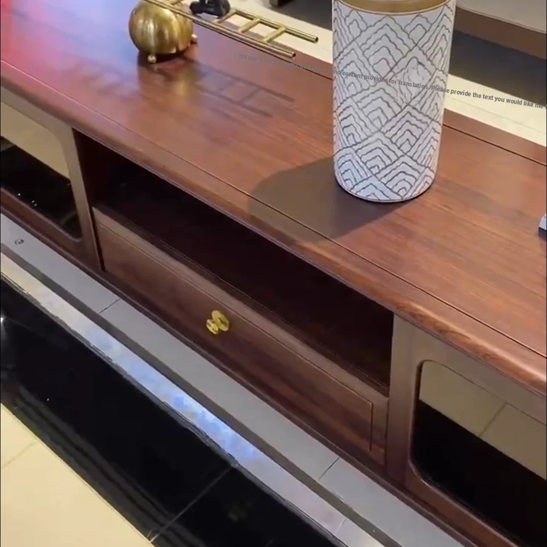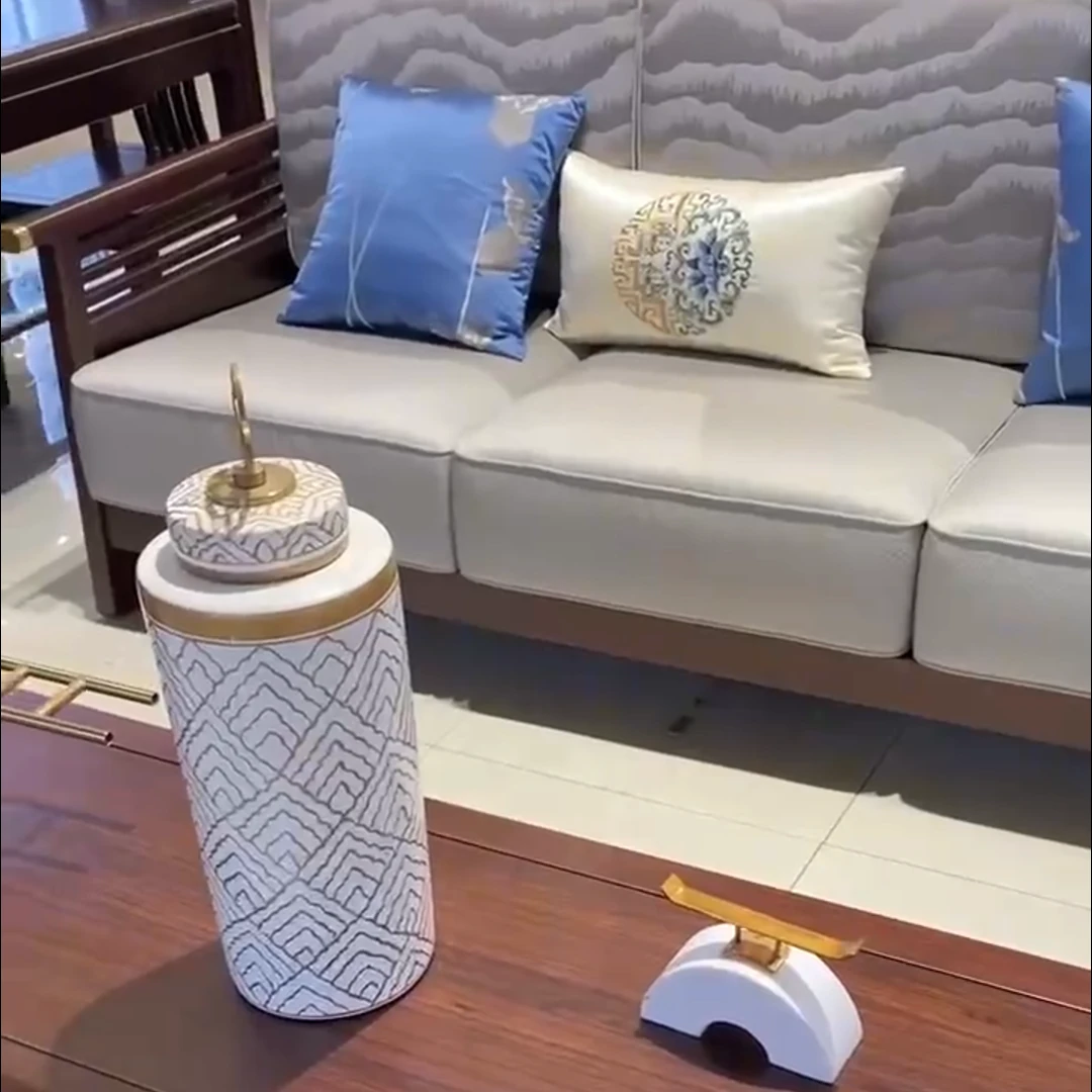 Modern Chinese-Style Solid Wood Sofa Set with Luxurious Chaise Lounge - Elegant U-shaped Design for Villa Living Rooms, Featuring Premium Black Gold Wood and Chic Aesthetics.