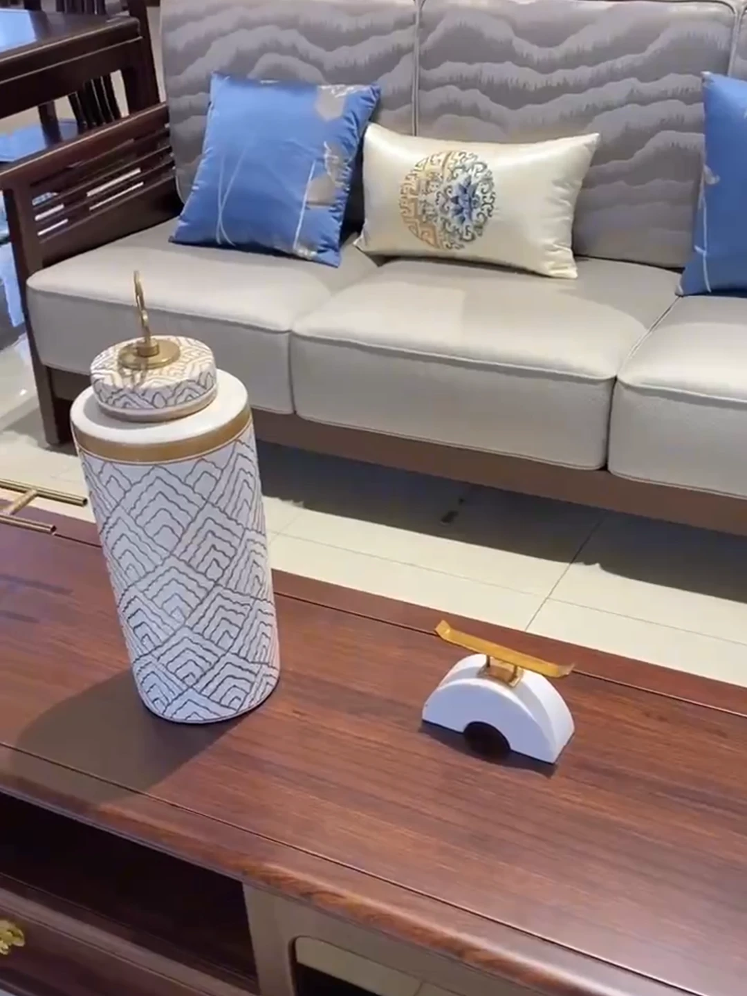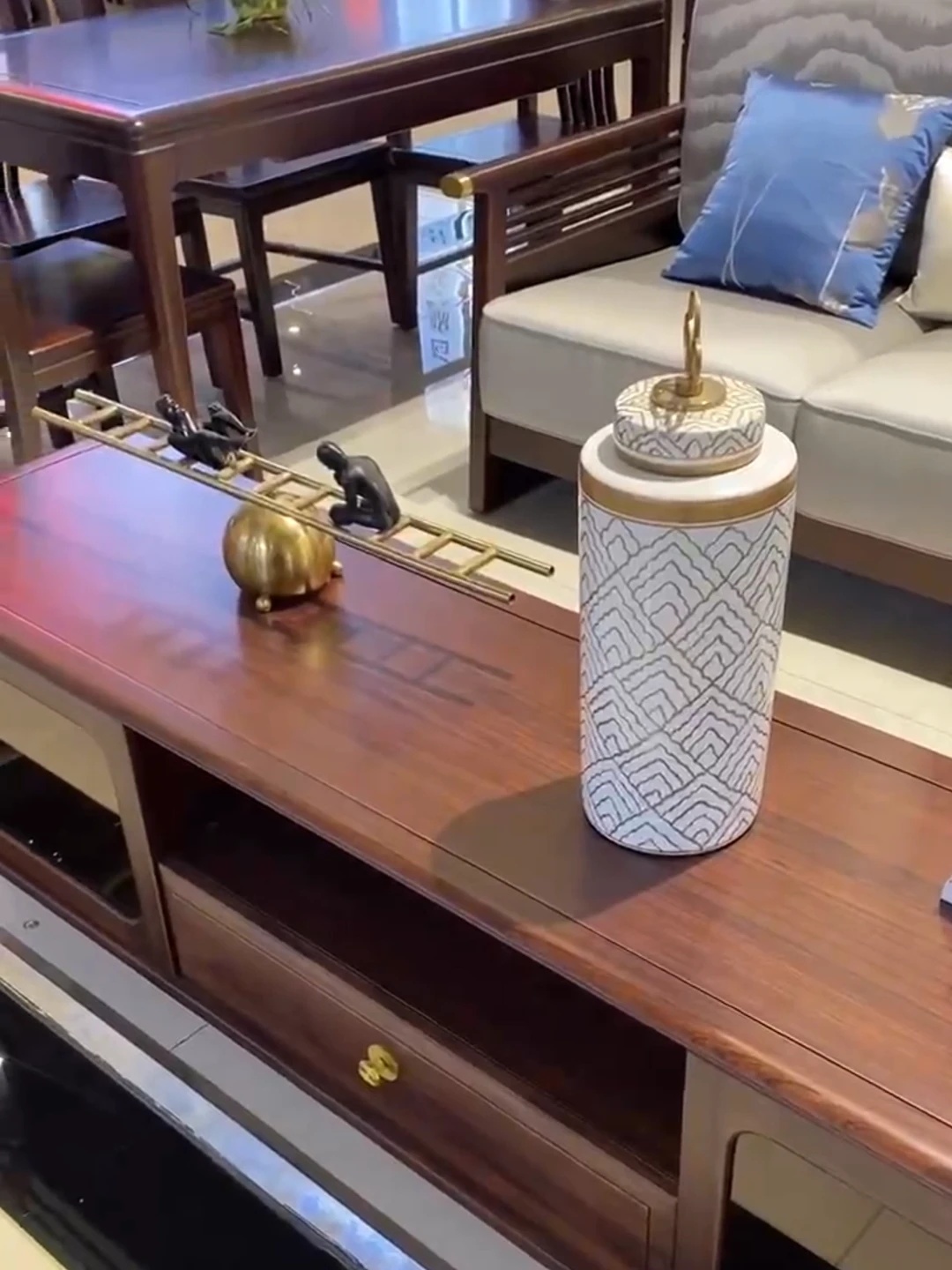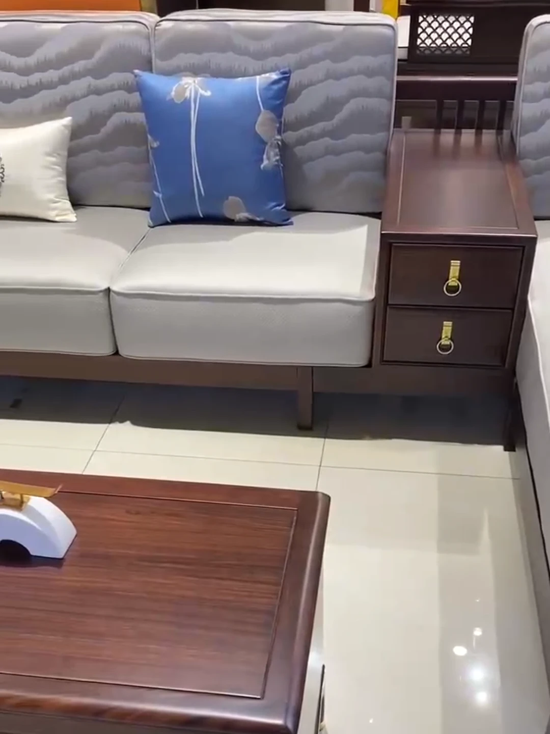 Modern Chinese-Style Solid Wood Sofa Set with Luxurious Chaise Lounge - Elegant U-shaped Design for Villa Living Rooms, Featuring Premium Black Gold Wood and Chic Aesthetics.