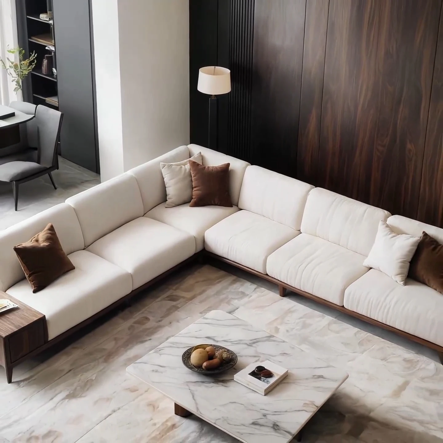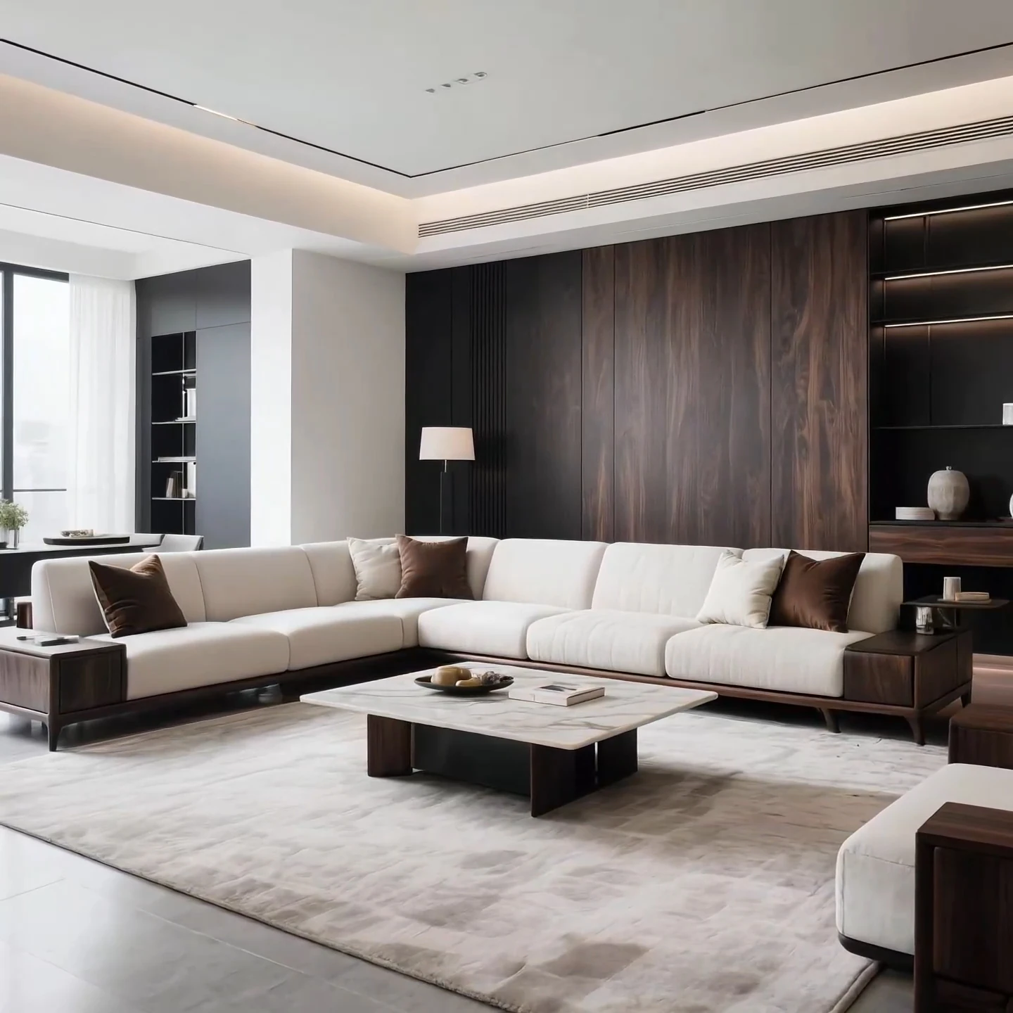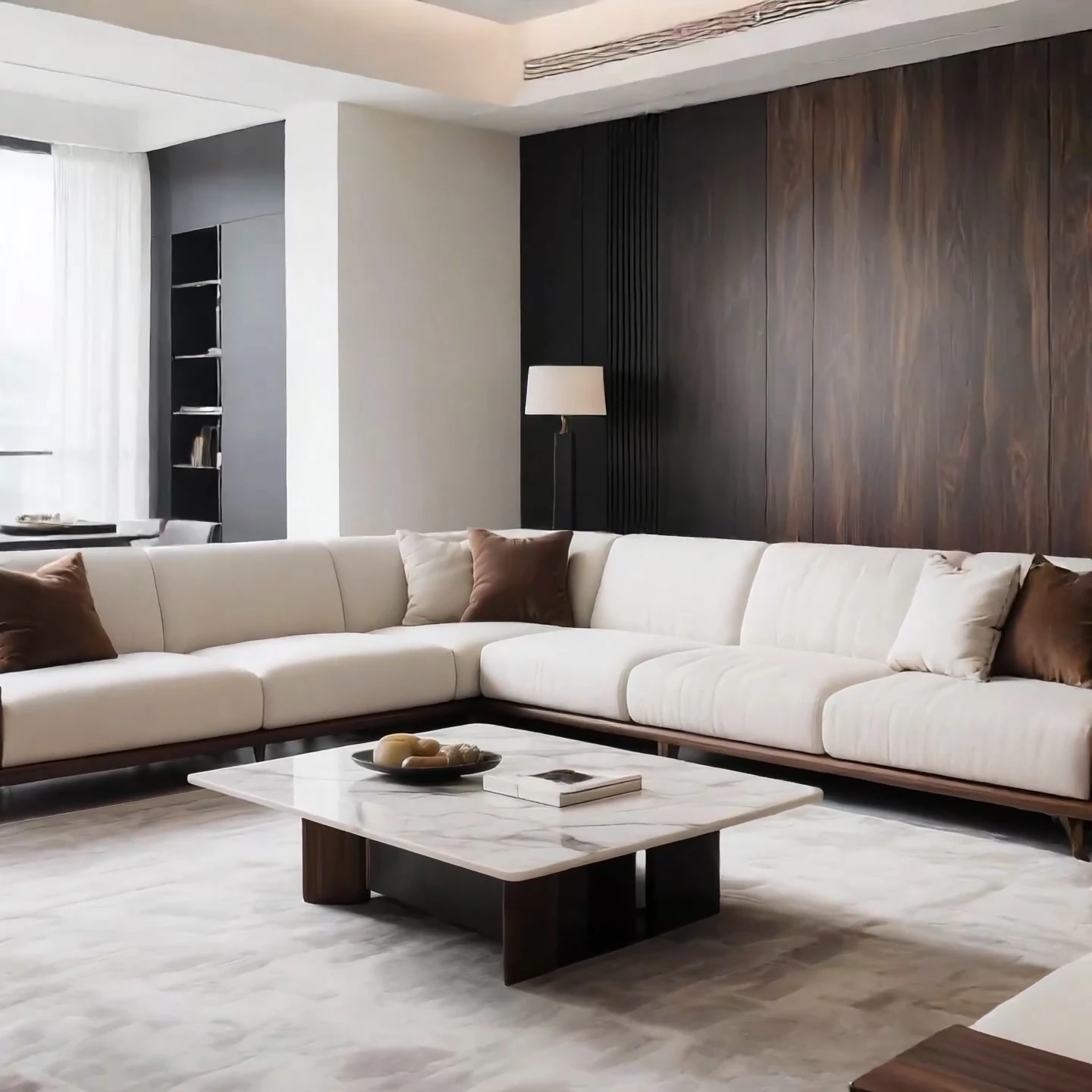 Modern Luxurious New Chinese Style Black Walnut Corner Sofa – Solid Wood Furniture for Villas and Sample Rooms in North America