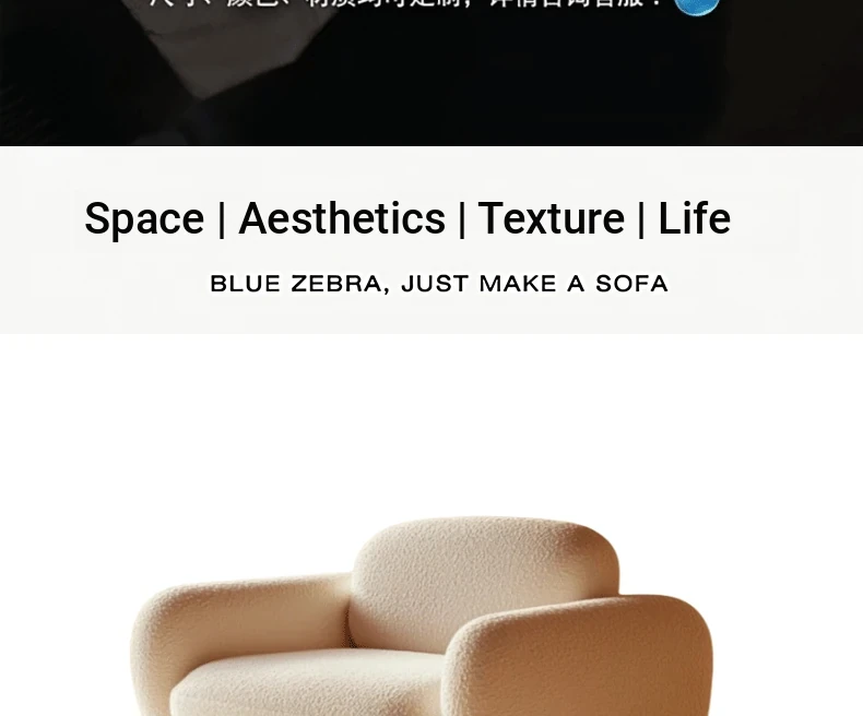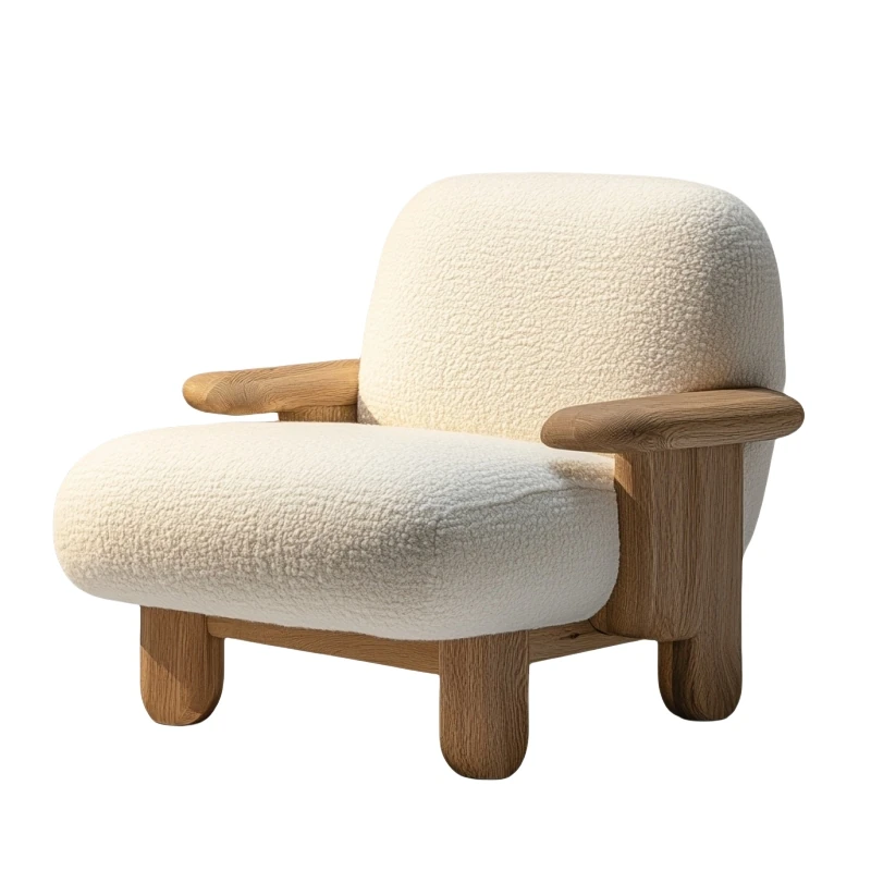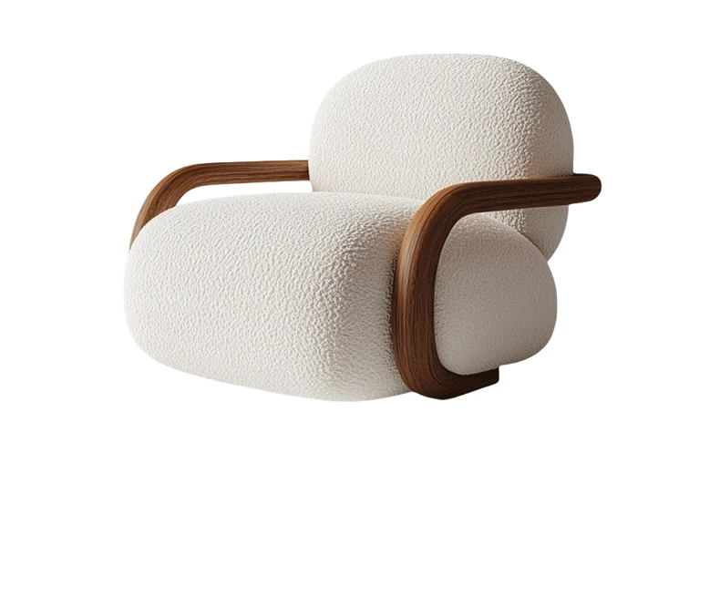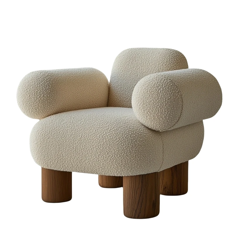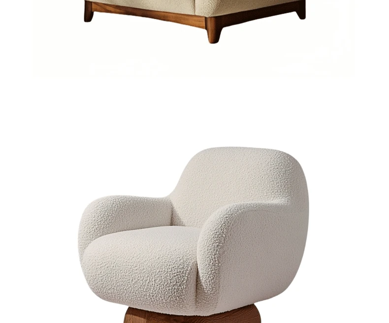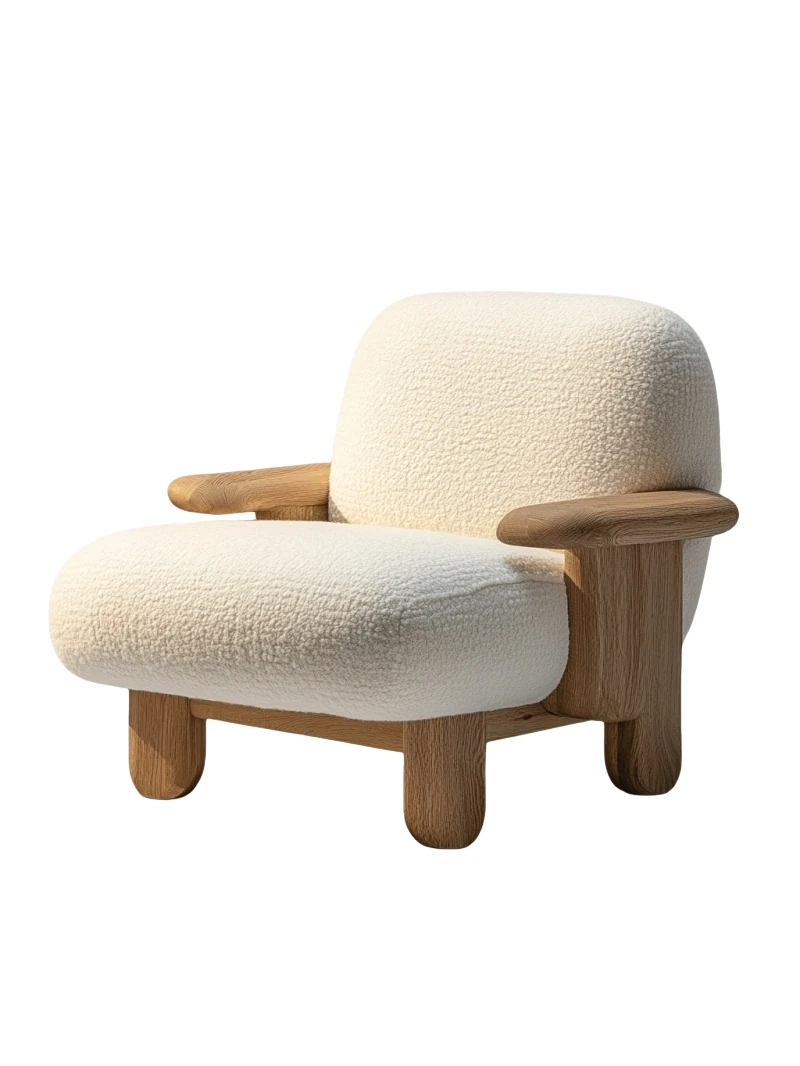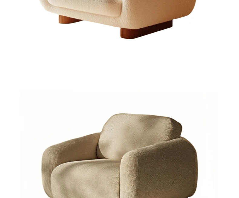 Modern Luxury High-End Single Leisure Sofa Chair for Living Room, Lamb Fleece, Vintage Cream Aesthetic, Designer Edition, Trendy and Cozy