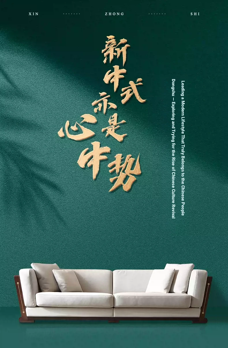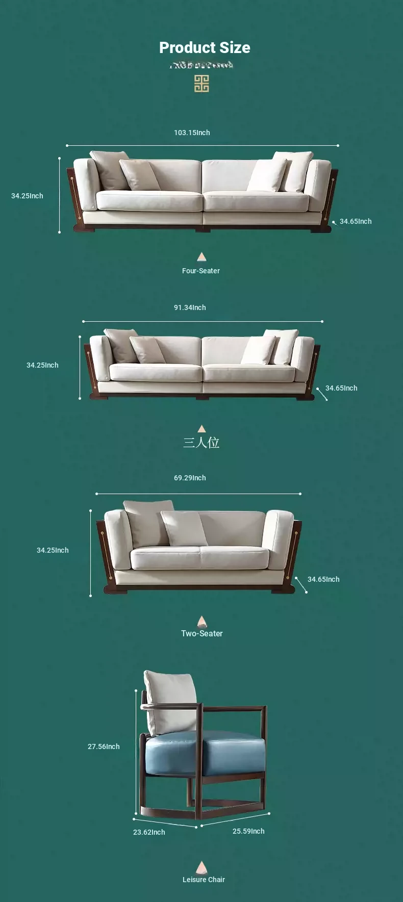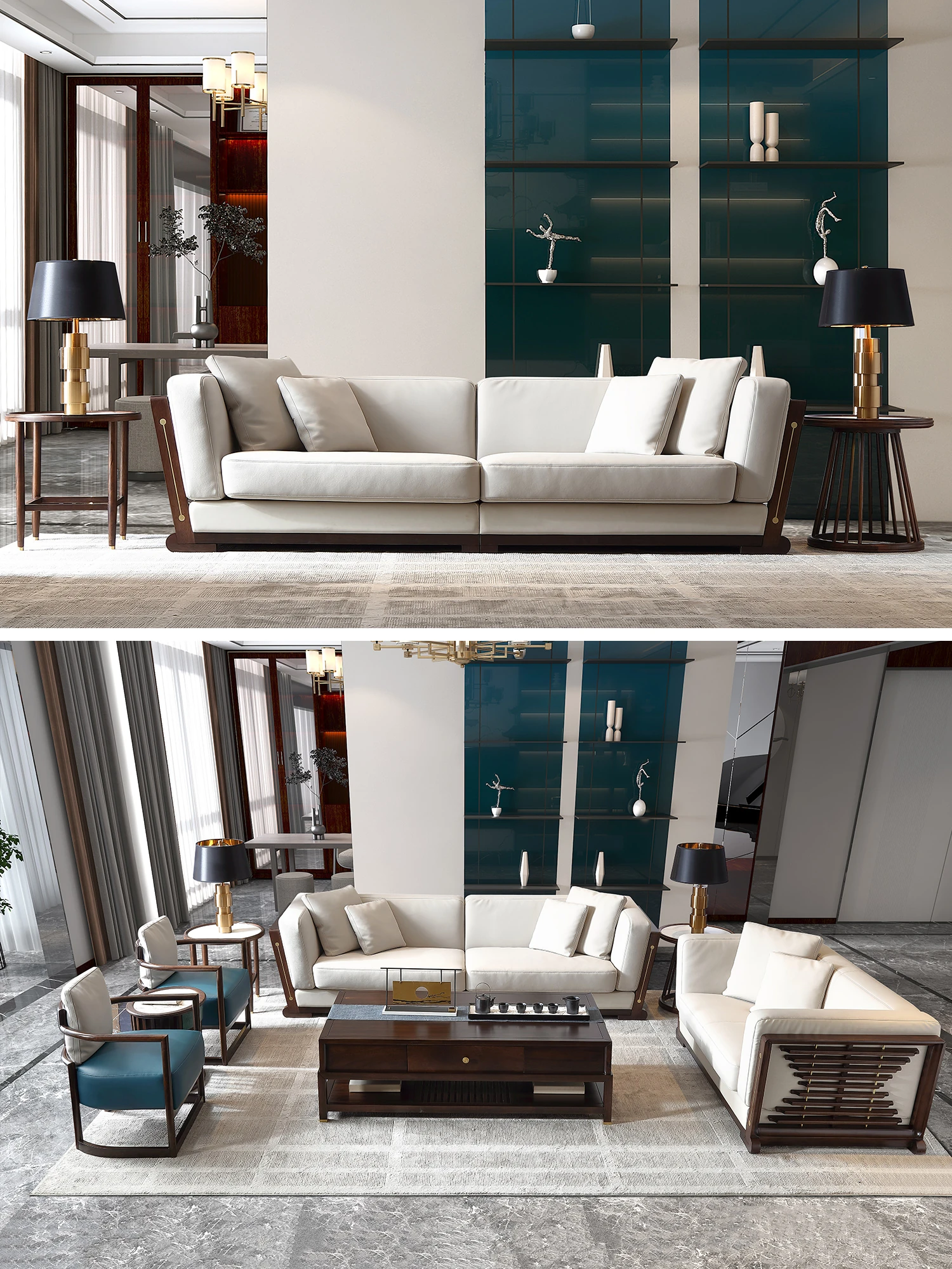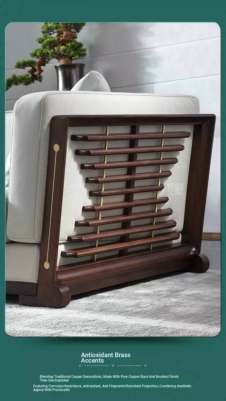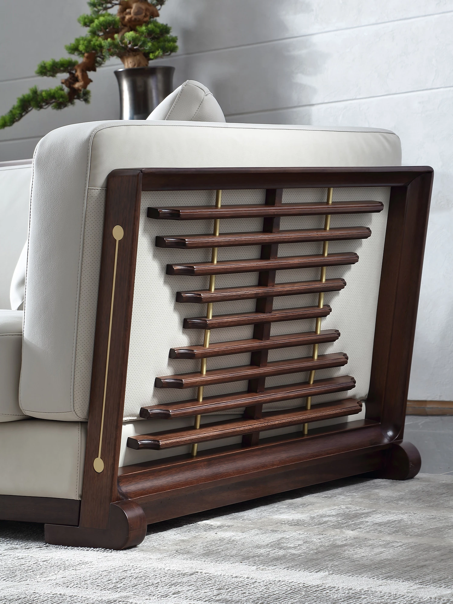 Elegant luxury new Chinese style/Ebony three-person (genuine leather)