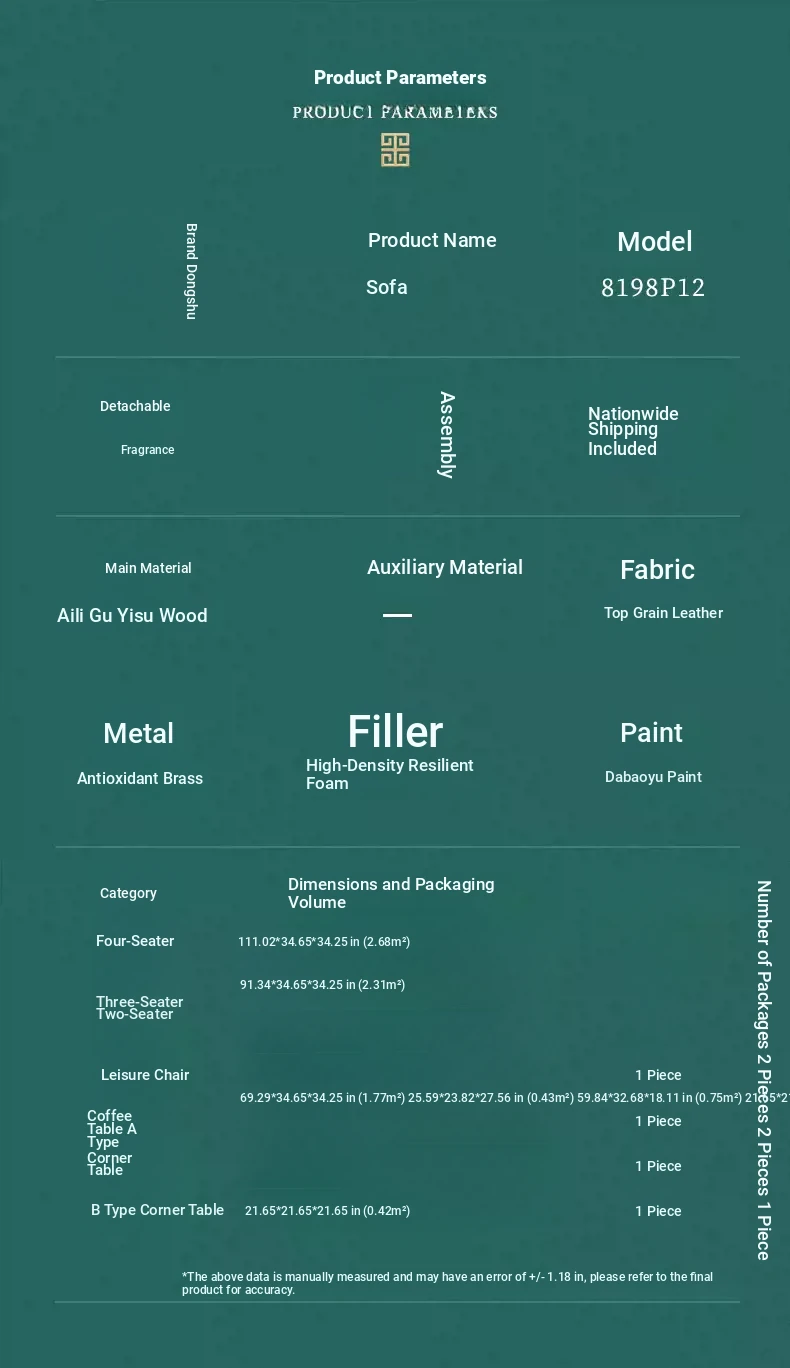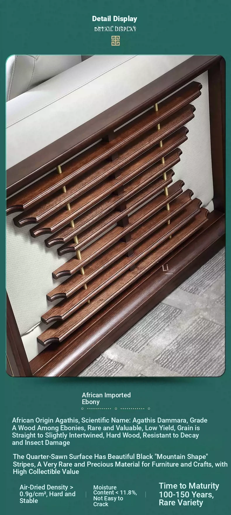 Elegant luxury new Chinese style/Ebony four-person (genuine leather)