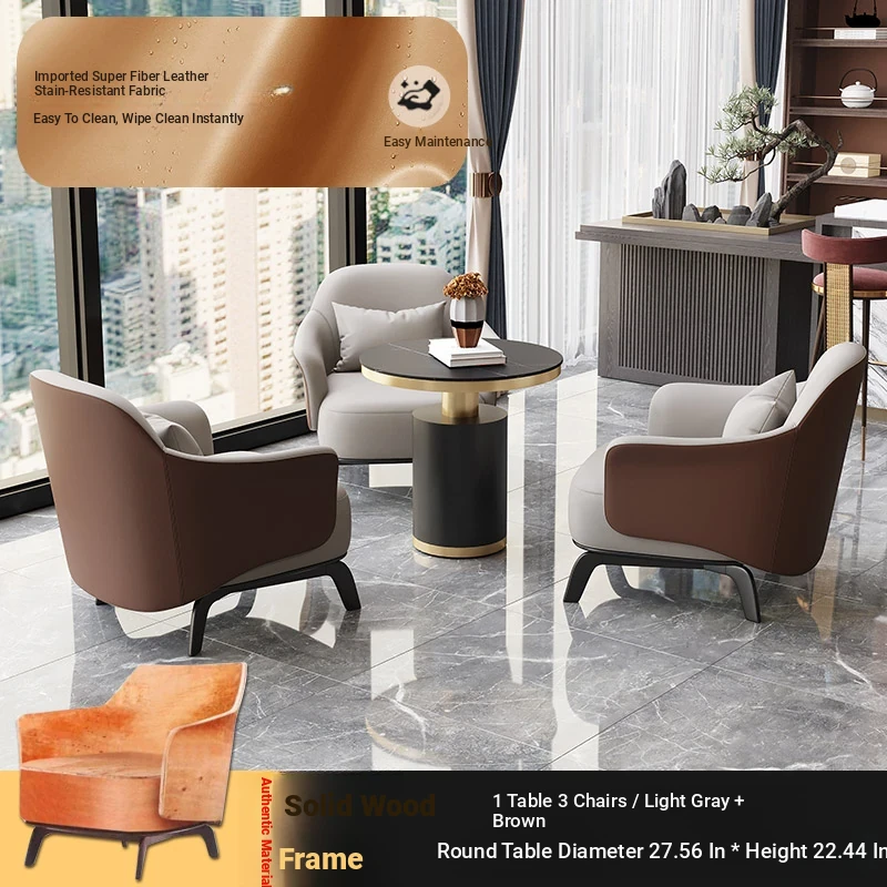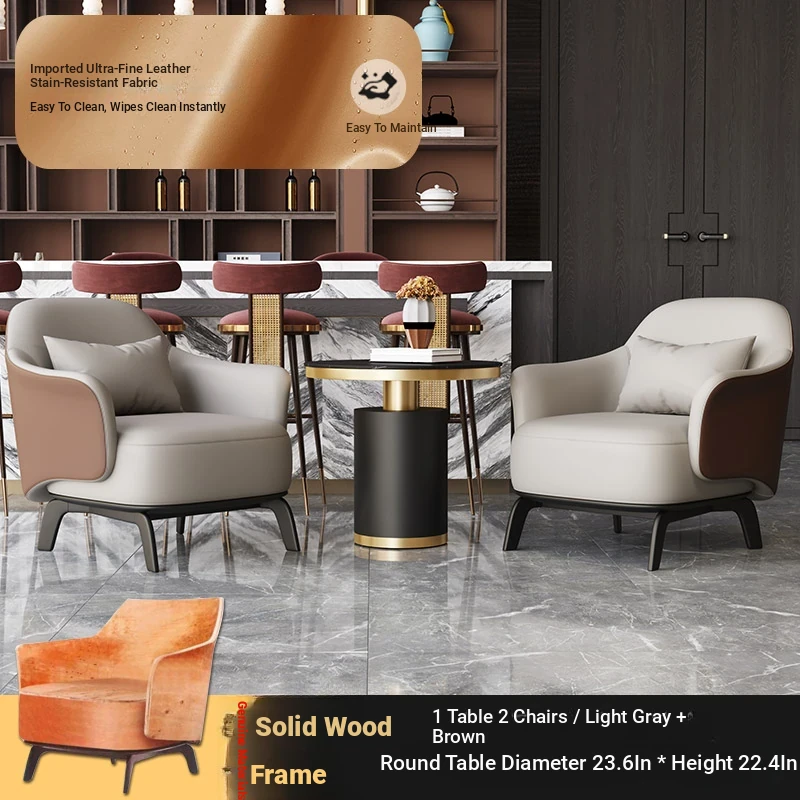 1 Table 2 Chairs + round 23.62in*22.44in [gray + Brown]]