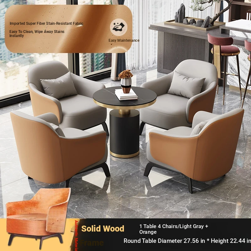 1 Table 4 chairs + round 27.56in*22.44in [meter Gray + Orange]]