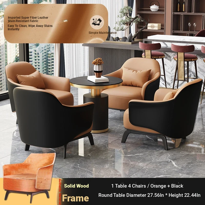 1 Table 4 chairs + round 27.56in*22.44in [Orange + Black]]