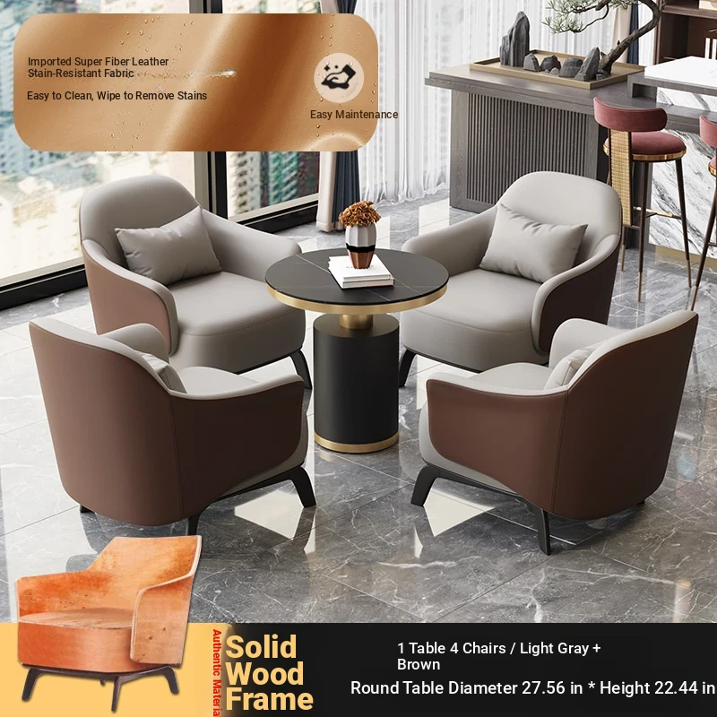 1 Table 4 chairs + round 27.56in*22.44in [gray + Brown]]