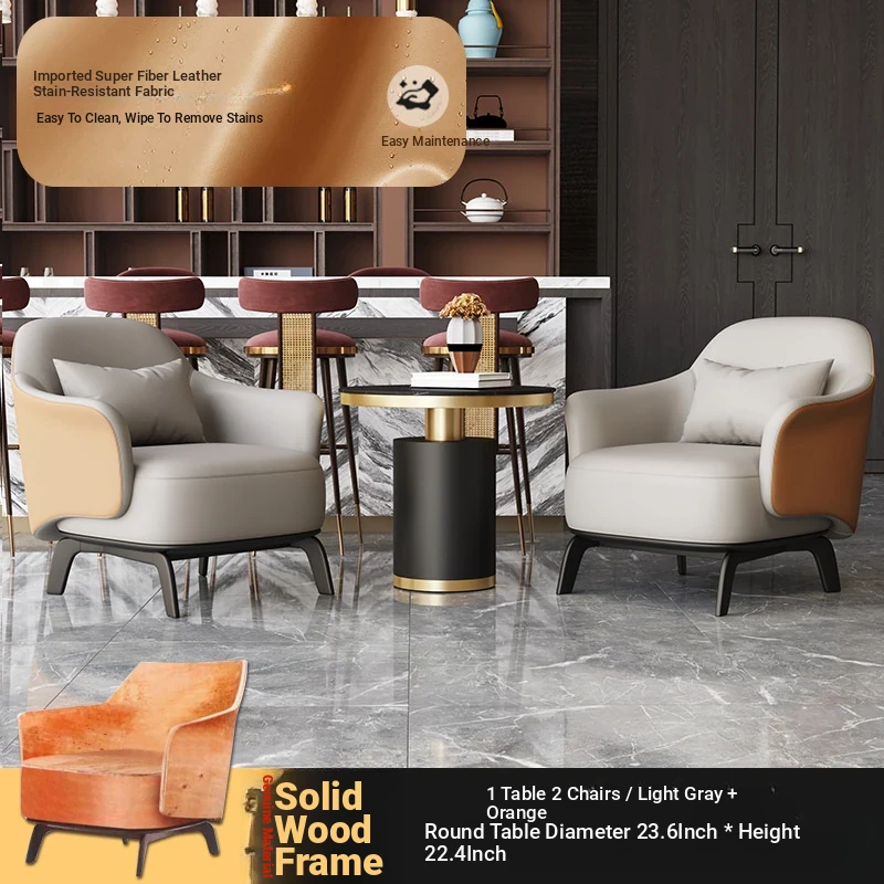1 Table 2 Chairs + round 23.62in*22.44in [gray + Orange]]