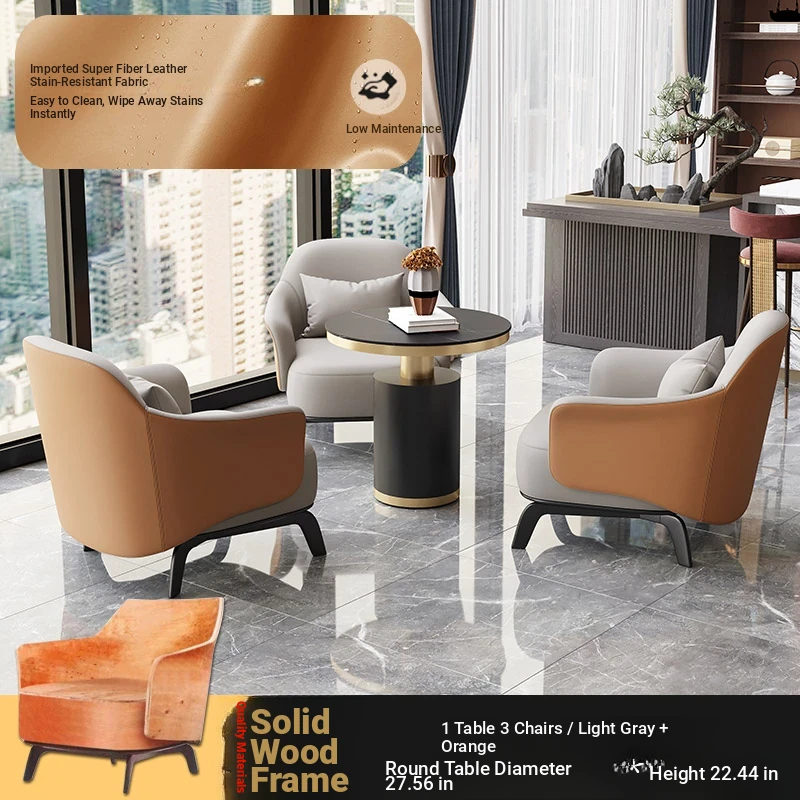 1 Table 3 chairs + round 27.56in*22.44in [meter Gray + Orange]]