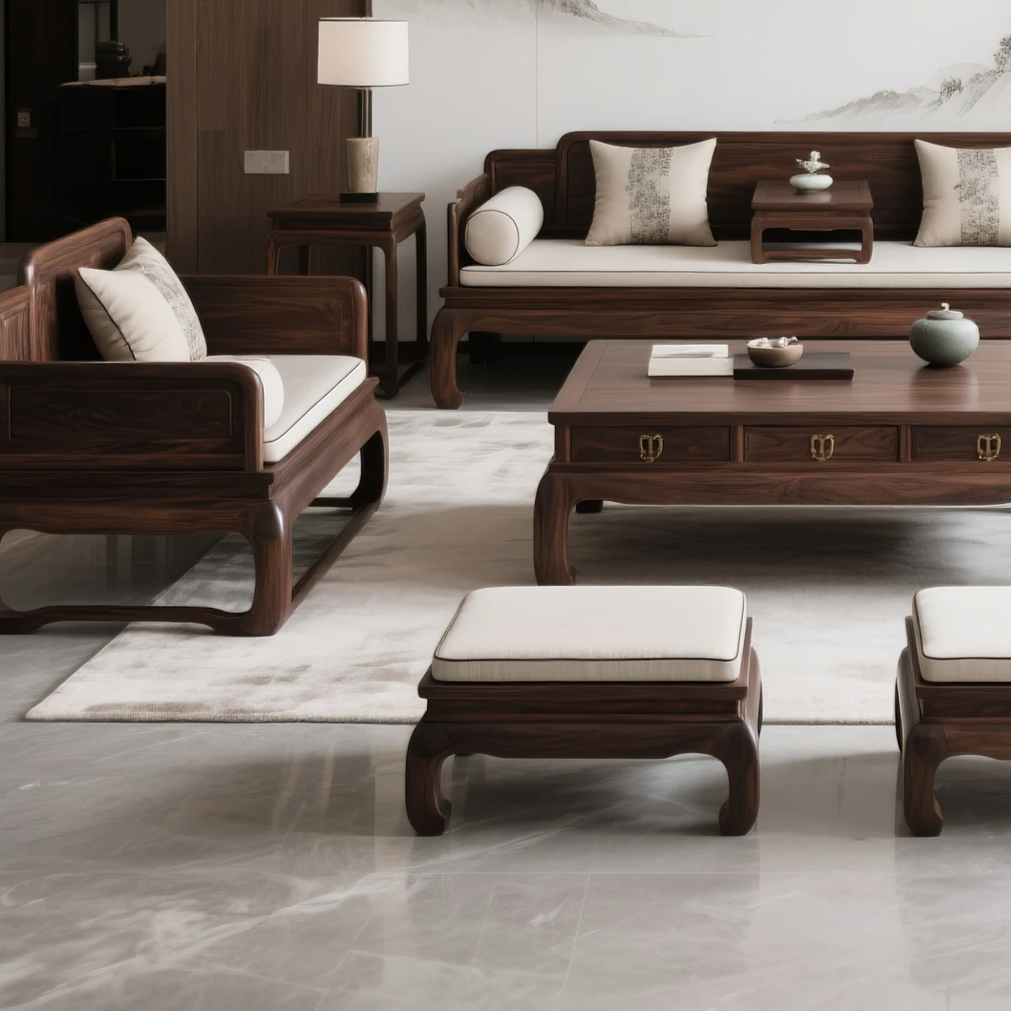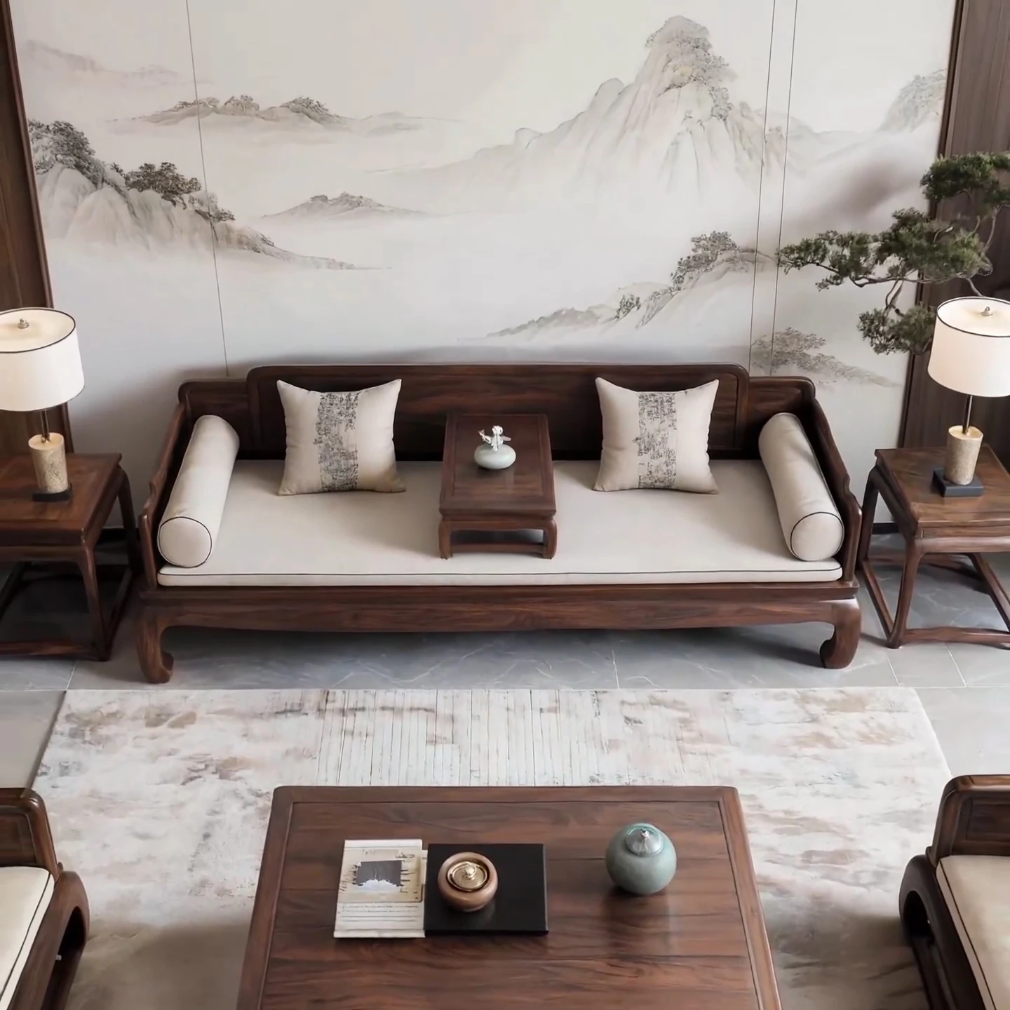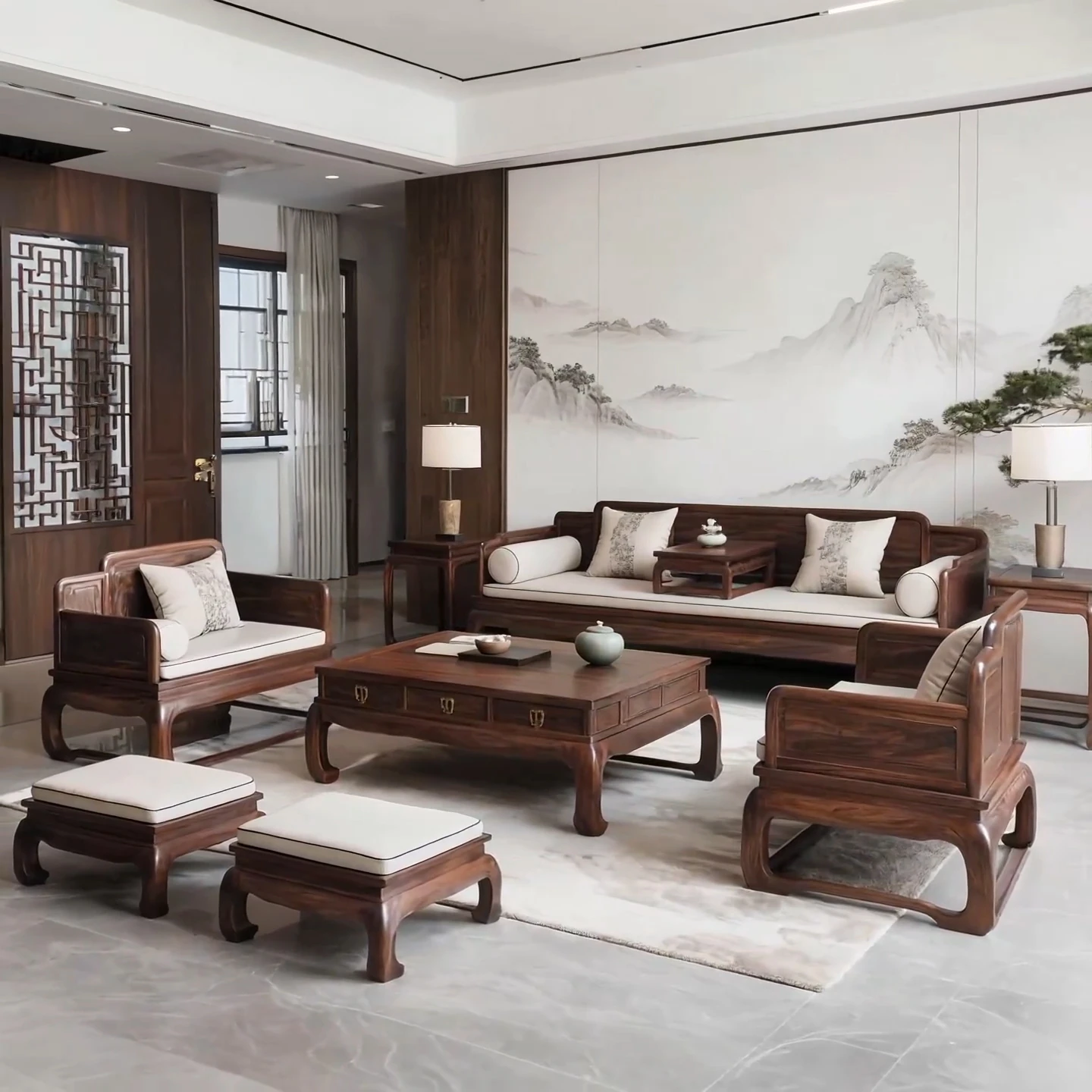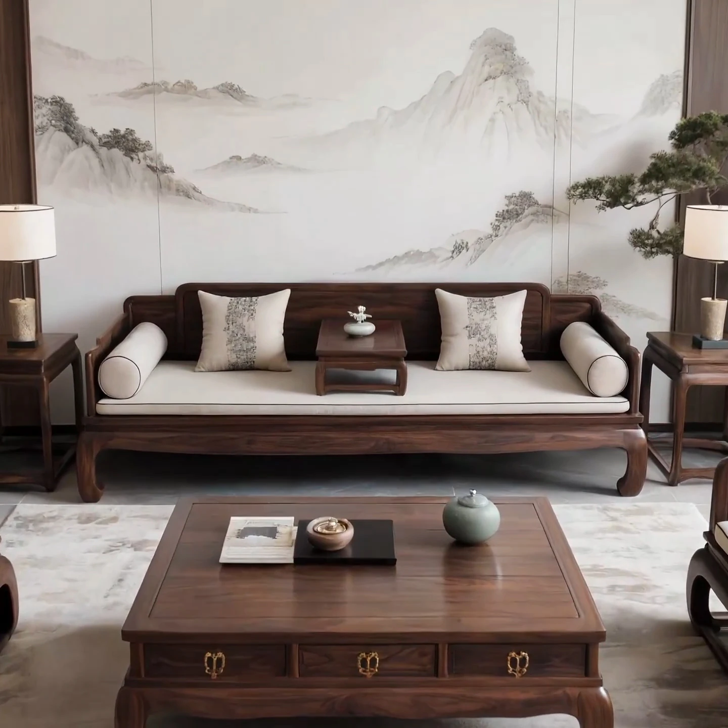 New Chinese Style North American Black Walnut Altar Bed Solid Wood Sofa - Ideal for Villas, Model Rooms, Hotels, and Clubhouse Reception Furniture.