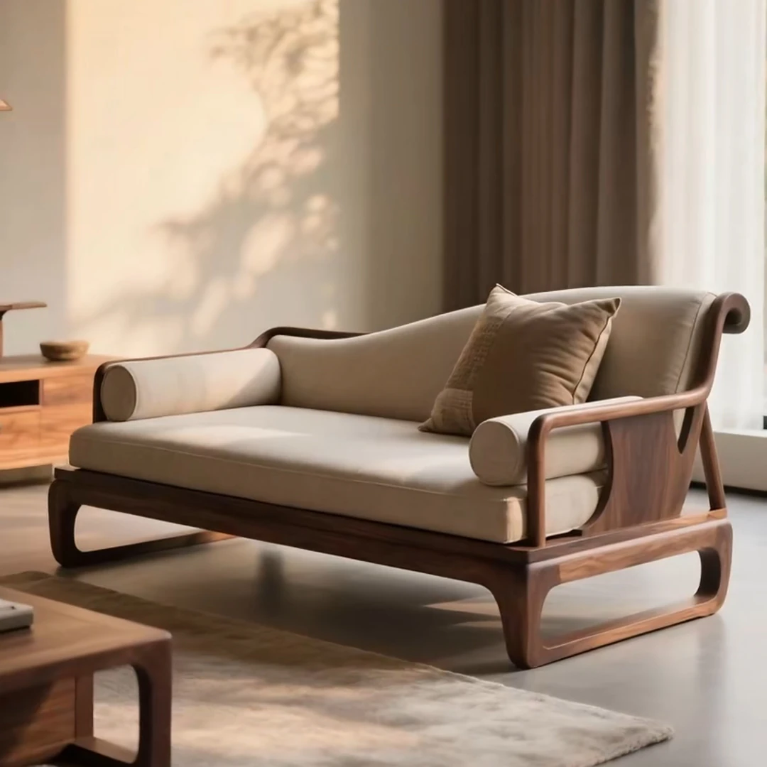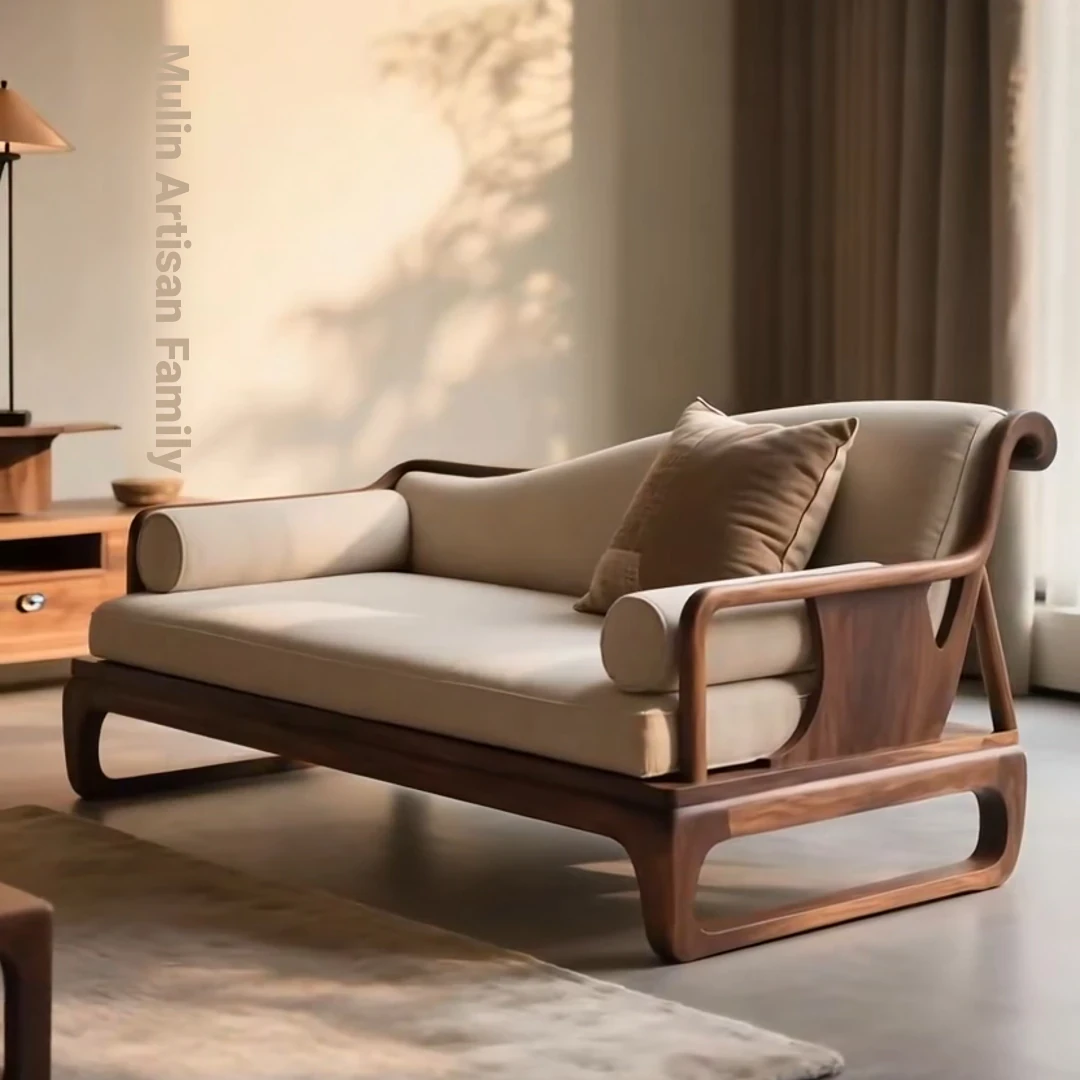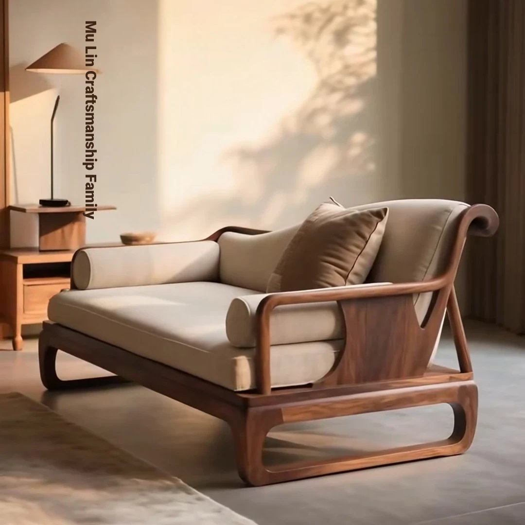 New Chinese Style North American Black Walnut Chaise Lounge - Elegant Song Dynasty Aesthetic Solid Wood Daybed for Living Room and Balcony Furniture