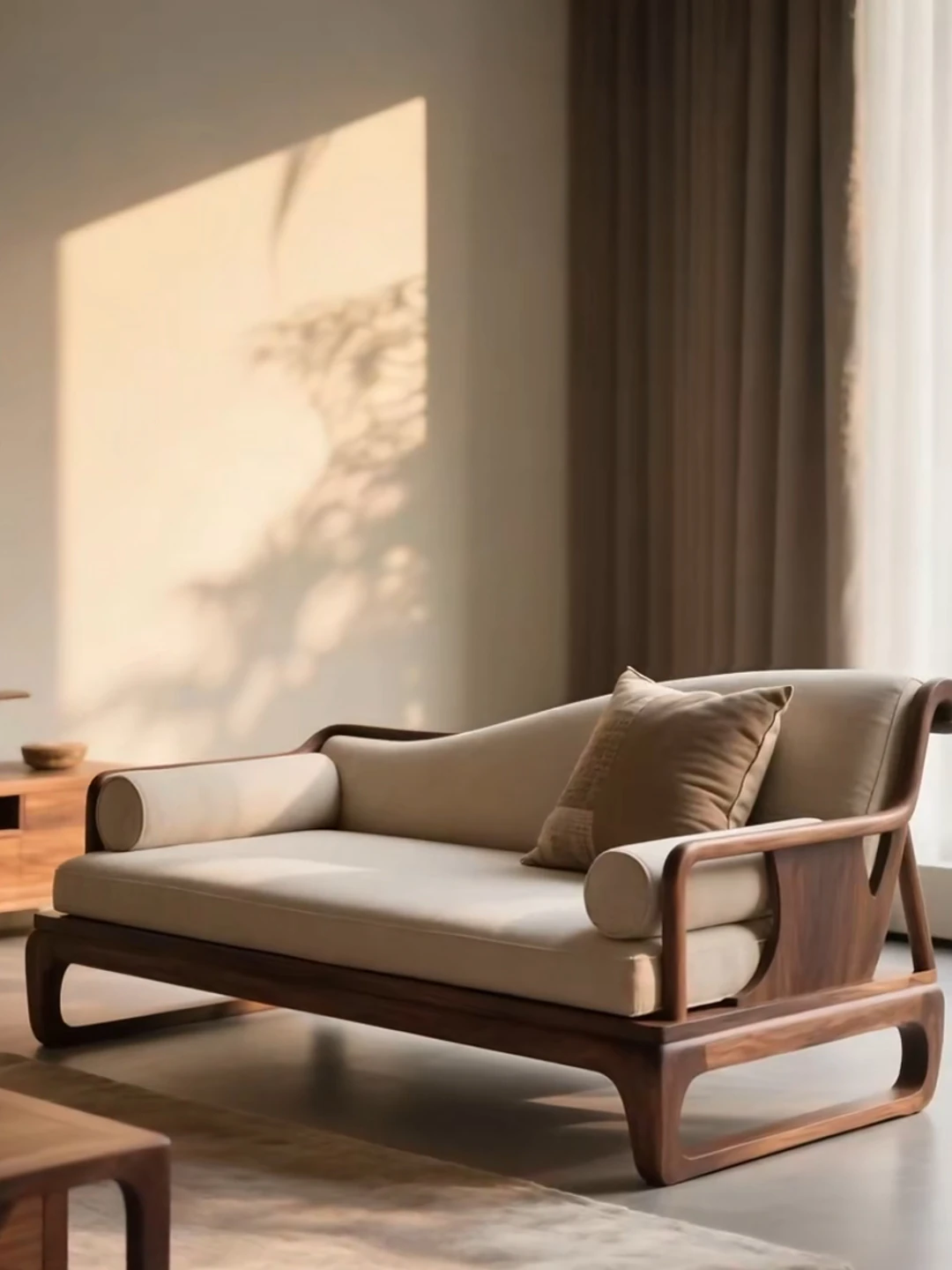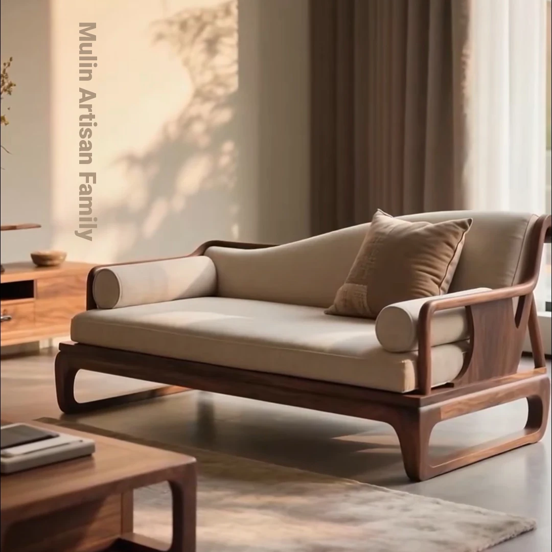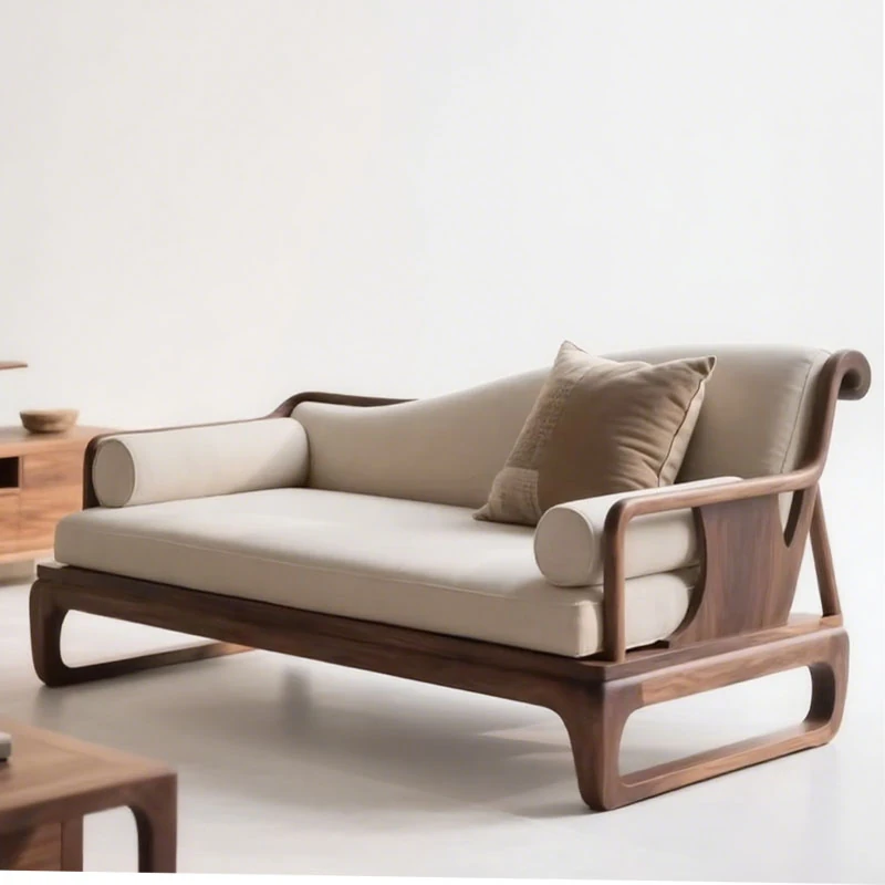 New Chinese Style North American Black Walnut Chaise Lounge - Elegant Song Dynasty Aesthetic Solid Wood Daybed for Living Room and Balcony Furniture