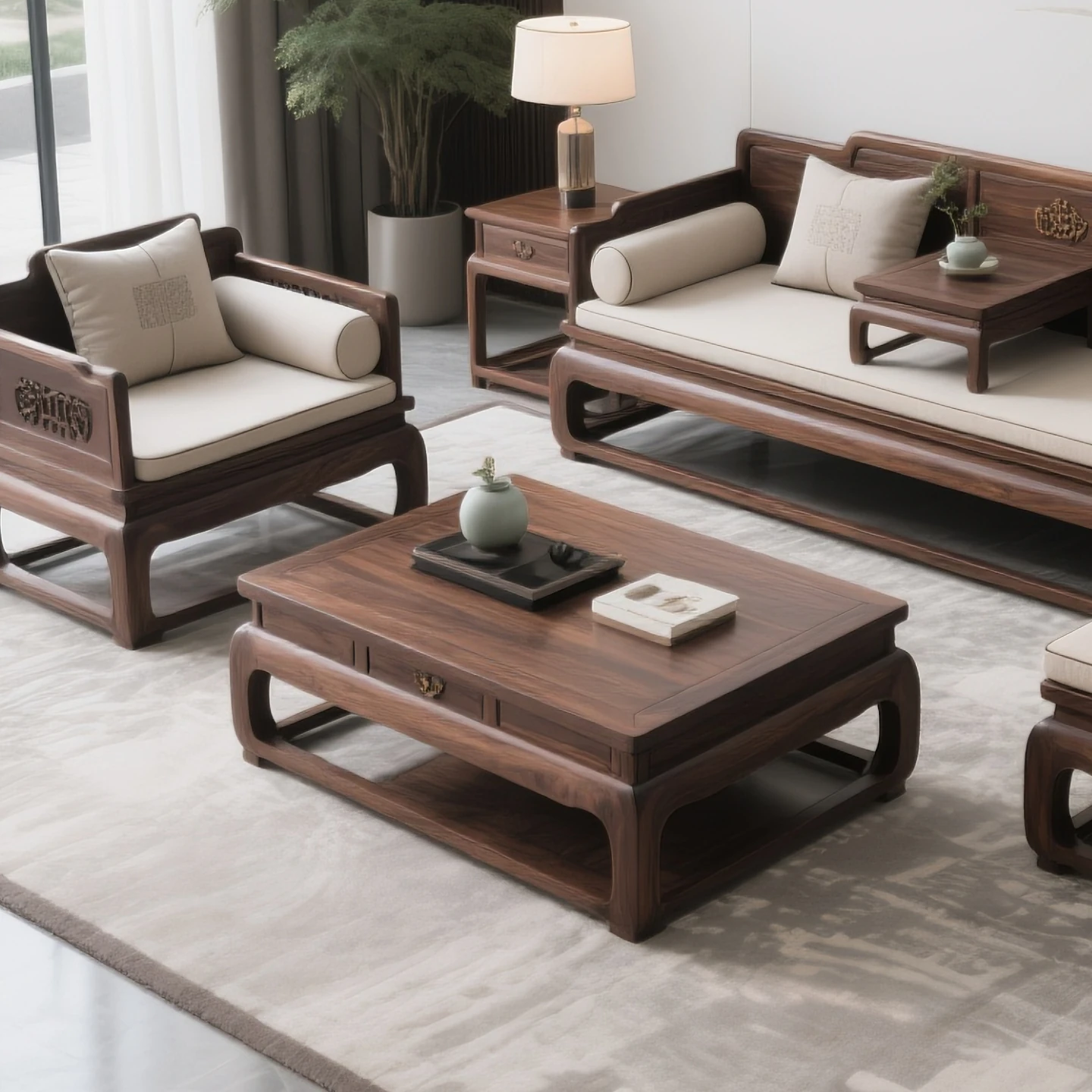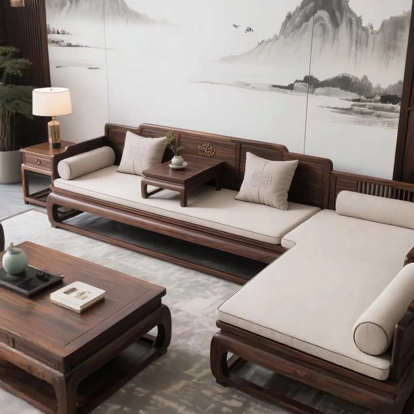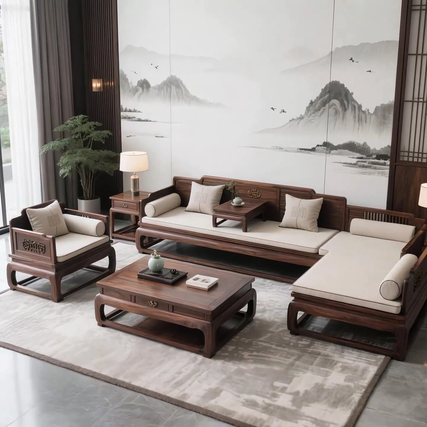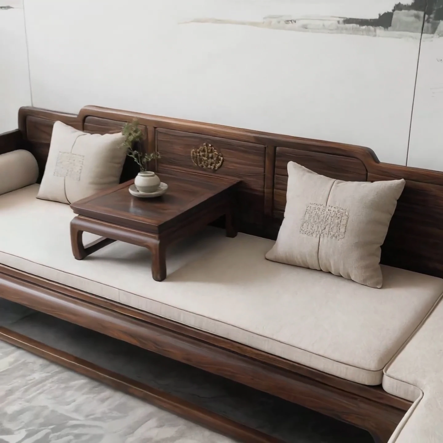 New Chinese Style North American Black Walnut Luohan Bed Solid Wood Sofa Coffee Table Set for Model Room Hotel and Club Furniture