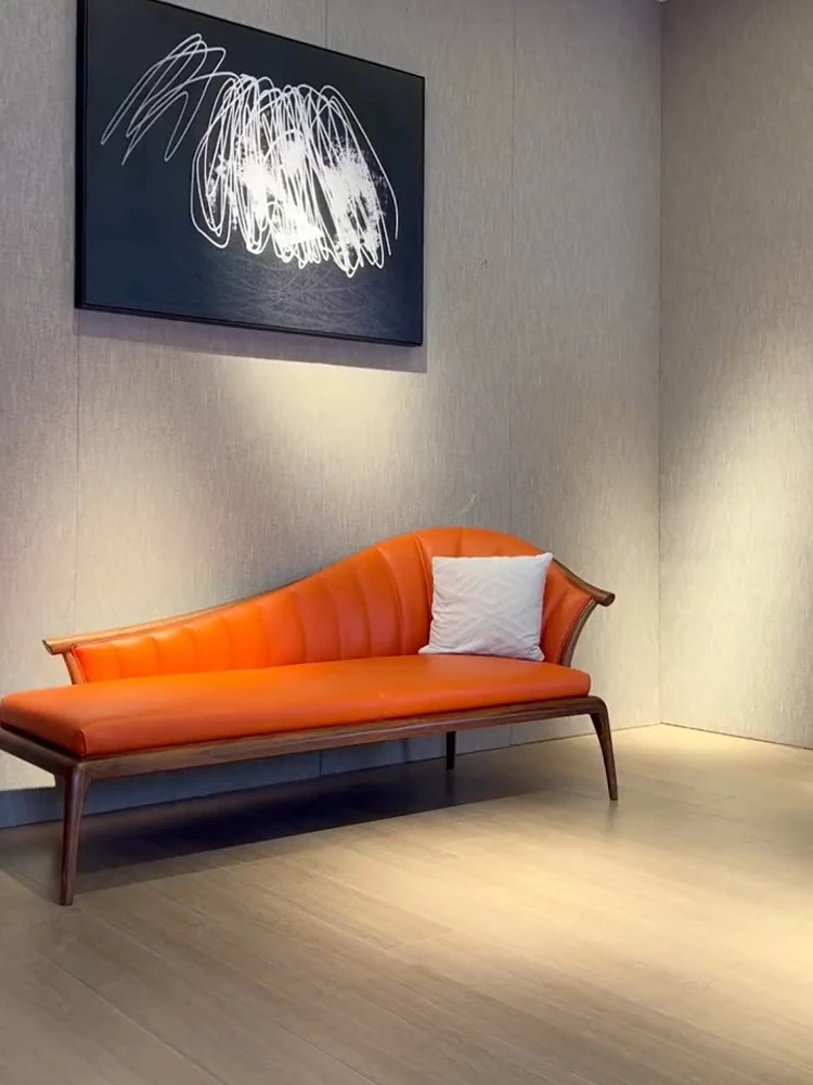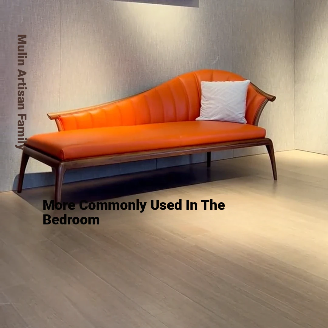New Chinese Style Solid Wood Chaise Lounge - Modern Minimalist Single Sofa Bed in Ebony, Perfect for Living Room and Bedroom