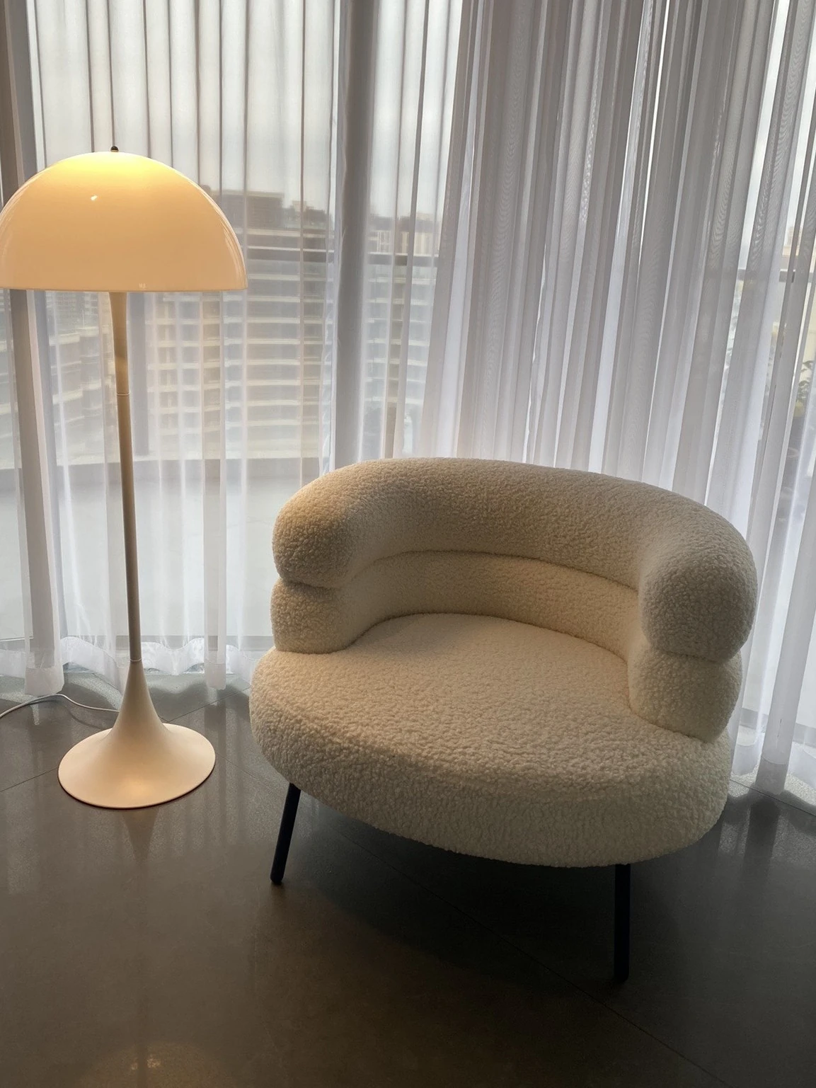 Nordic Minimalist Single Sofa Chair - Luxurious Lamb Wool Lounge Chair for Living Room and Balcony, Perfect for Relaxation and Style