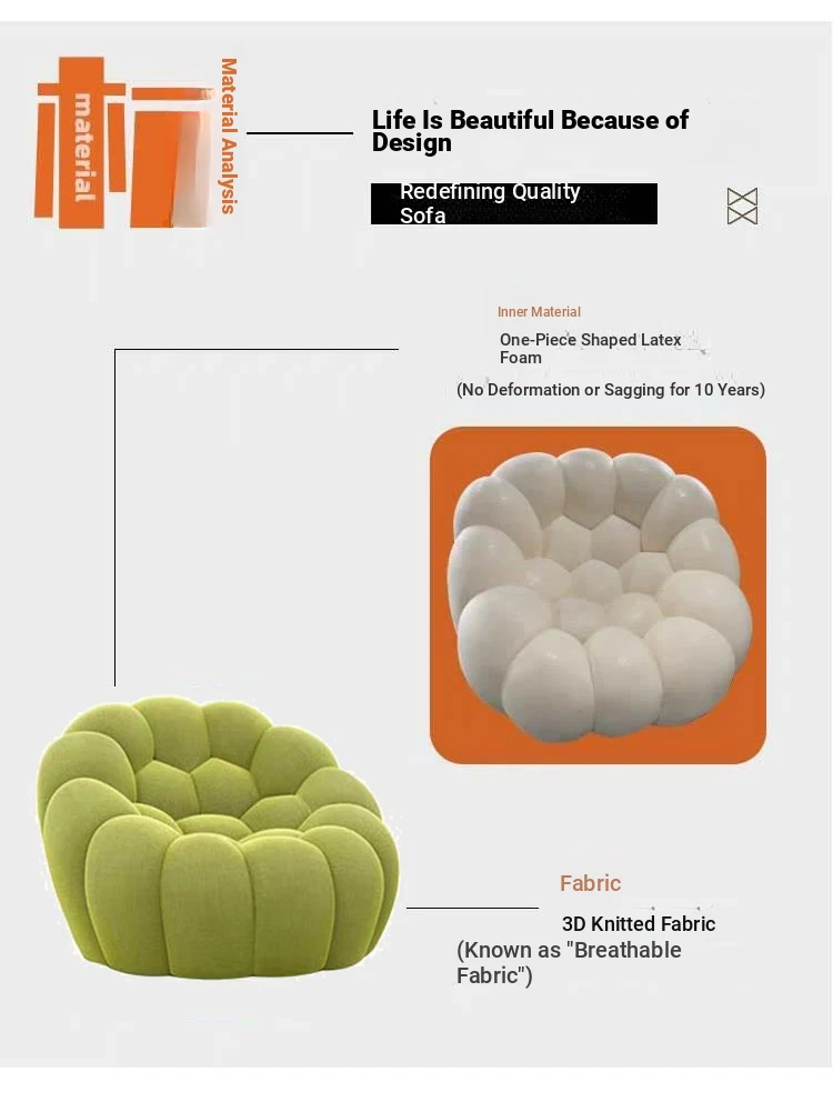 Nordic Single Sofa Chair - Lazy Sofa for Small Spaces, Creative Football Design for Relaxation in Living Room or Balcony, Perfect for Stylish Interiors