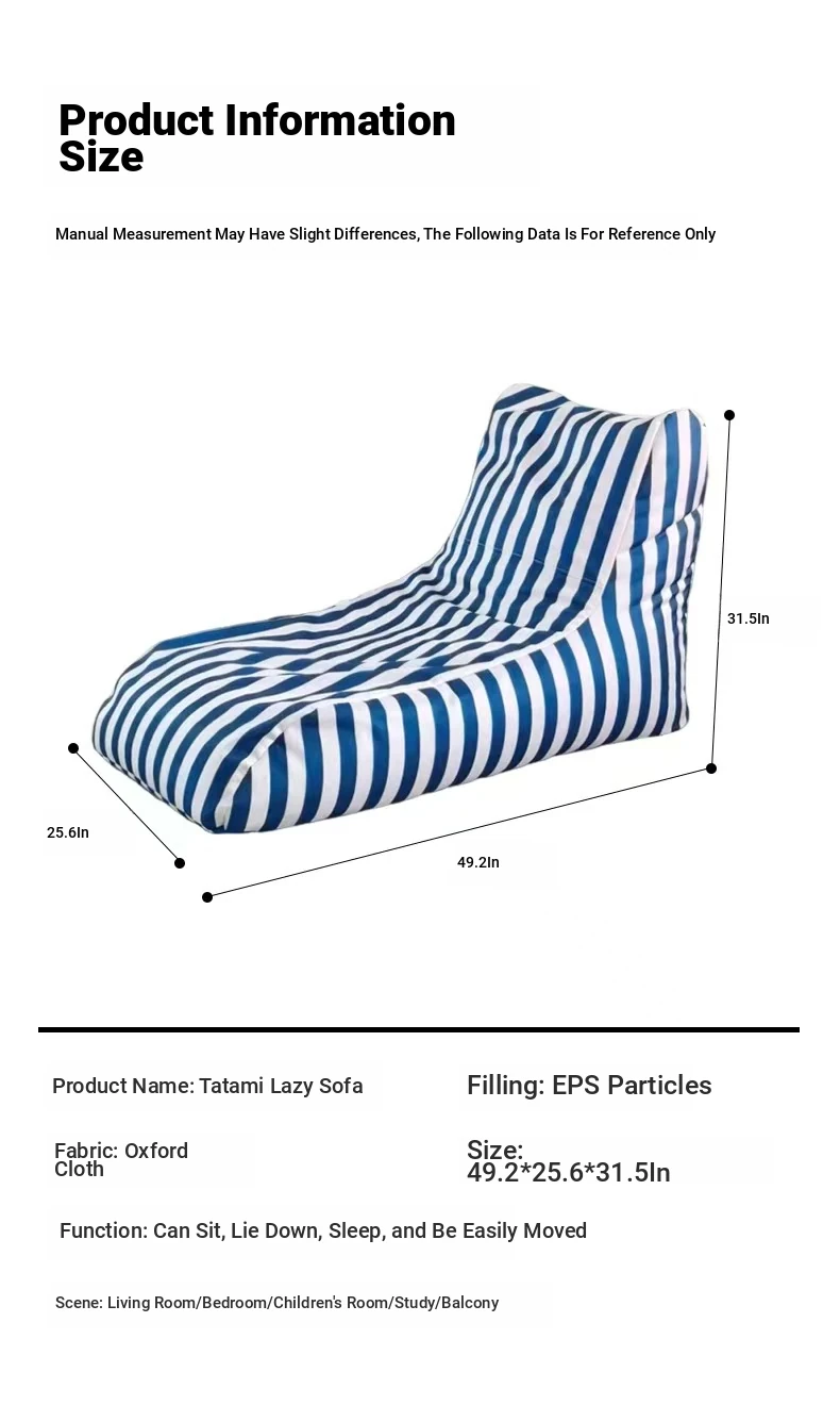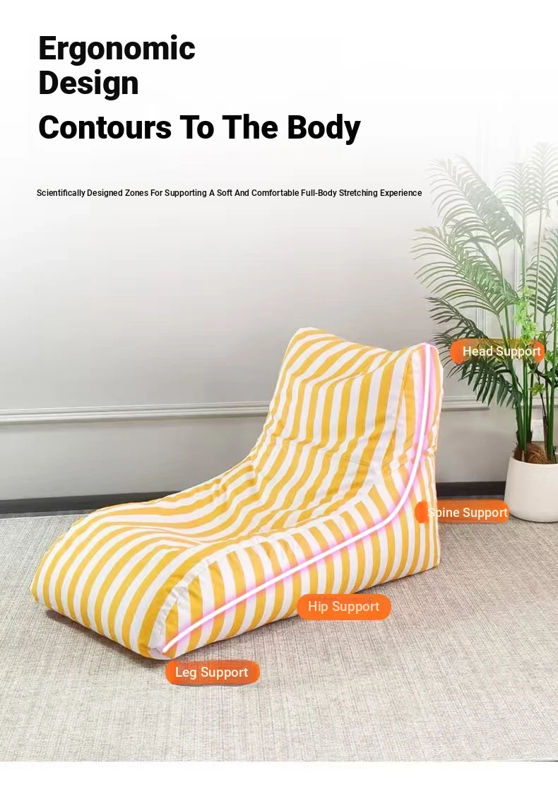 Outdoor Waterproof Lazy Sofa Lounge Chair – Striped Bean Bag for Patio, Beach, Camping & Relaxation with Backrest. Perfect for Your Outdoor Adventures!