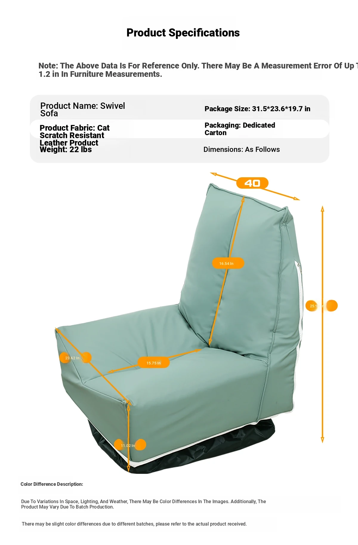 Rotatable Lazy Sofa Chair - Compact Tatami Single Seat, Perfect for Kids and Students, Ideal for Reading in the Study Room, Foldable with Backrest for Ultimate Comfort