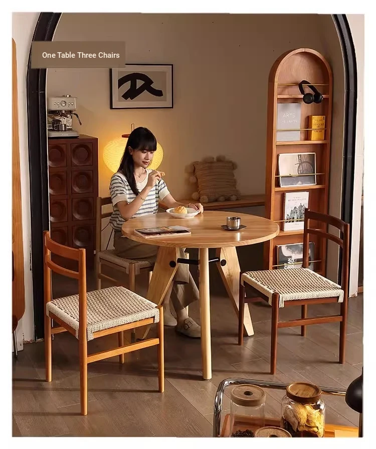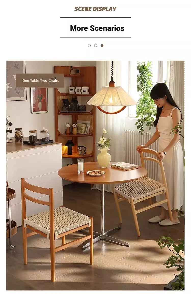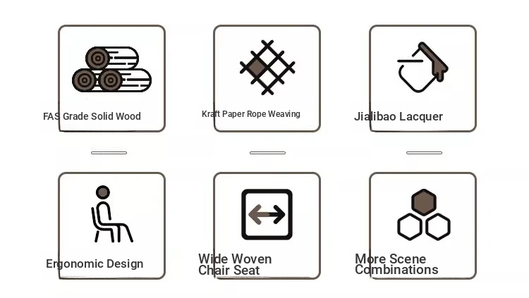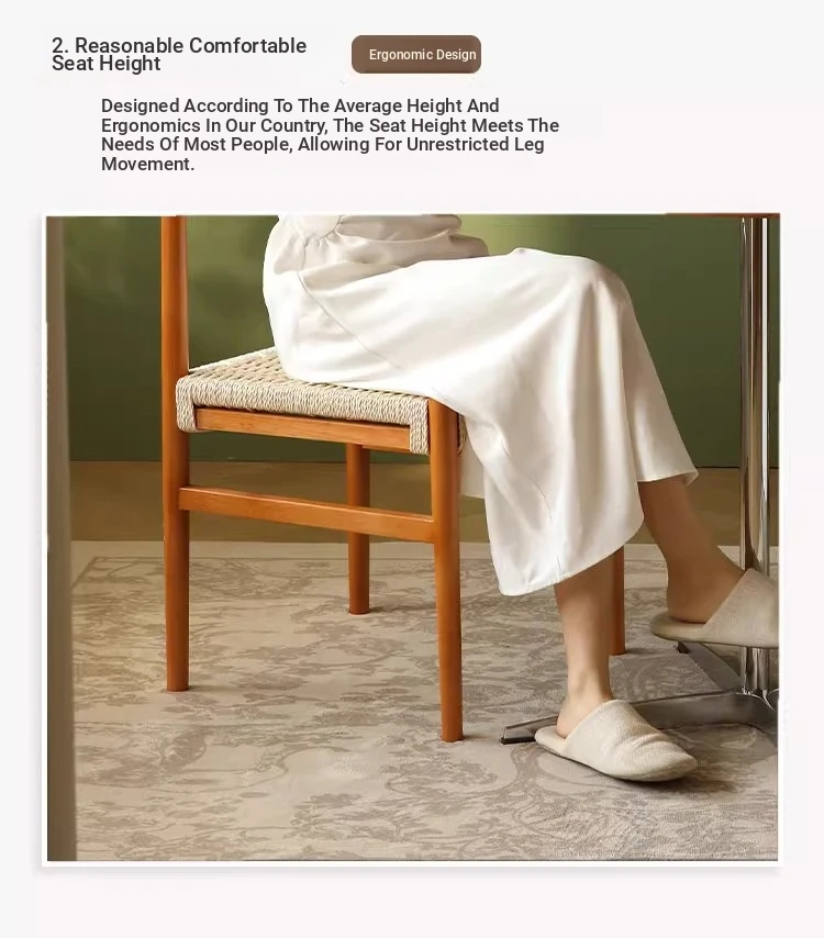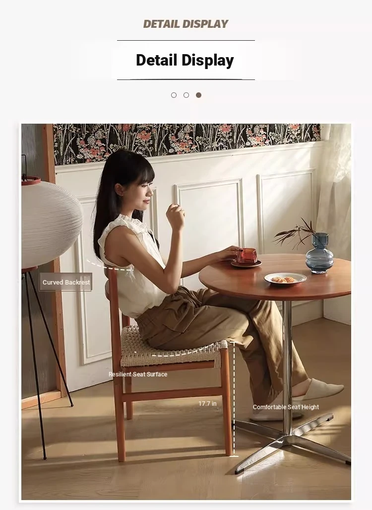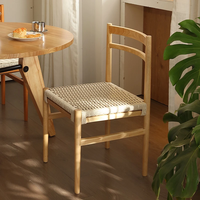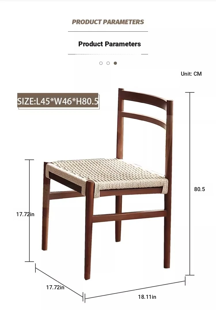 Rustic Solid Wood Rope-Woven Dining Table Chairs - Stylish Backrest Chairs for Home Use, Ideal for Living Room and Tea Time, Featuring Wabi-Sabi Design in Walnut Finish