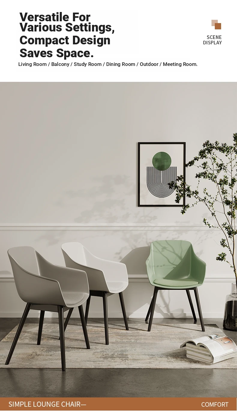 Stylish Designer Dining Chair with Comfortable Backrest - Durable Plastic Stool for Home Use, Perfect for Long Sitting, Elevate Your Living Room with a Touch of Luxury and Relaxation.