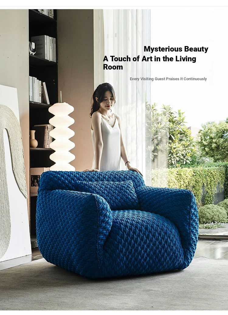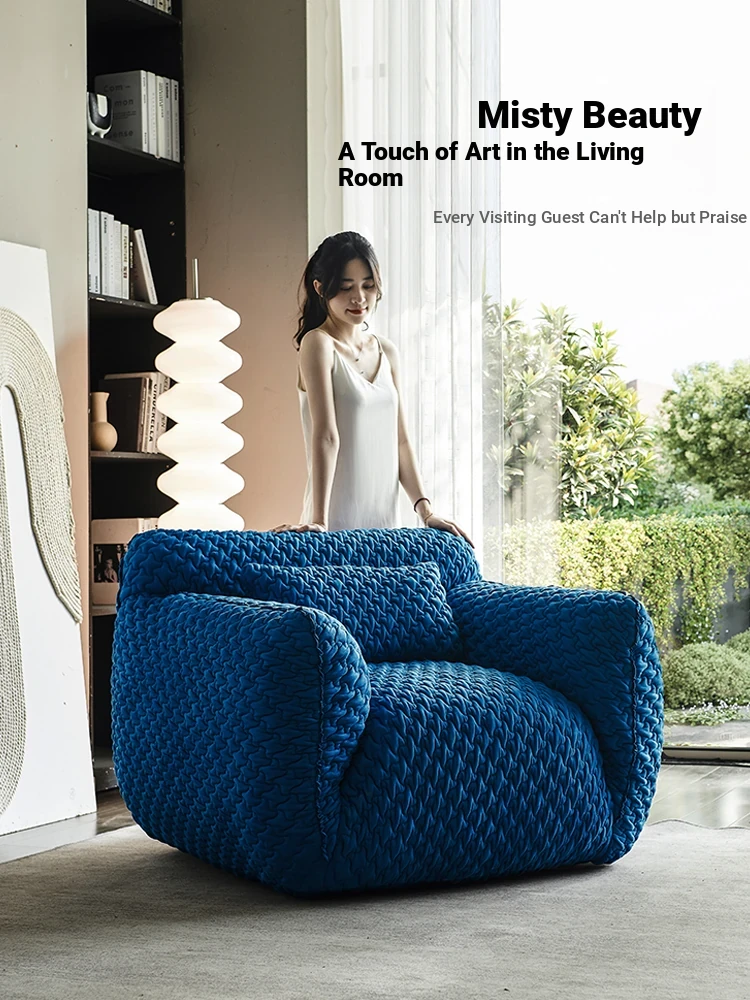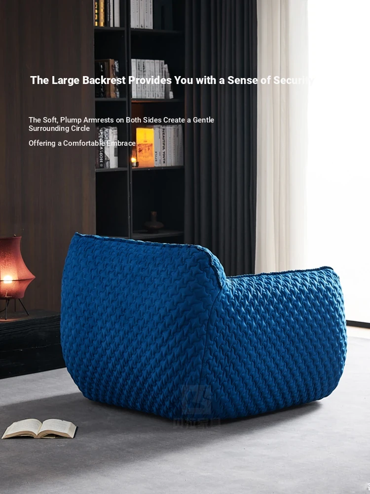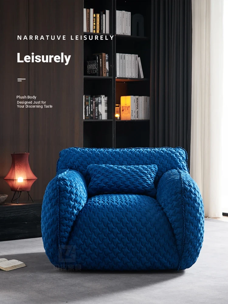 Trendy Yellow Plush Single Sofa Chair – Italian Minimalist Design, High-End Creative Lazy Chair for Stylish Living Rooms