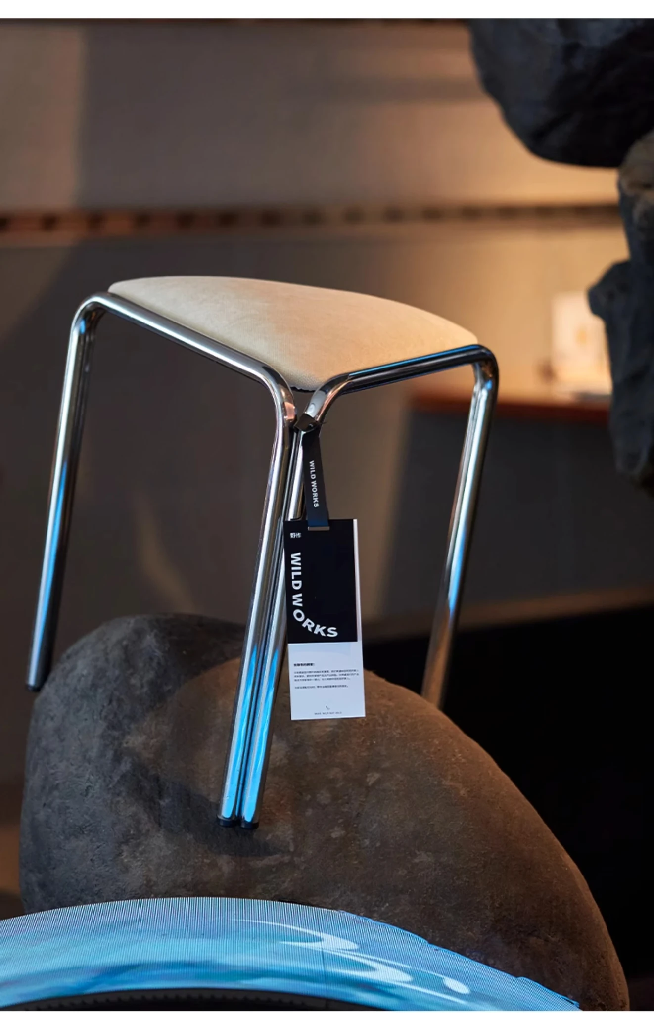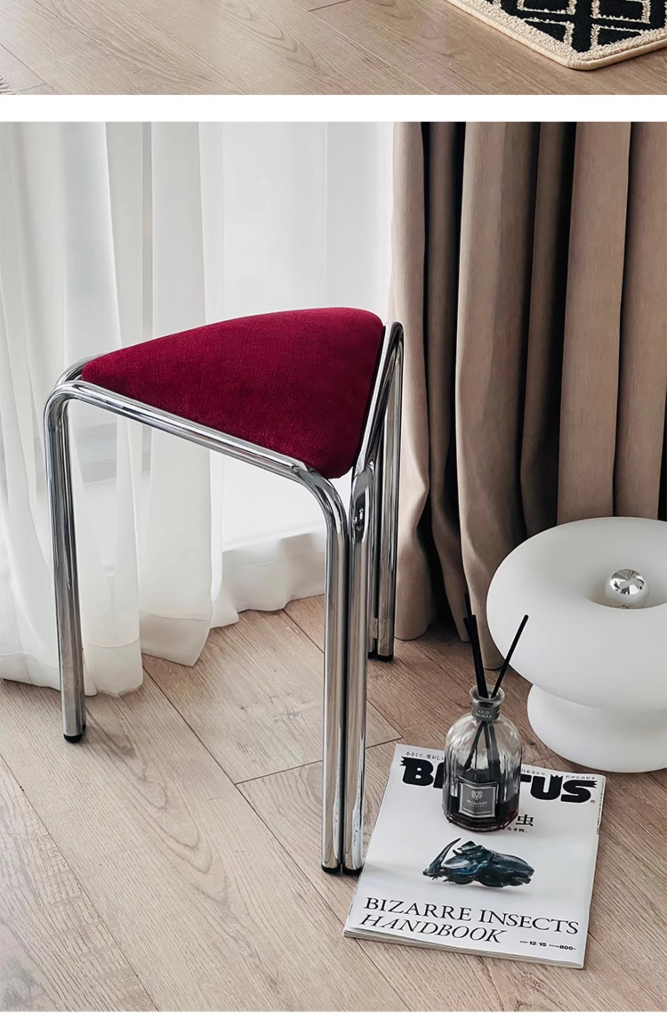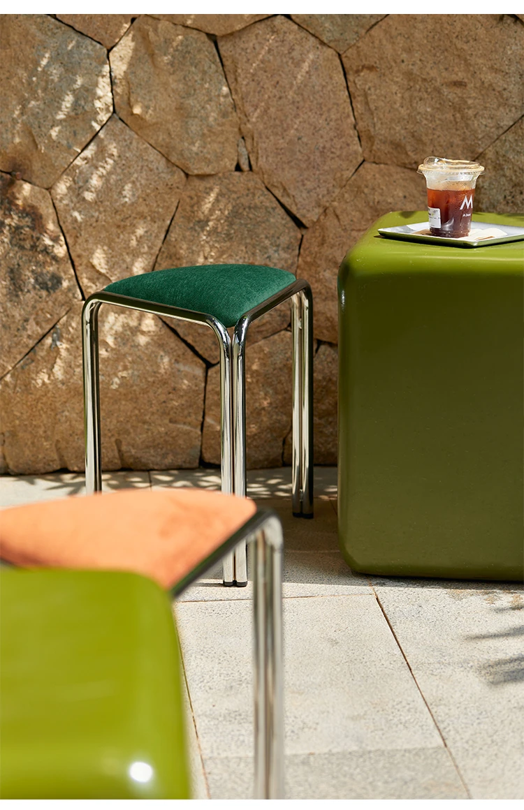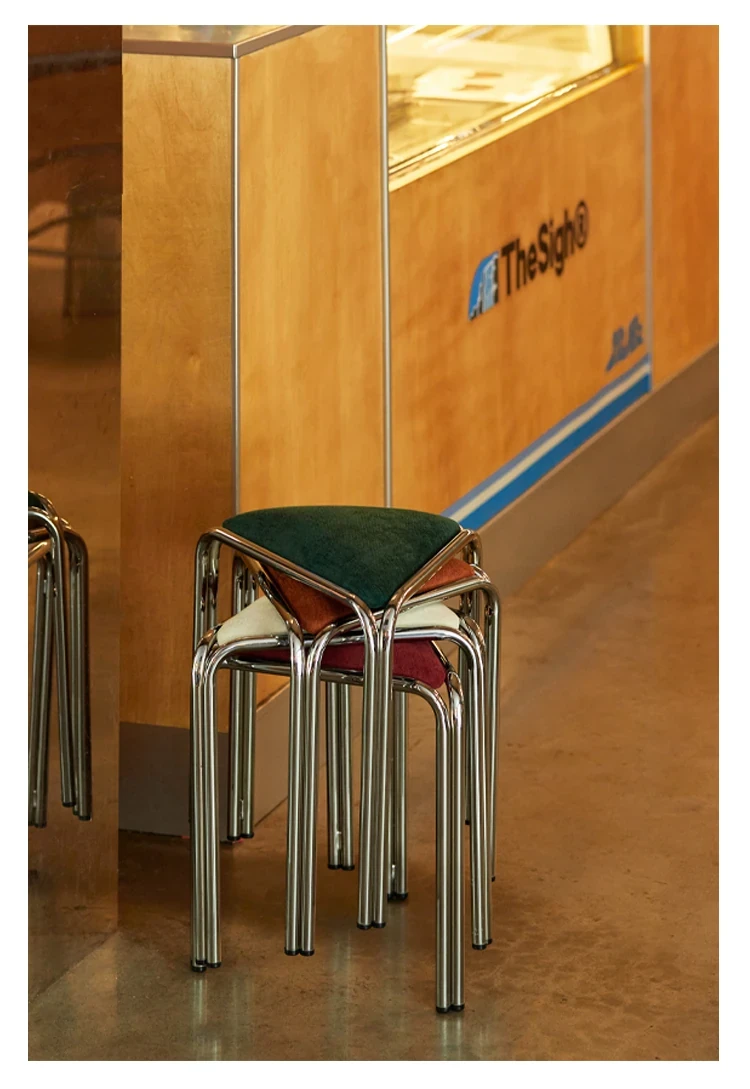 Vintage Japanese Industrial-Style Stacking Dining Stool - Bauhaus Fabric Designer Chair for Makeup and Home Use