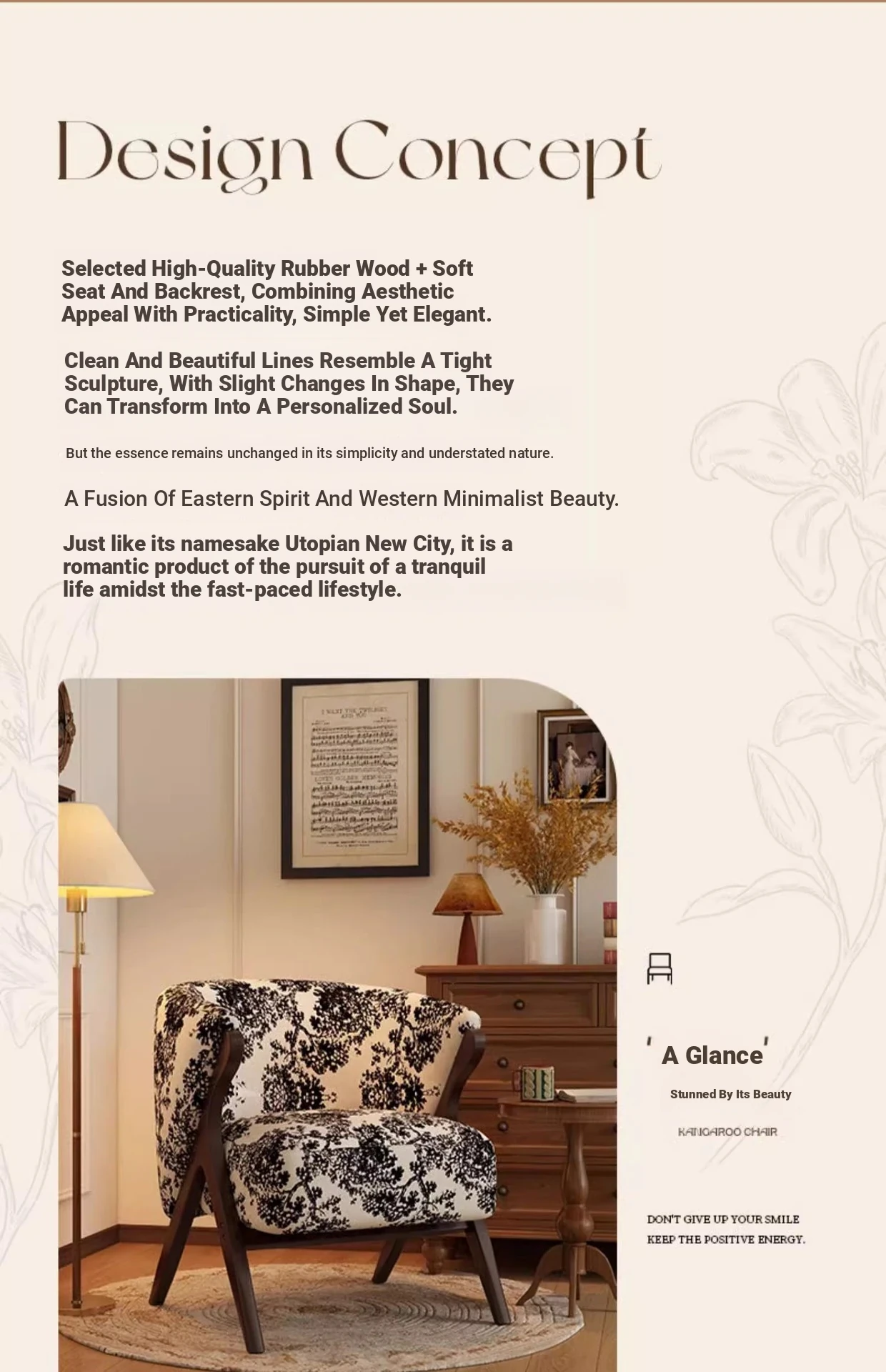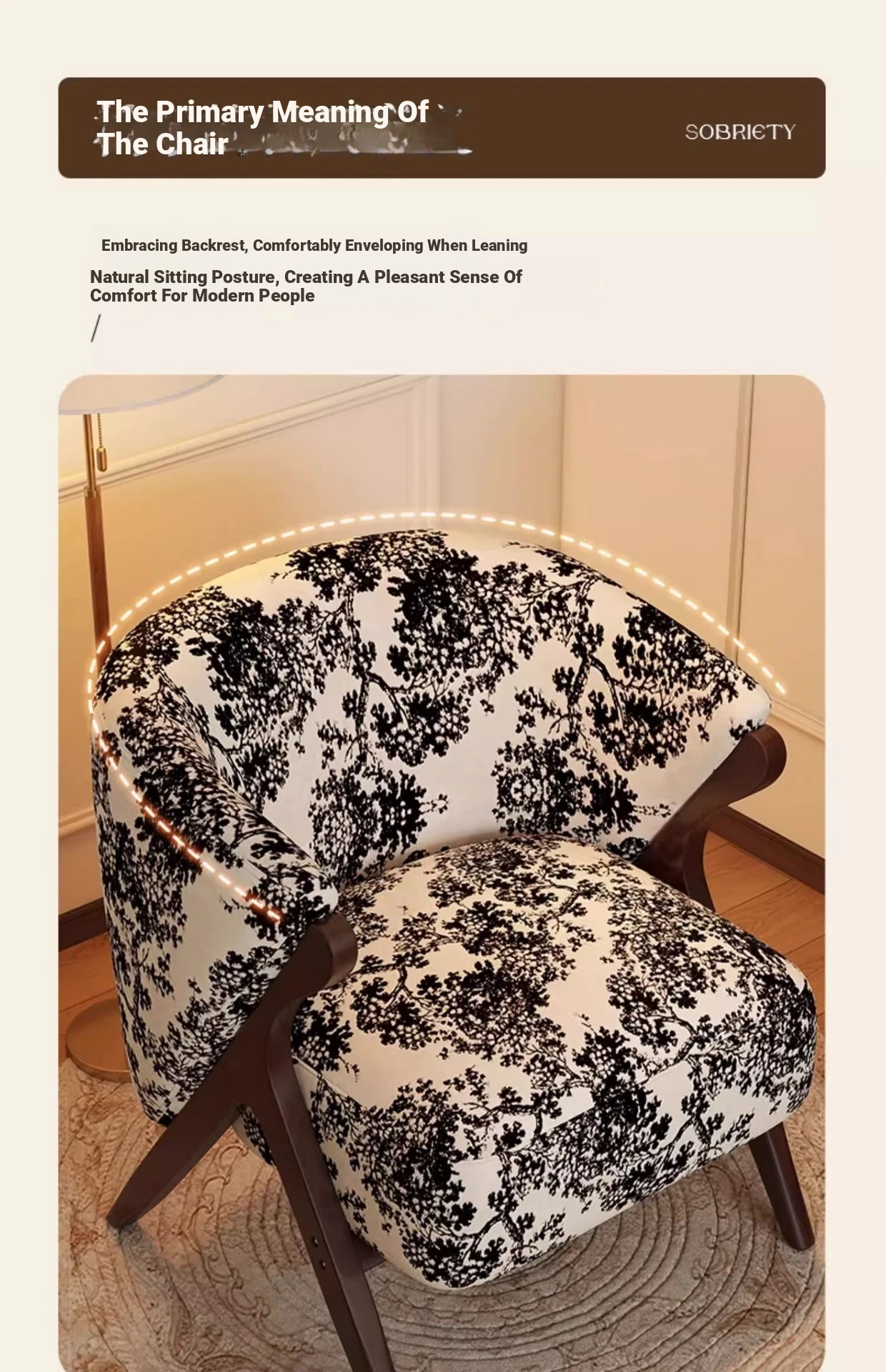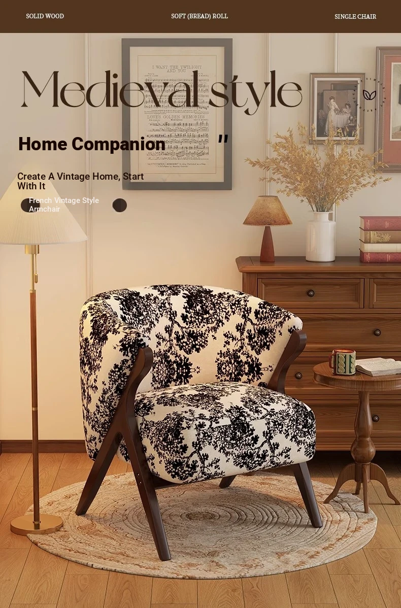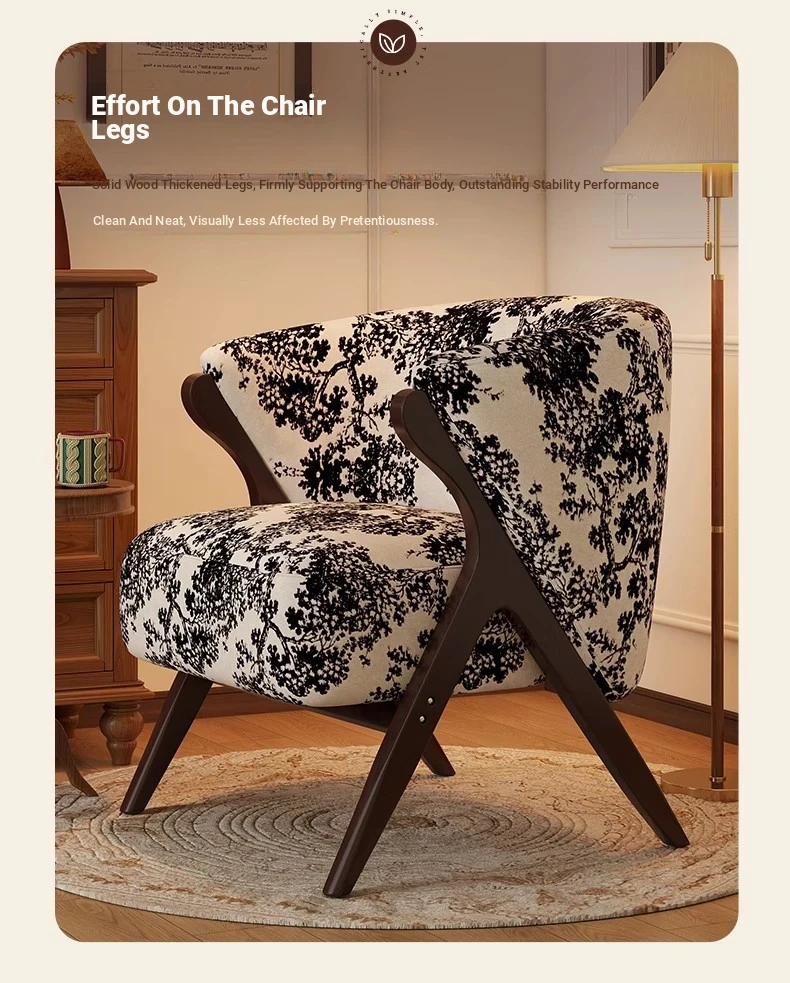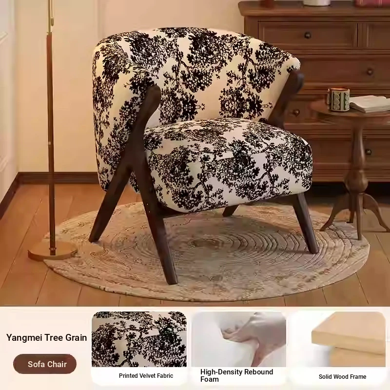 Vintage-Style Tree Shadow Armchair - Retro Home Sofa for Small Spaces, Elegant Solid Wood Designer Chair for Living Room