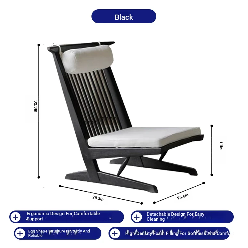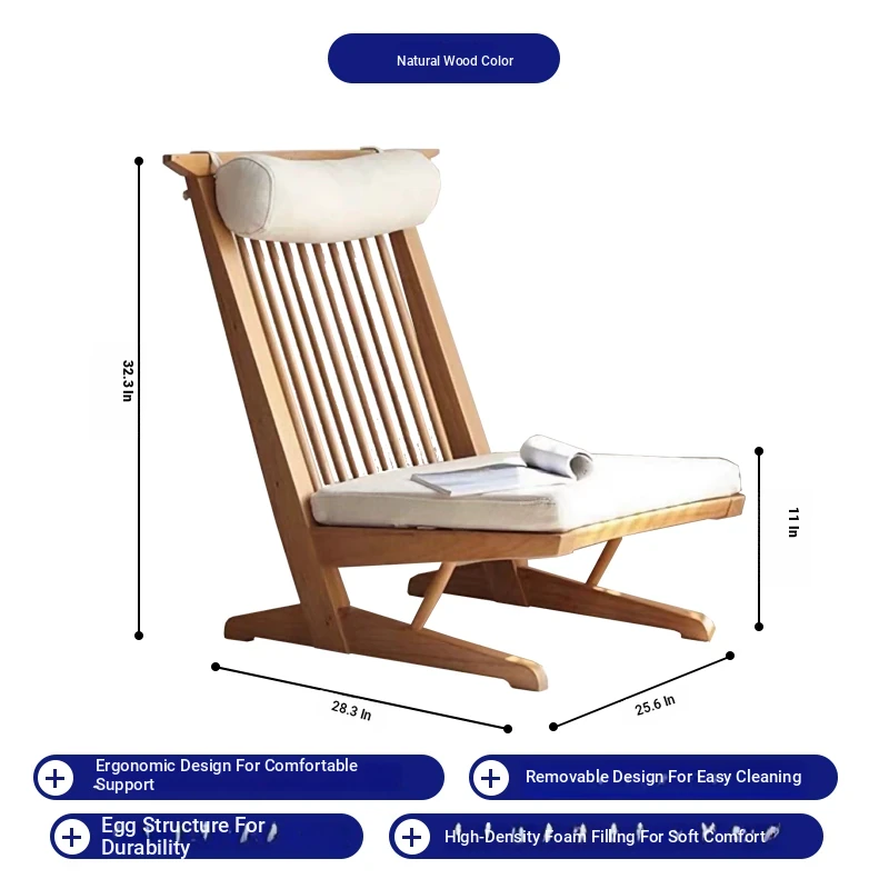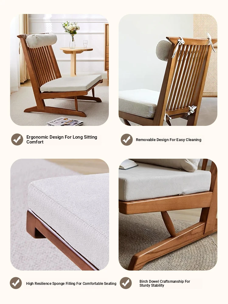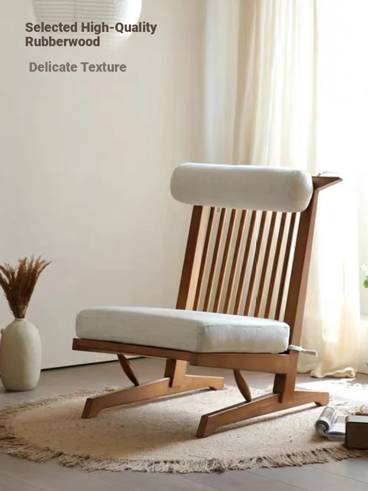 Yumi Home Japanese Style Solid Wood Lazy Sofa - George High-Back Lounge Chair for Balcony & Guesthouse Relaxation
