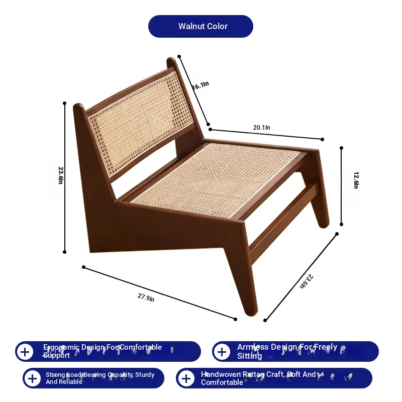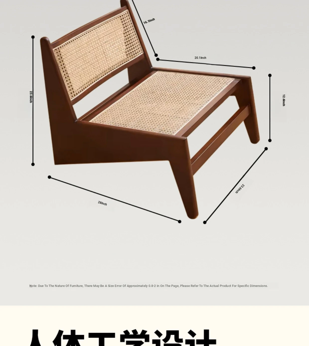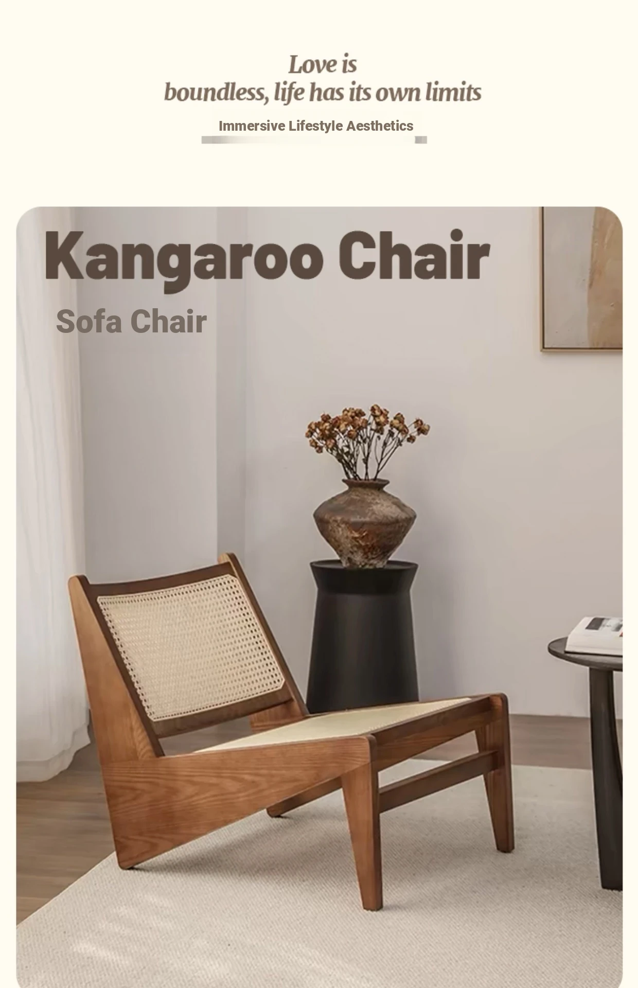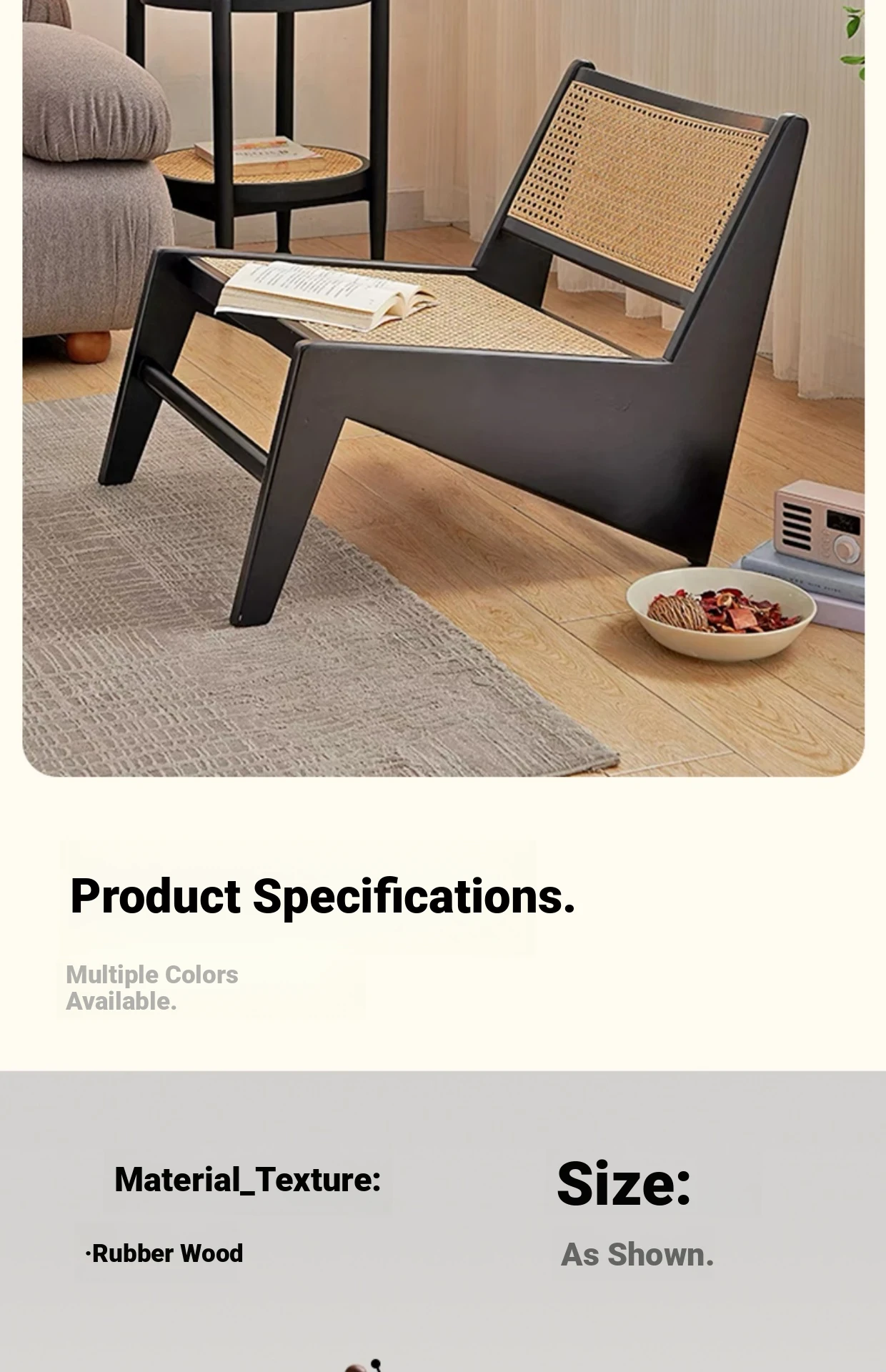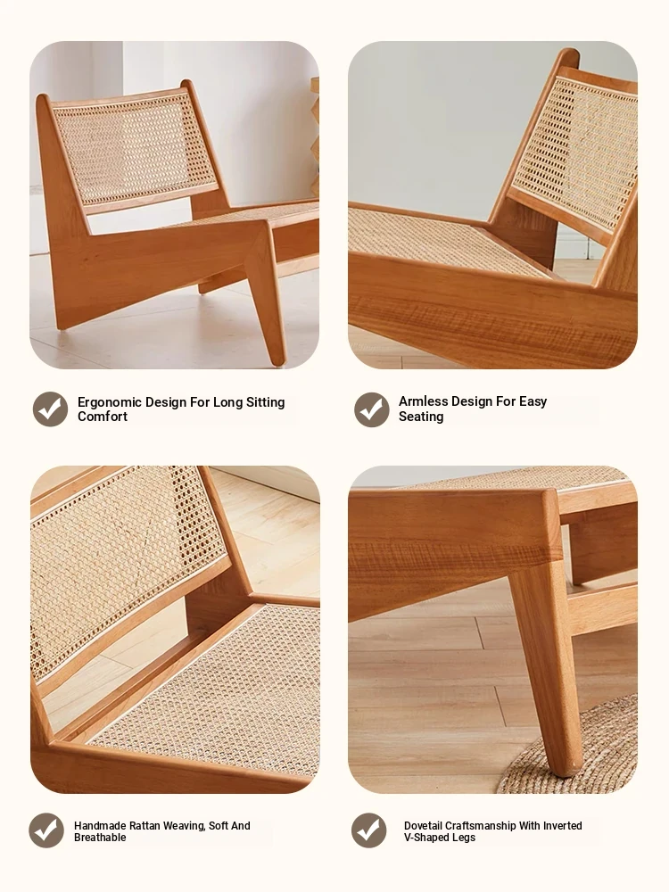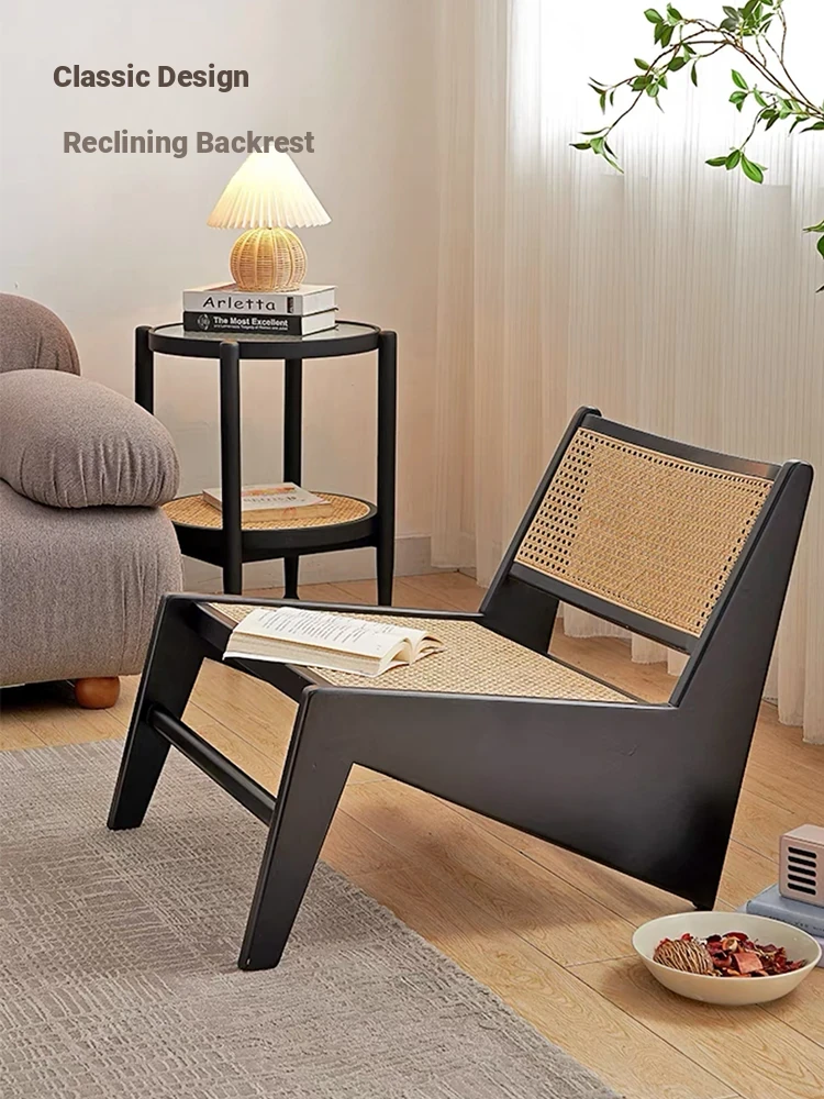 YuMi Home Solid Wood Rattan Lounge Chair - Vintage Chic Single Designer Recliner, Chandigarh Kangaroo Chair - Perfect for Relaxation and Style