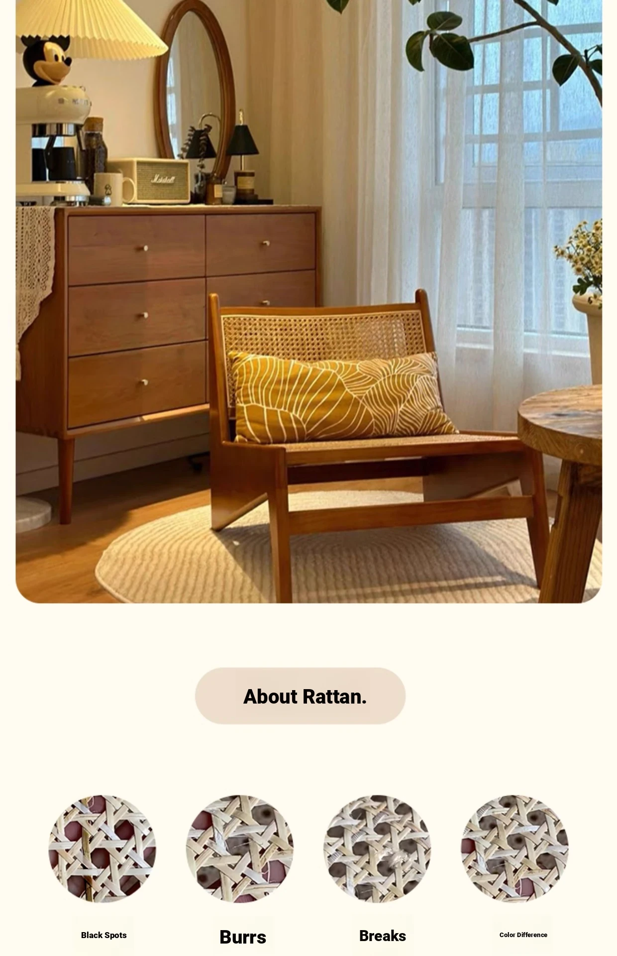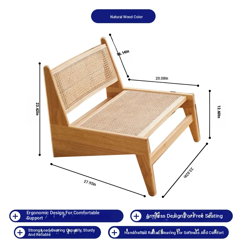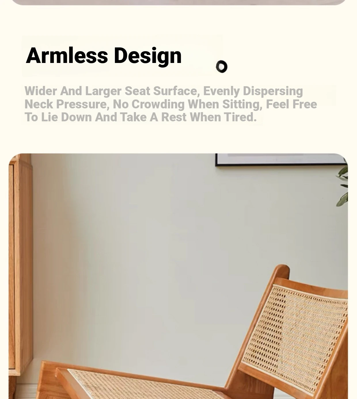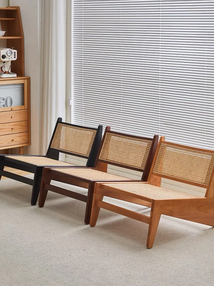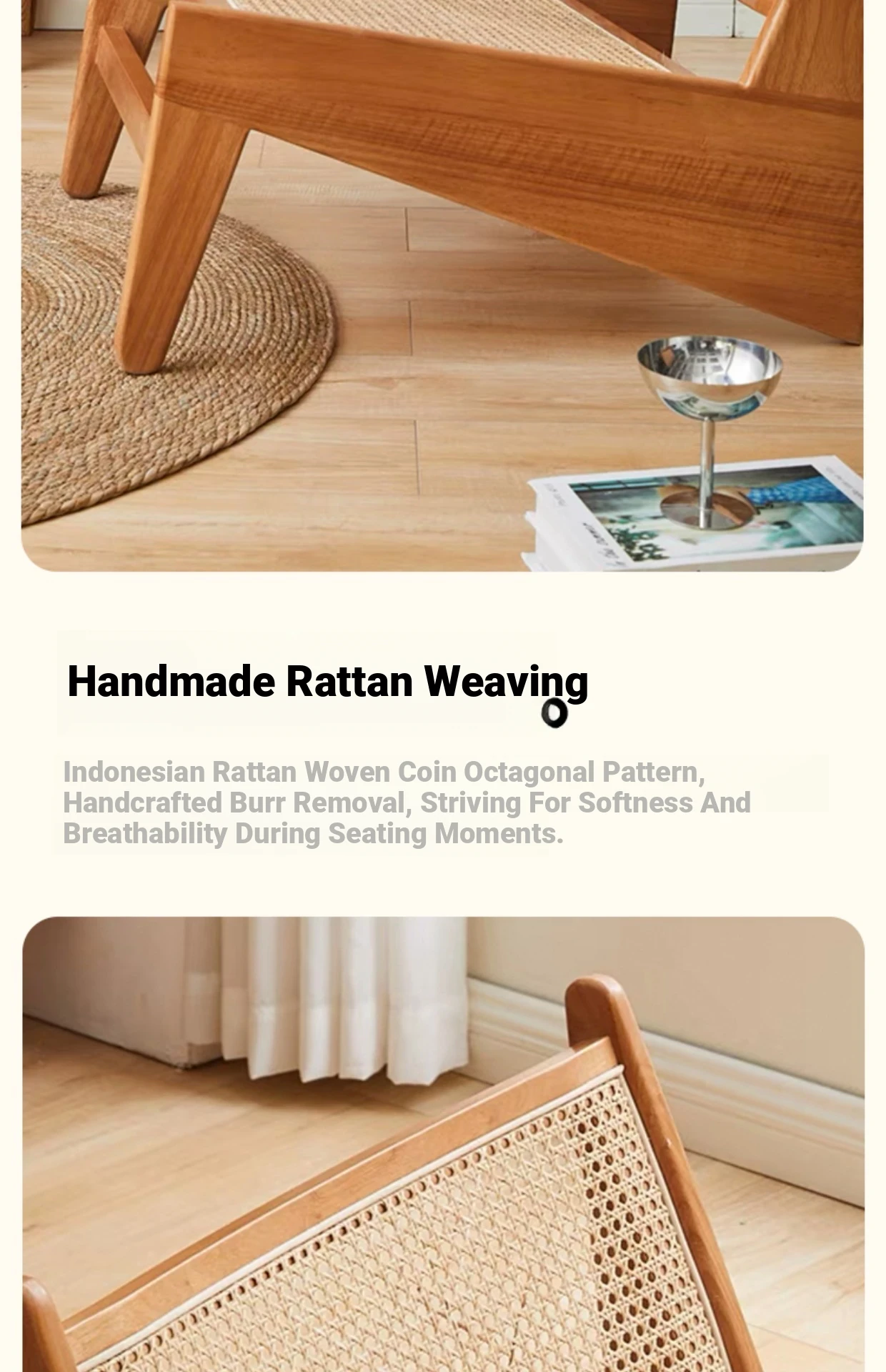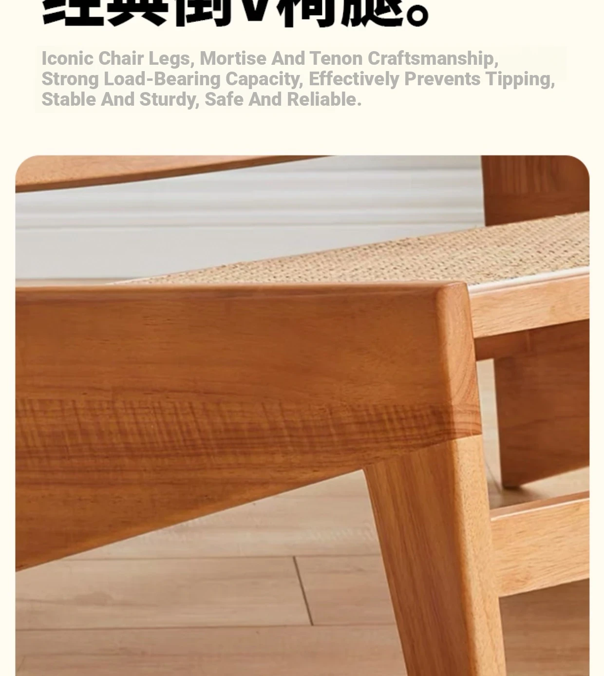 YuMi Home Solid Wood Rattan Lounge Chair - Vintage Chic Single Designer Recliner, Chandigarh Kangaroo Chair - Perfect for Relaxation and Style