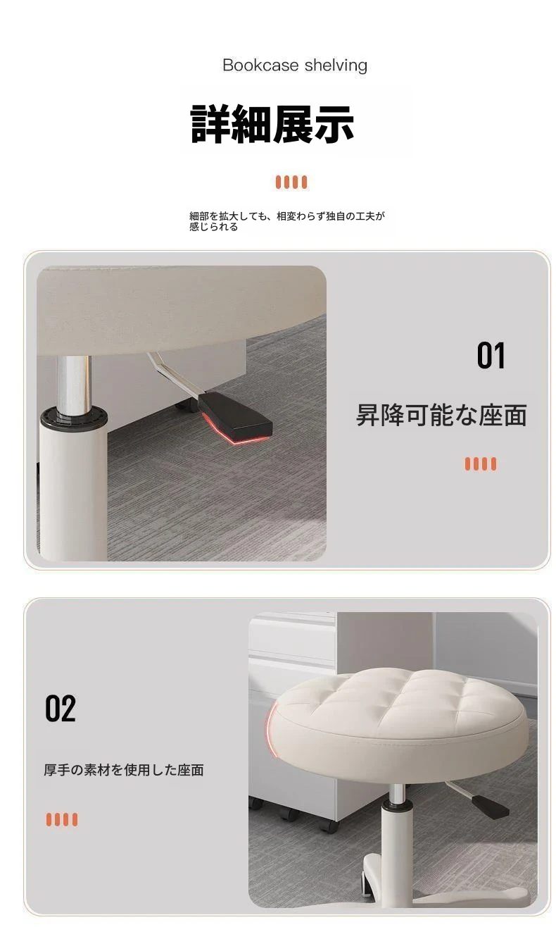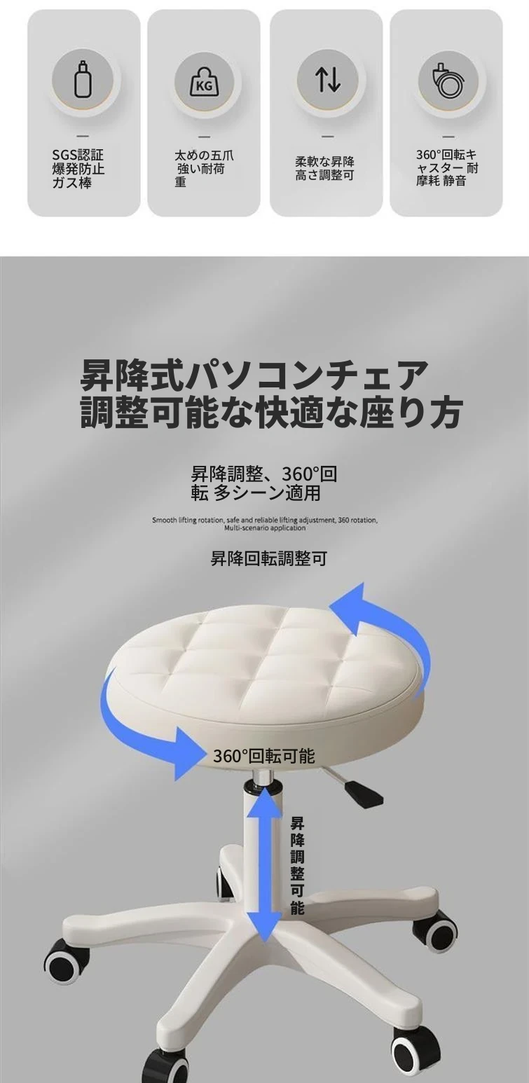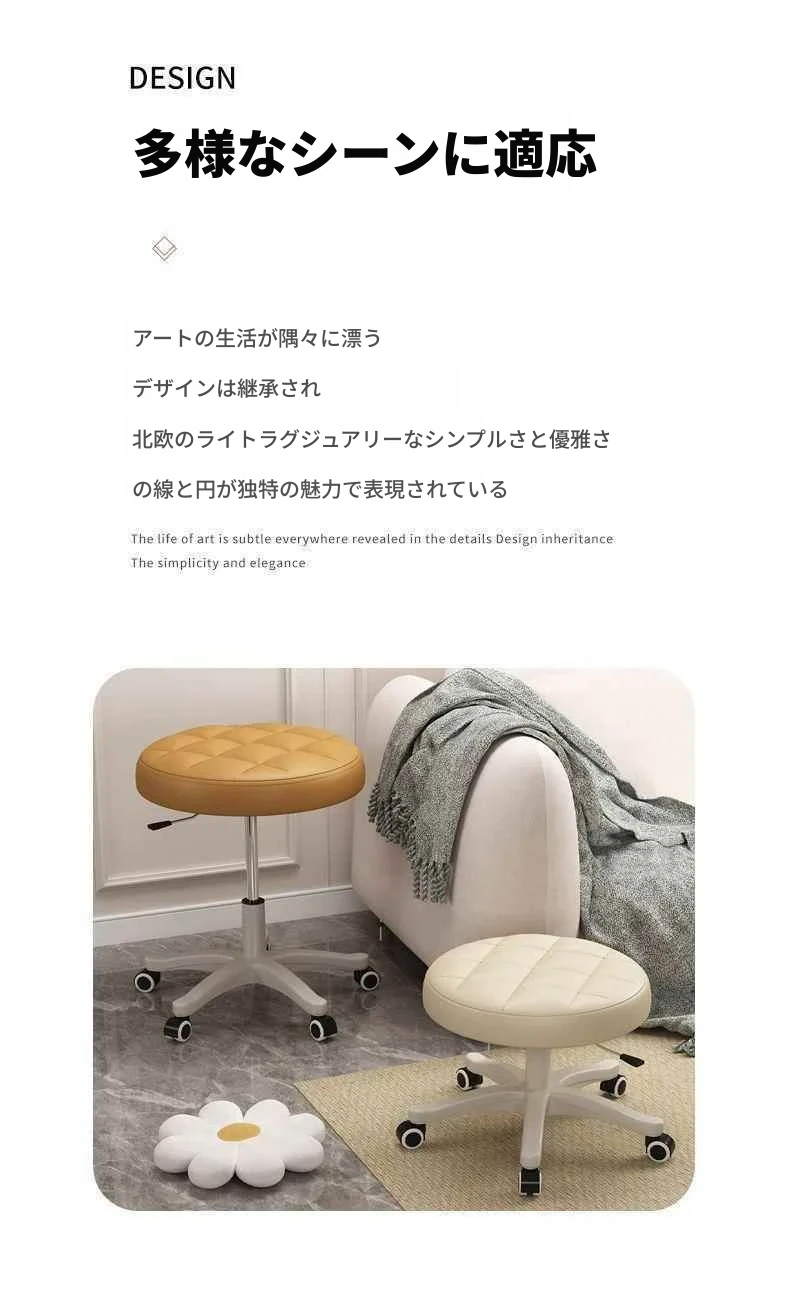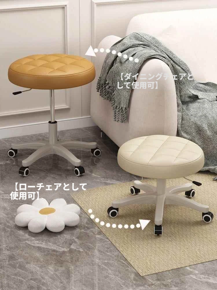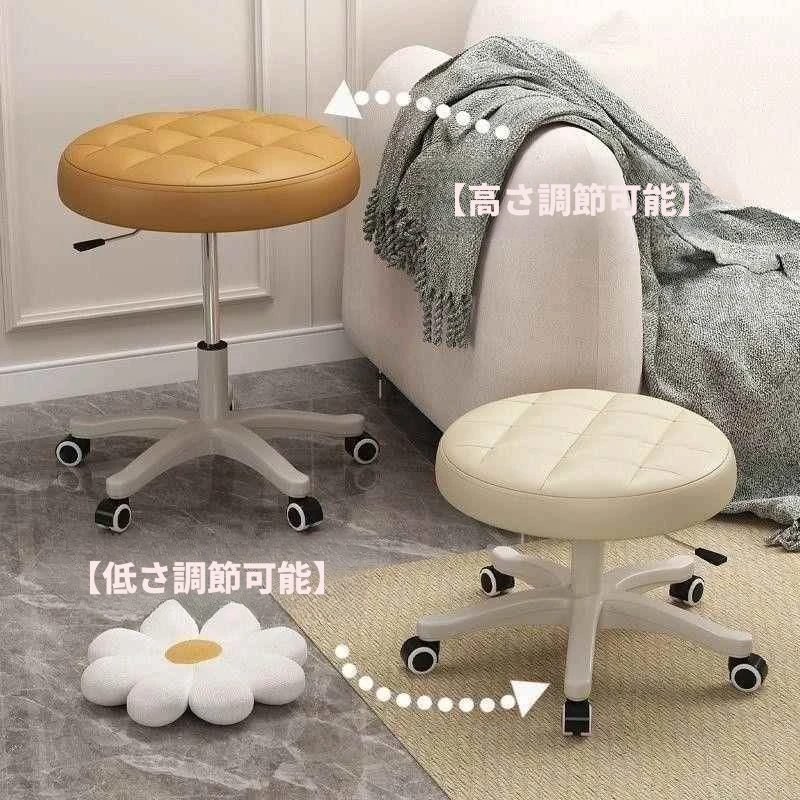 家庭用昇降式ソフトパック小椅子、リビングにぴったりなロー椅子、キャスター付きで移動も楽々!子供のお世話や靴の着脱に最適な丸いスツール。快適さと便利さを兼ね備えた必需品!