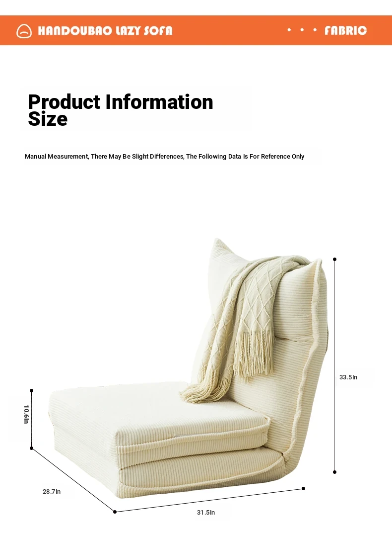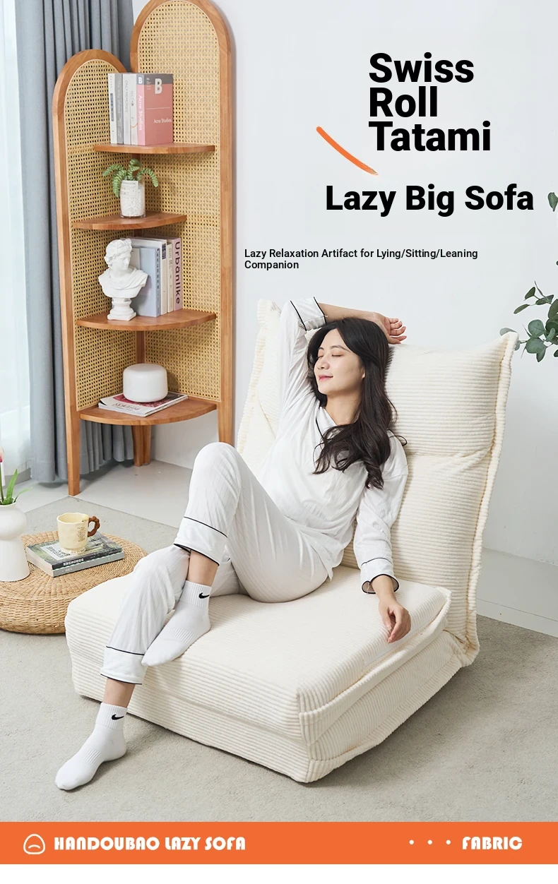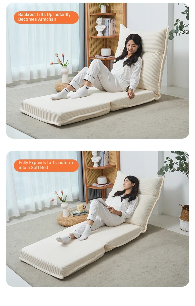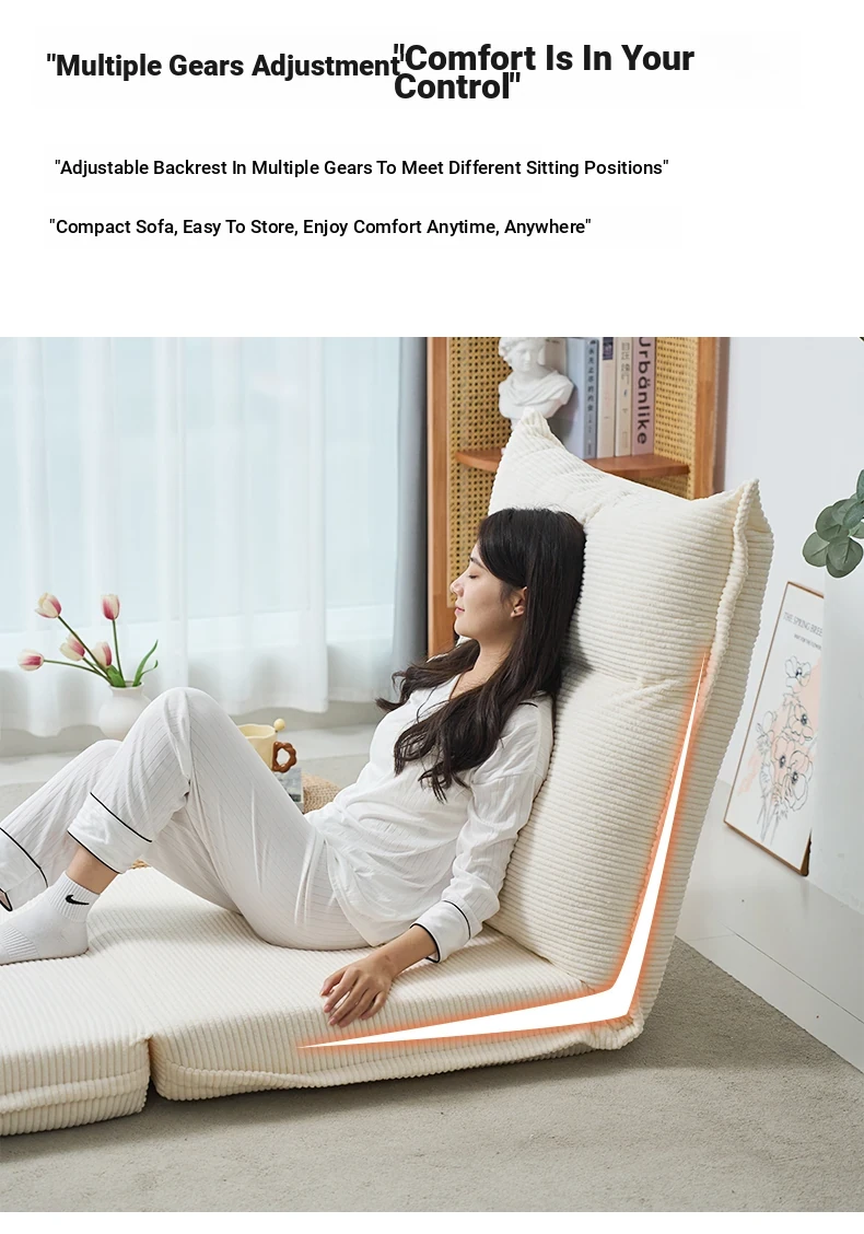 Cozy Convertible Sofa Bed for Lazy Days - Creamy Single Foldable Couch for Bedroom, Tatami, Balcony, and Living Room - Perfect for Relaxation and Space-Saving Comfort!