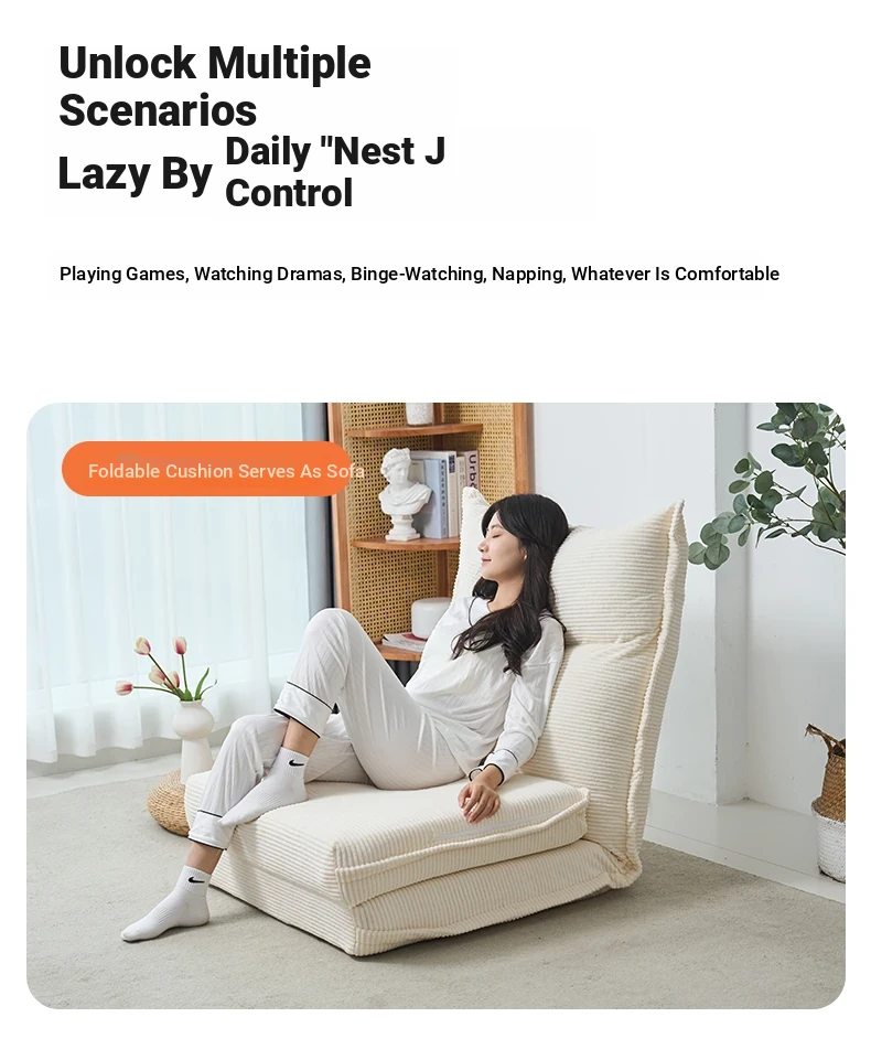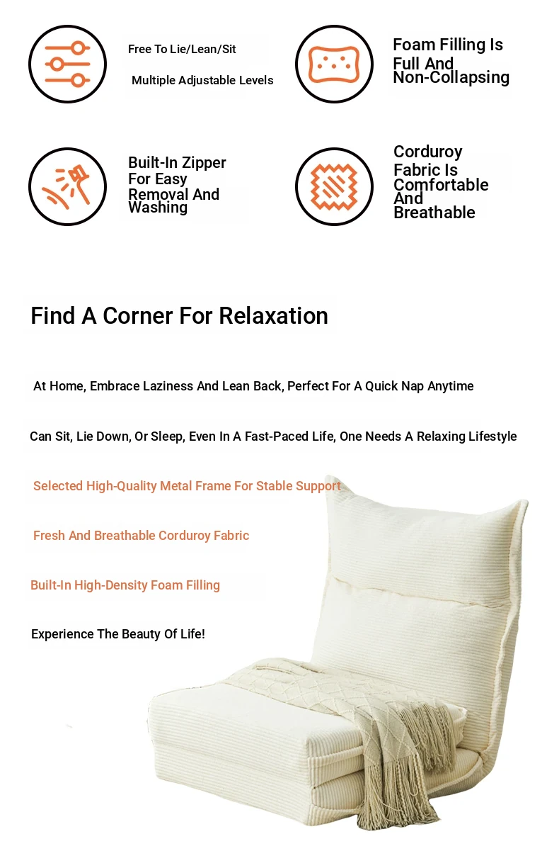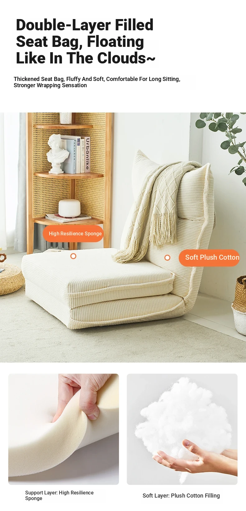 Cozy Convertible Sofa Bed for Lazy Days - Creamy Single Foldable Couch for Bedroom, Tatami, Balcony, and Living Room - Perfect for Relaxation and Space-Saving Comfort!
