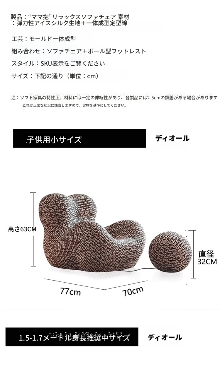 ママの抱っこソファチェア – おしゃれな布製、イタリアンデザインの個性的なリビングルーム用リラックス一人掛け椅子。心地よいくつろぎのひとときを提供します!