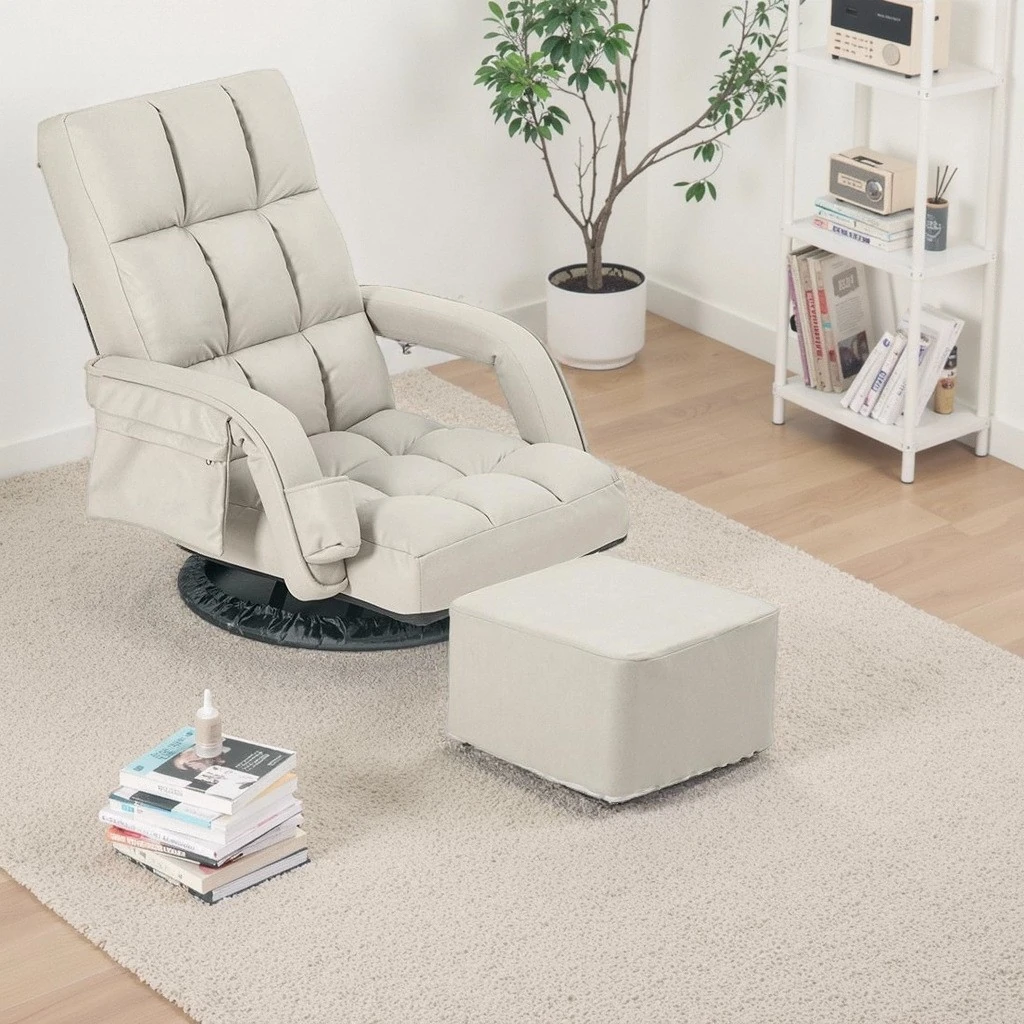 アームレスト付きテクノロジー布ベージュ+オットマン