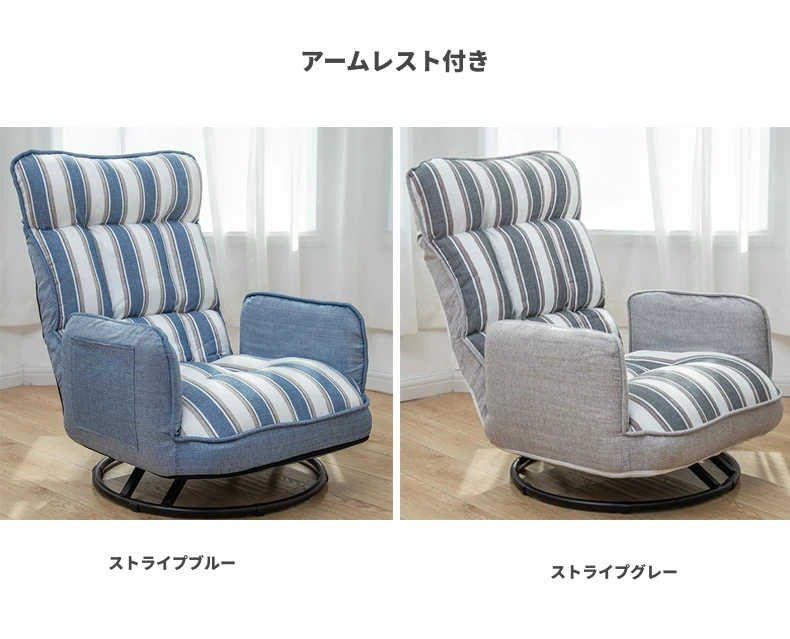 厚手回転木脚タイプ.ストライプ青+オットマン