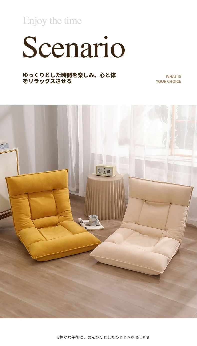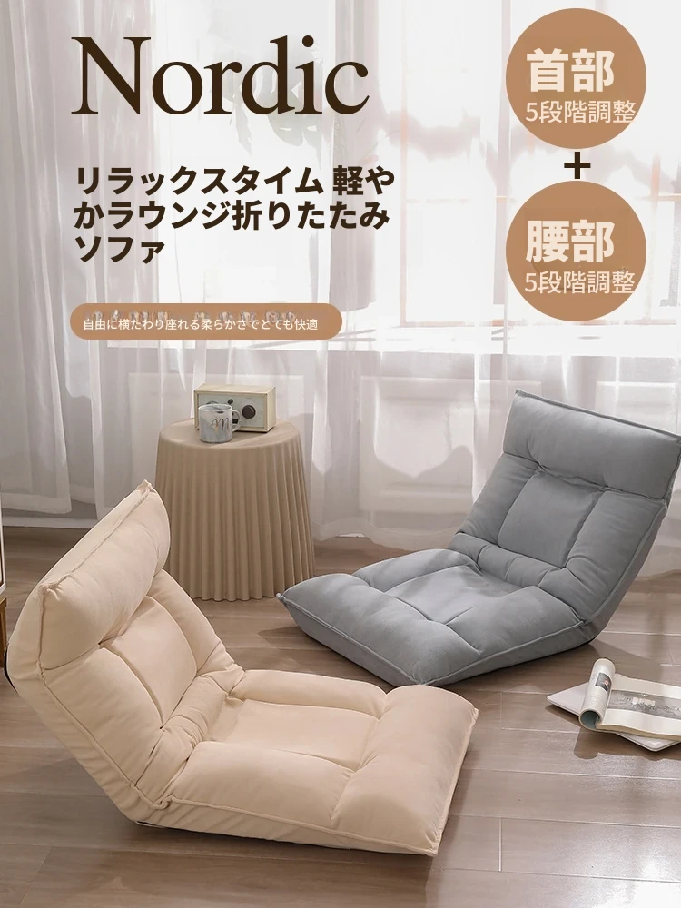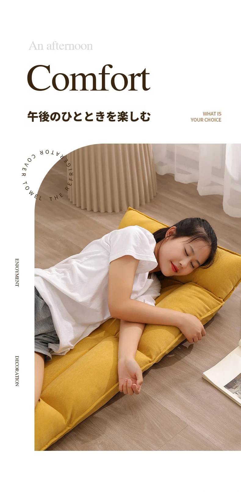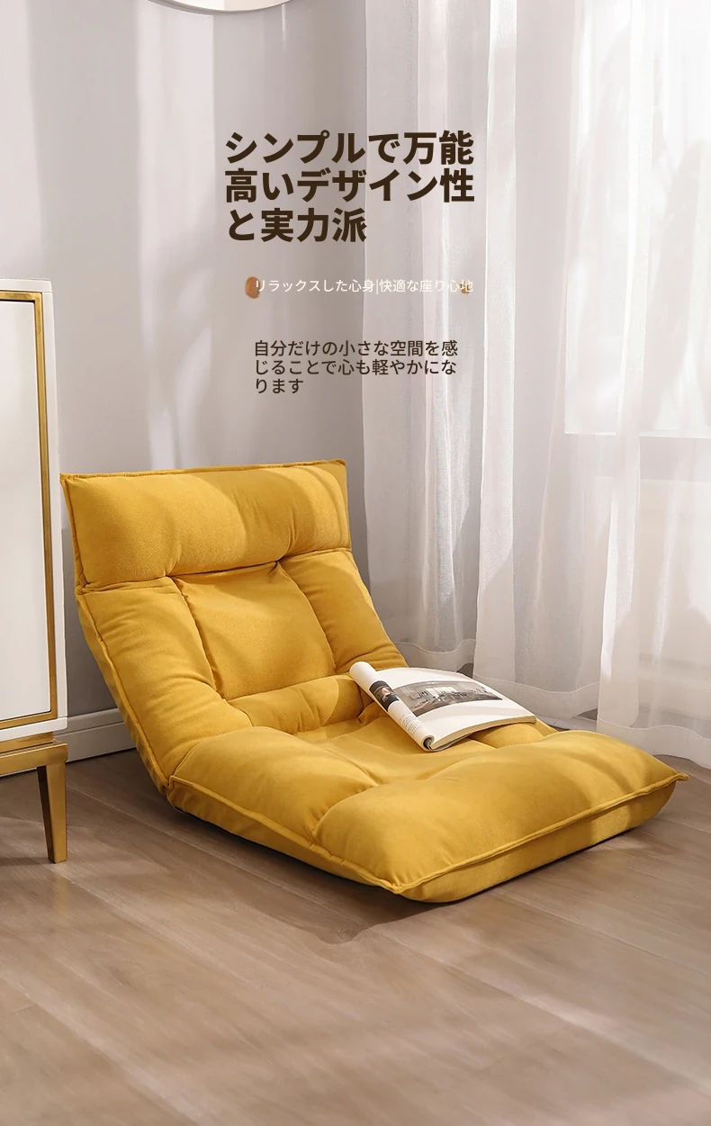 リラックスソファ!折りたたみ式の和風タタミソファ、脚なしデザインで大学生の寮にも最適。寝室やリビングで使えるクッション付きで、快適な背もたれ椅子としても大活躍!お家での癒し空間を演出します。