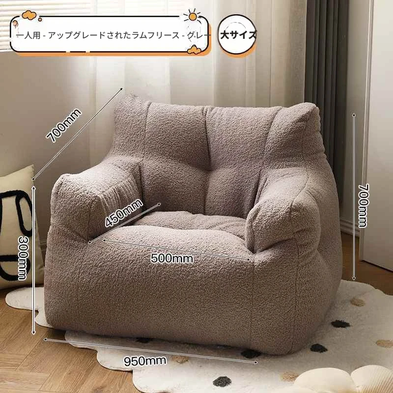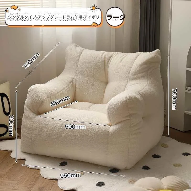 ミニマリスト向け!ふわふわのラムウールソファ - シングルサイズ、リビングや寝室にぴったり。畳や子供部屋、バルコニーにも最適なリラックスチェア!小さなスペースでも大活躍!